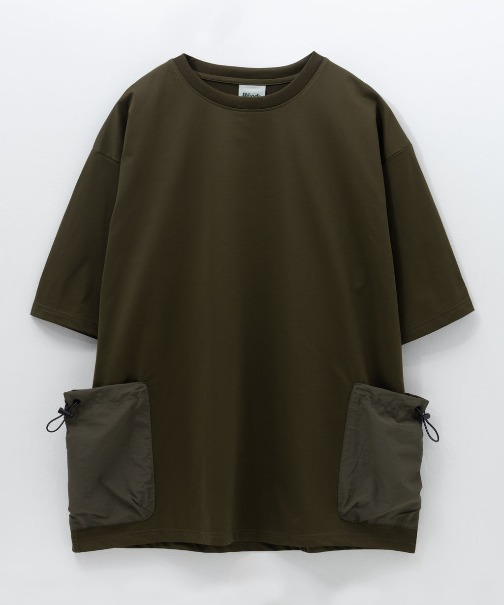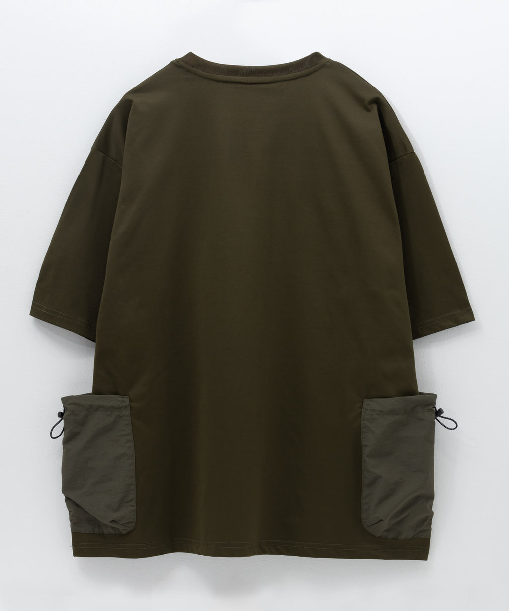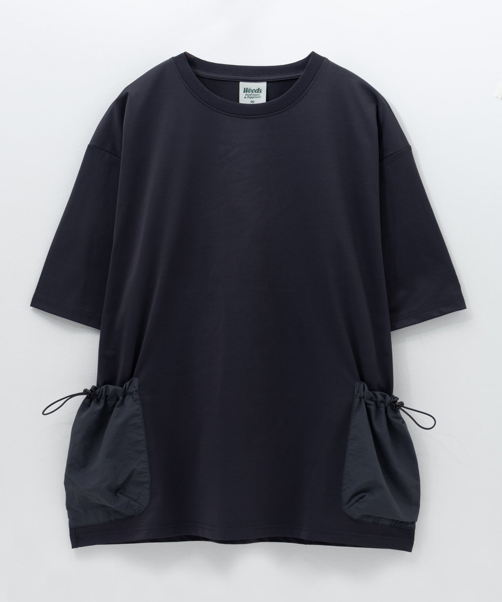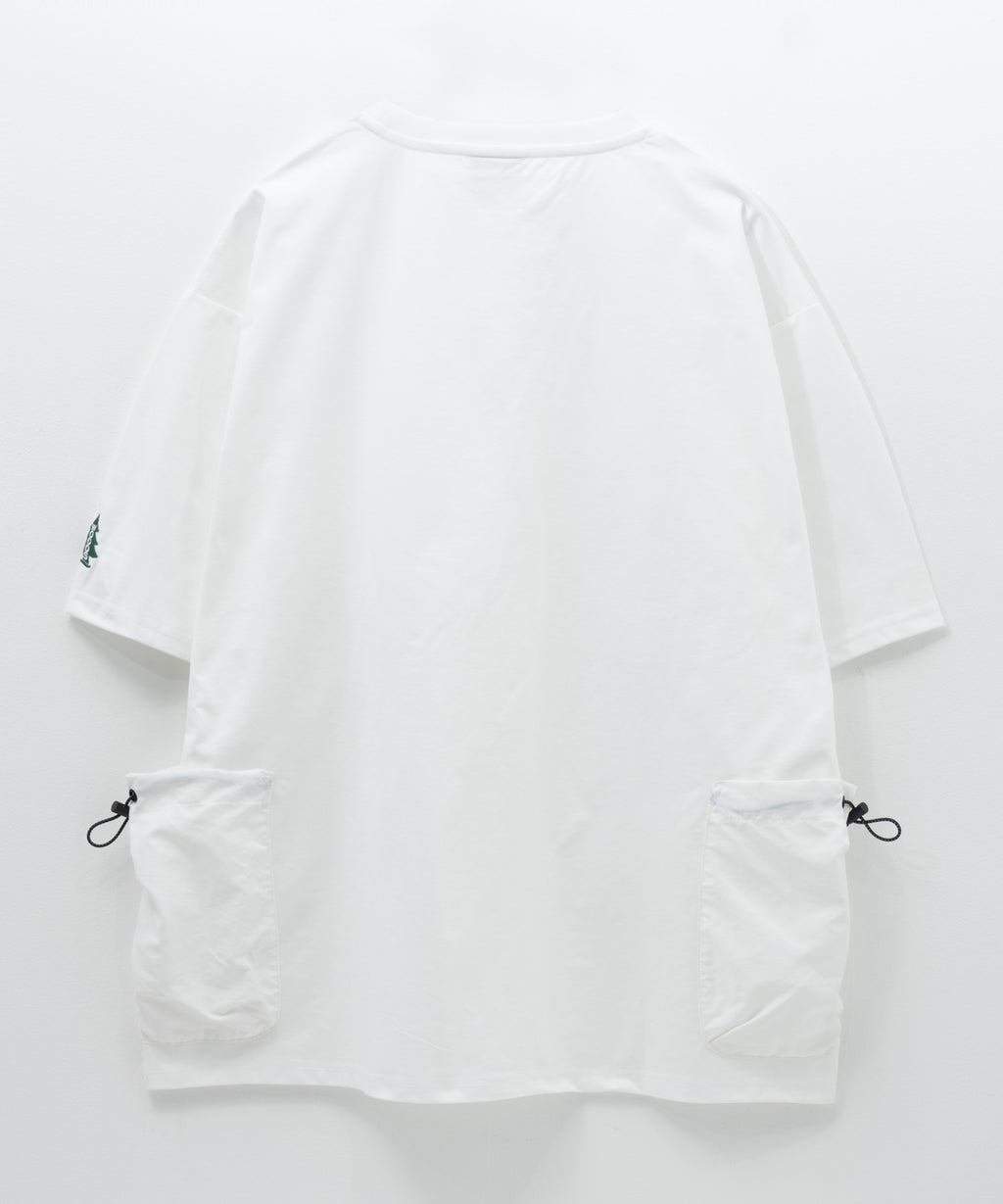 兩側使用帶抽繩的口袋,特別感的短袖T恤。