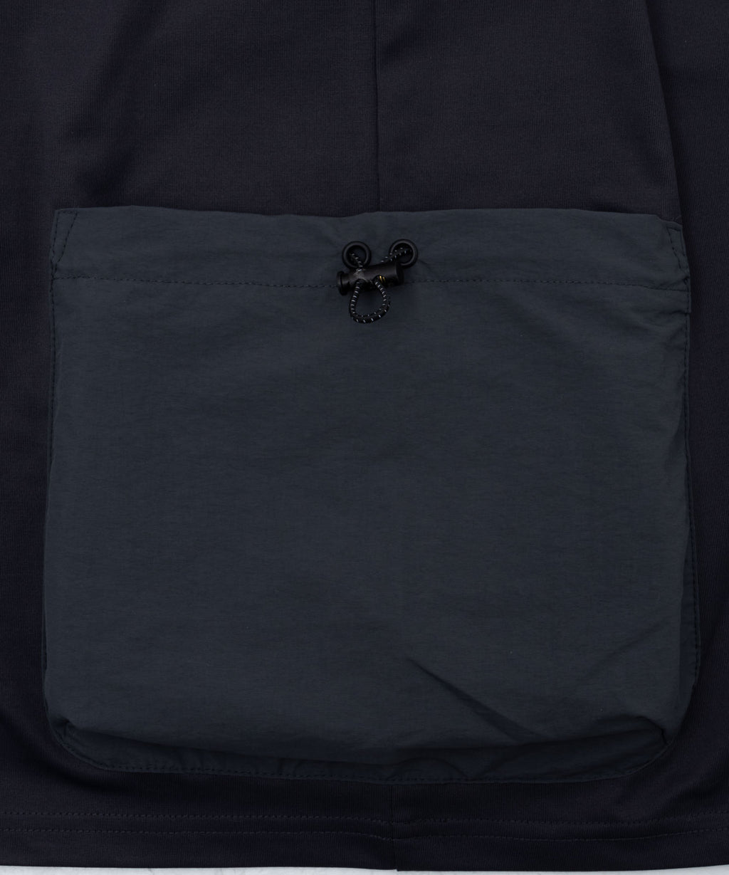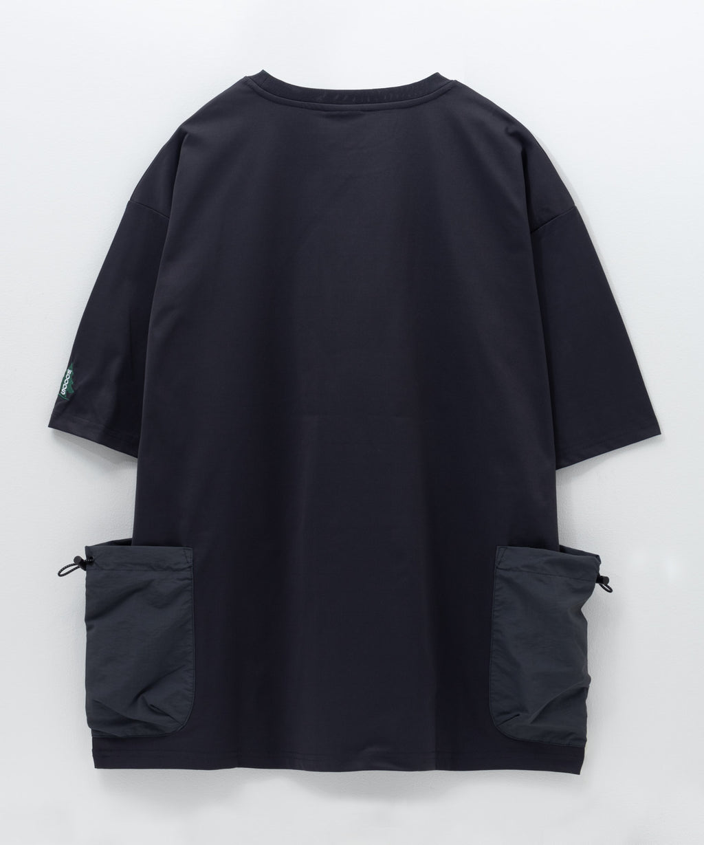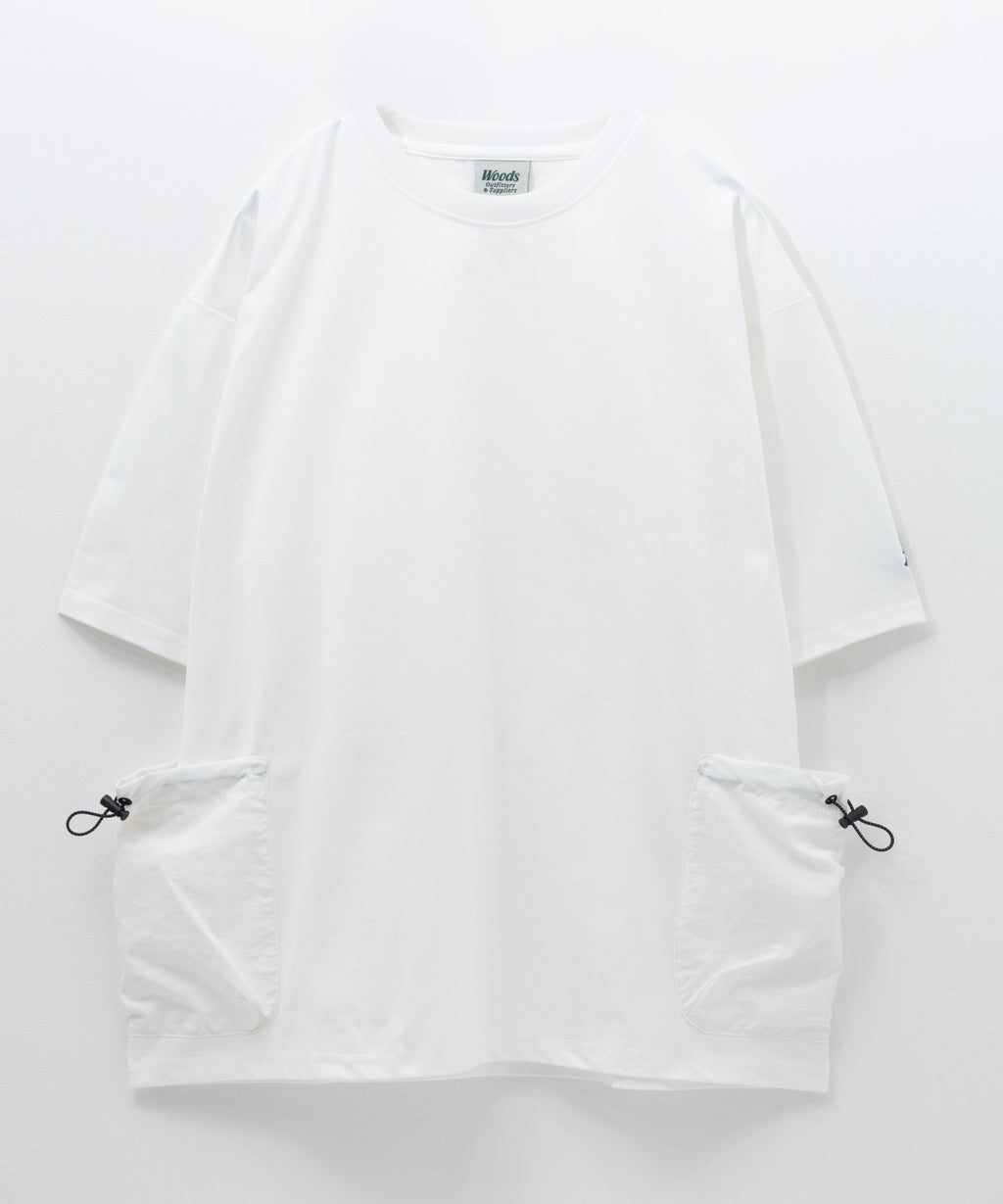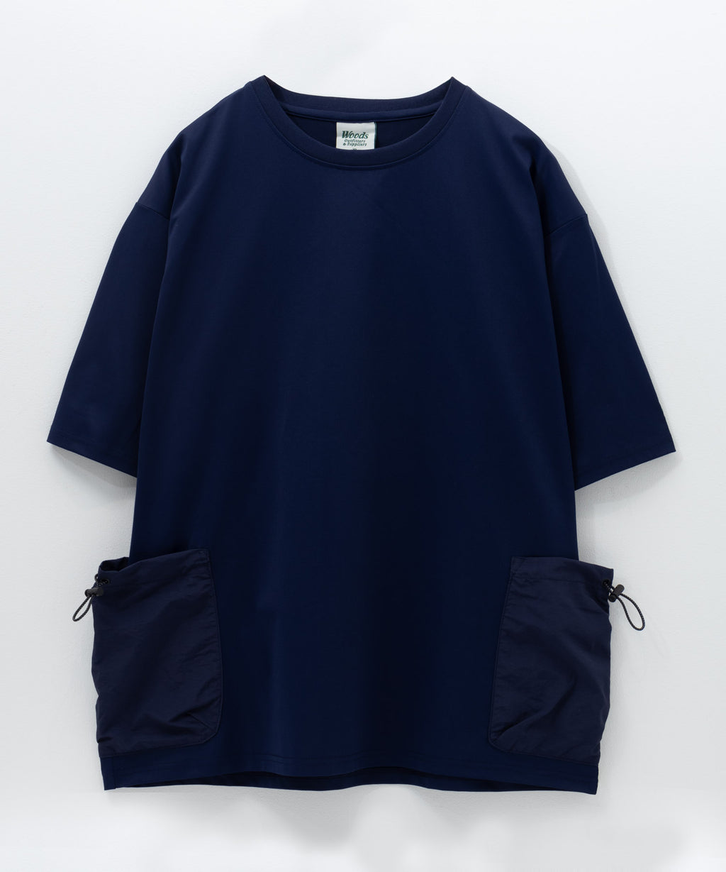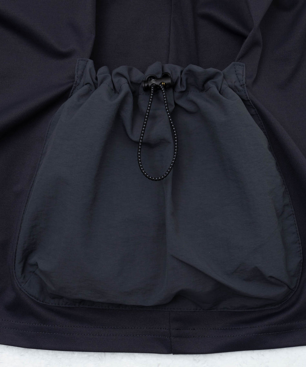 兩側使用帶抽繩的口袋,特別感的短袖T恤。