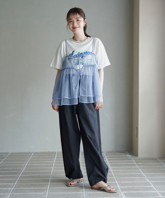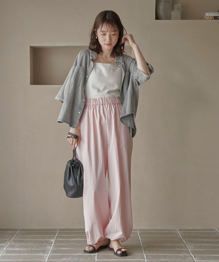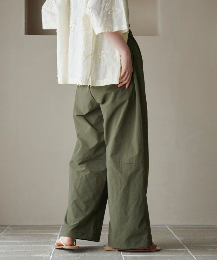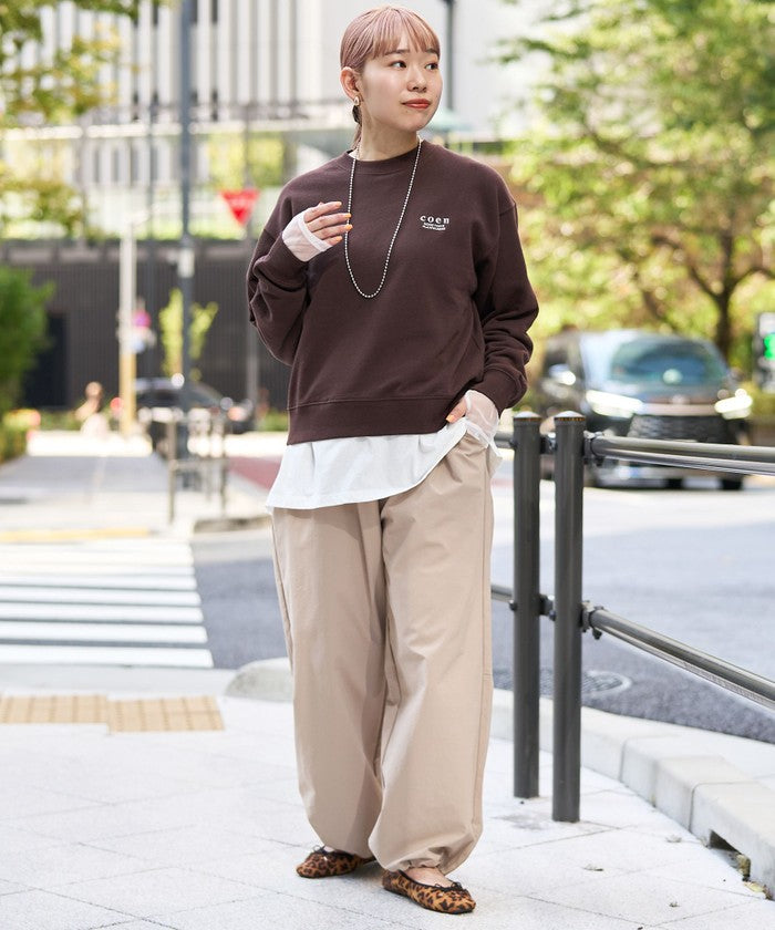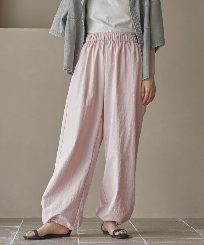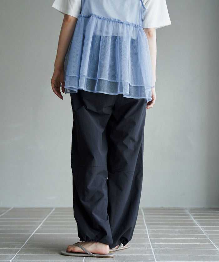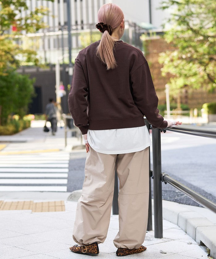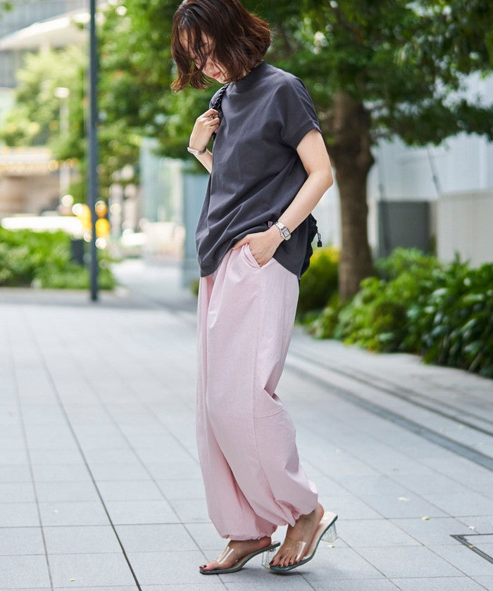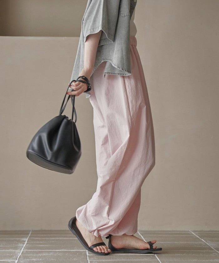 褲腳配有抽繩,收緊後可變換成具有趨勢感的降落傘褲風格的氣球褲輪廓。