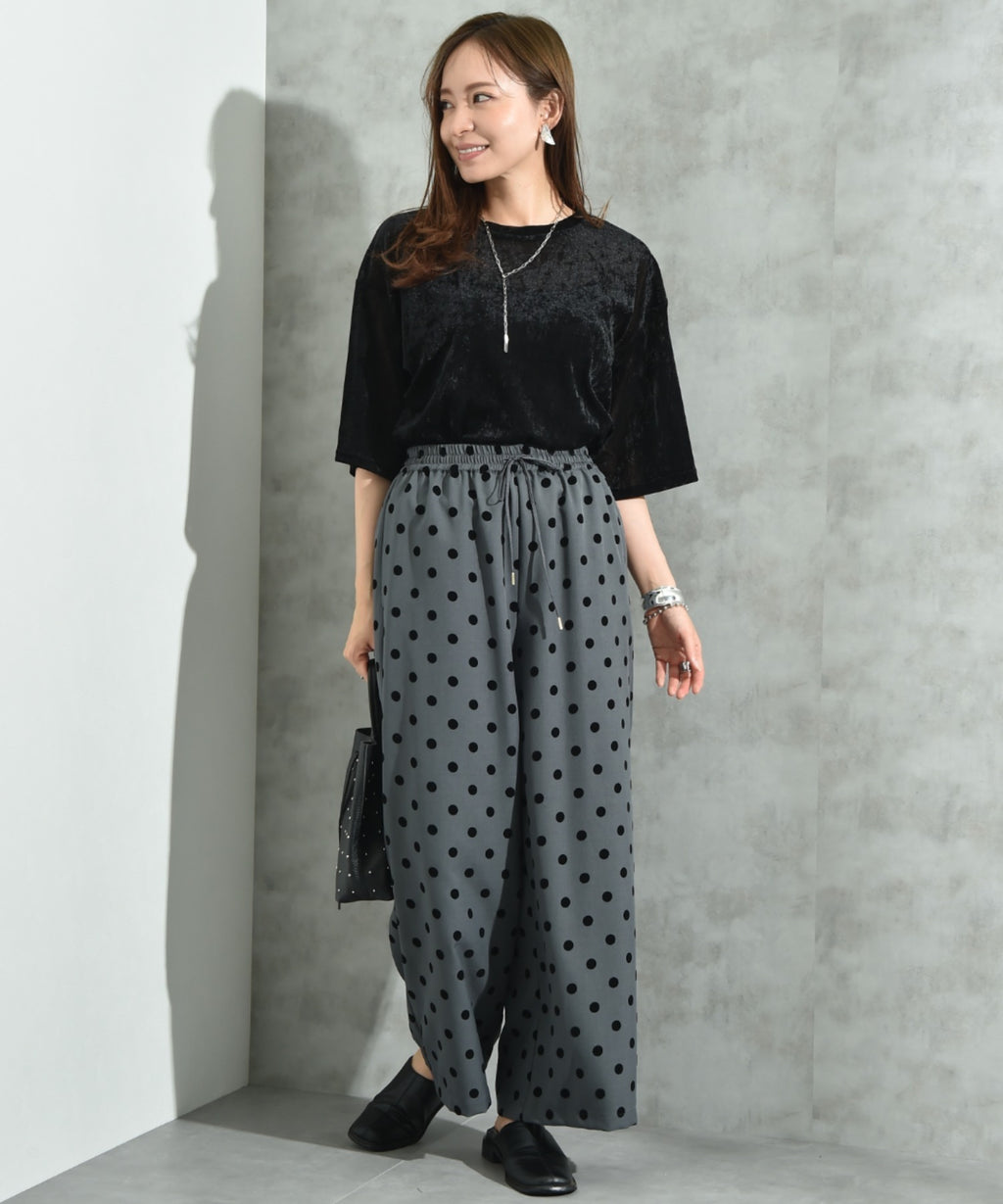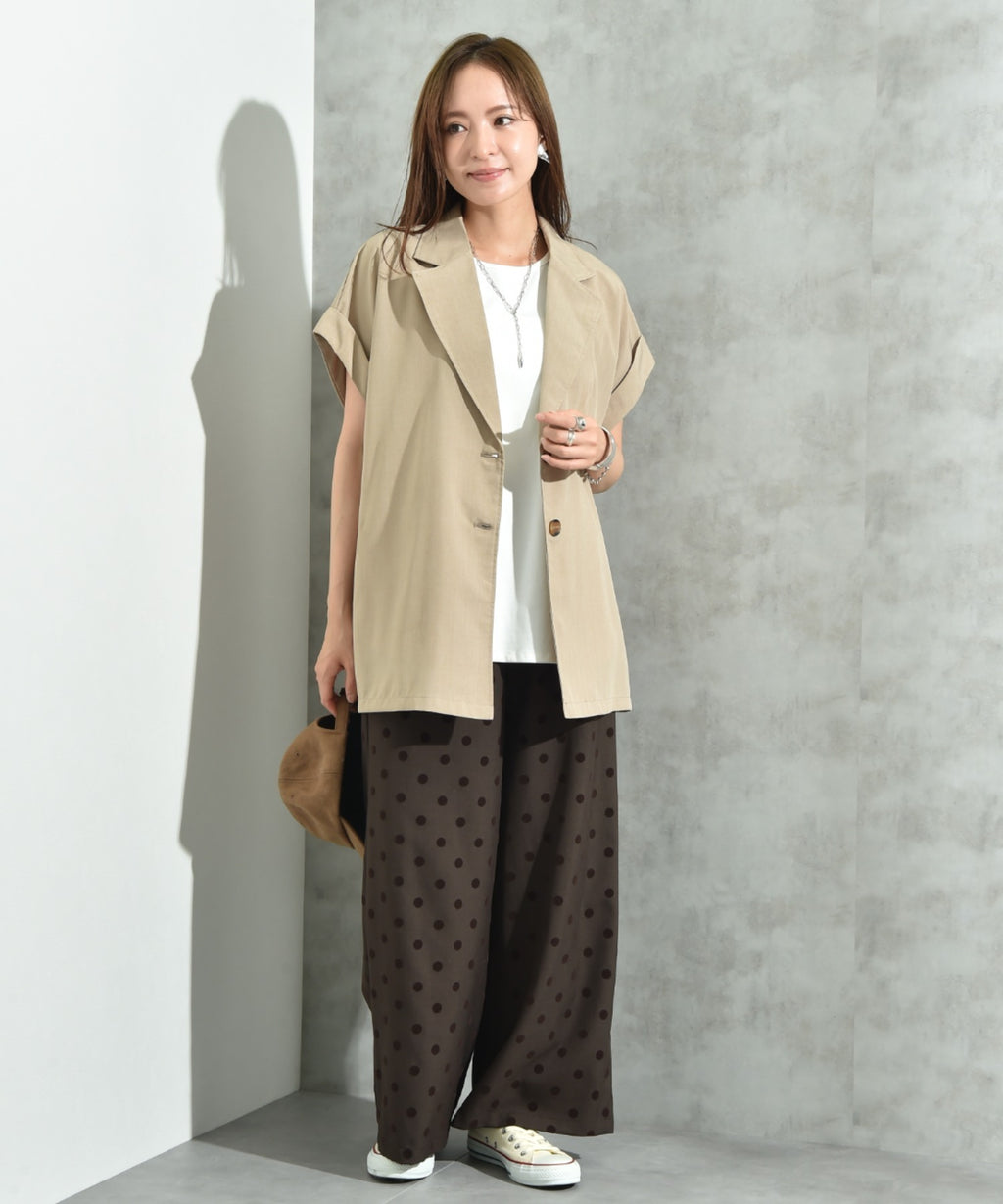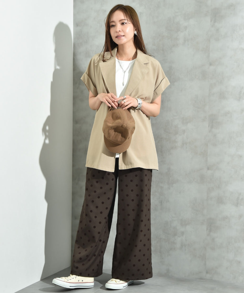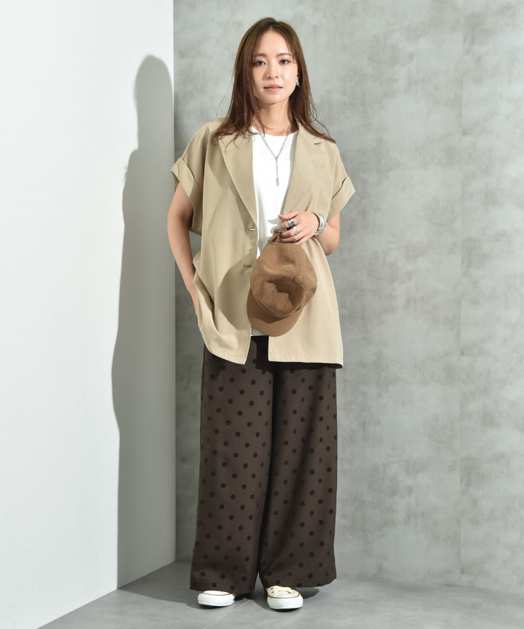 簡約成熟的點點圖案!寬鬆的輪廓帶來放鬆感,易於搭配,營造出今年的氛圍。輕盈的材質令人感覺舒適,從日常穿著到旅行或休閒都非常適合,絕對是必備的一件。它能為您的日常風格增添一絲隨性。
