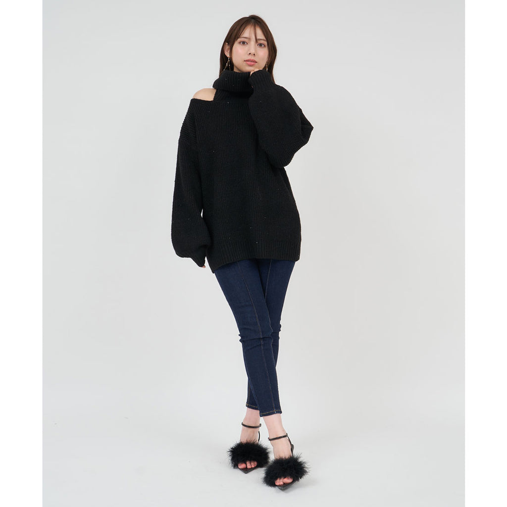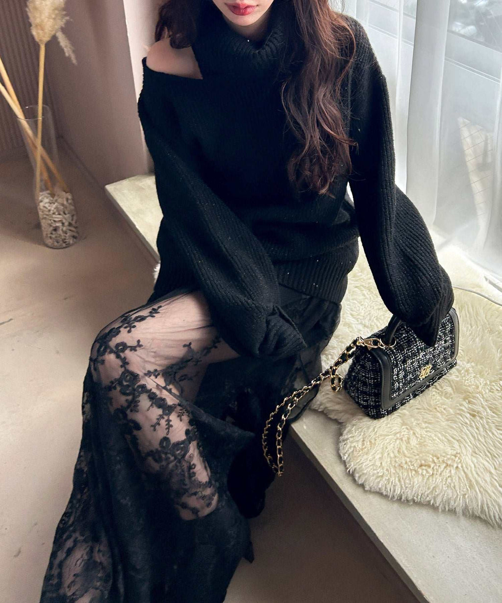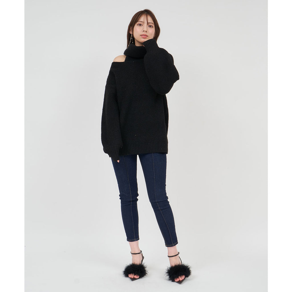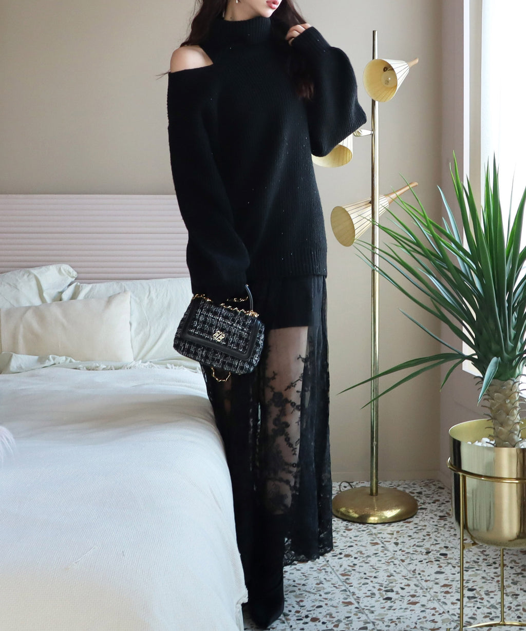 糸中嵌入的亮片散發出微微的閃爍光芒。長度到臀部的設計能夠很好地遮掩腰部周圍◎