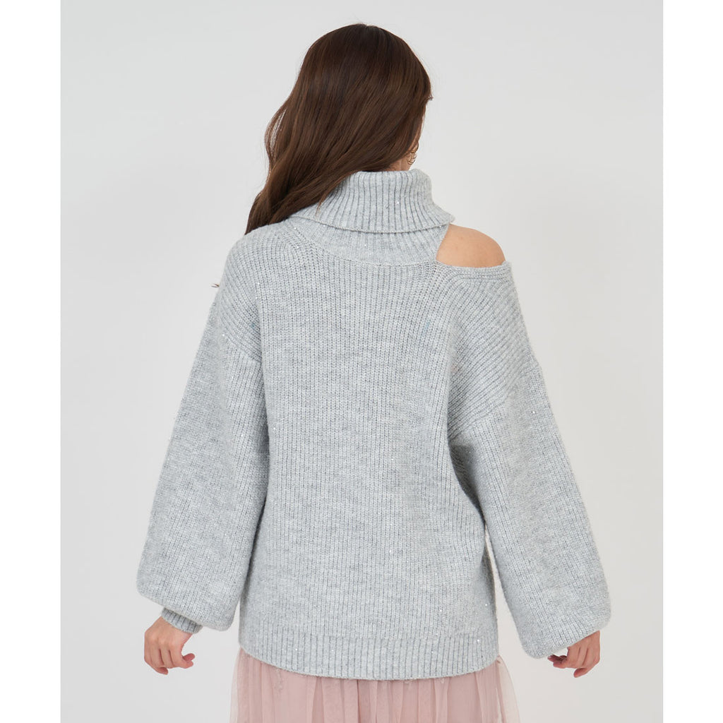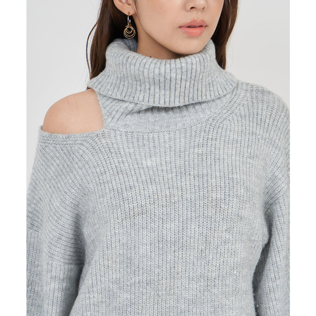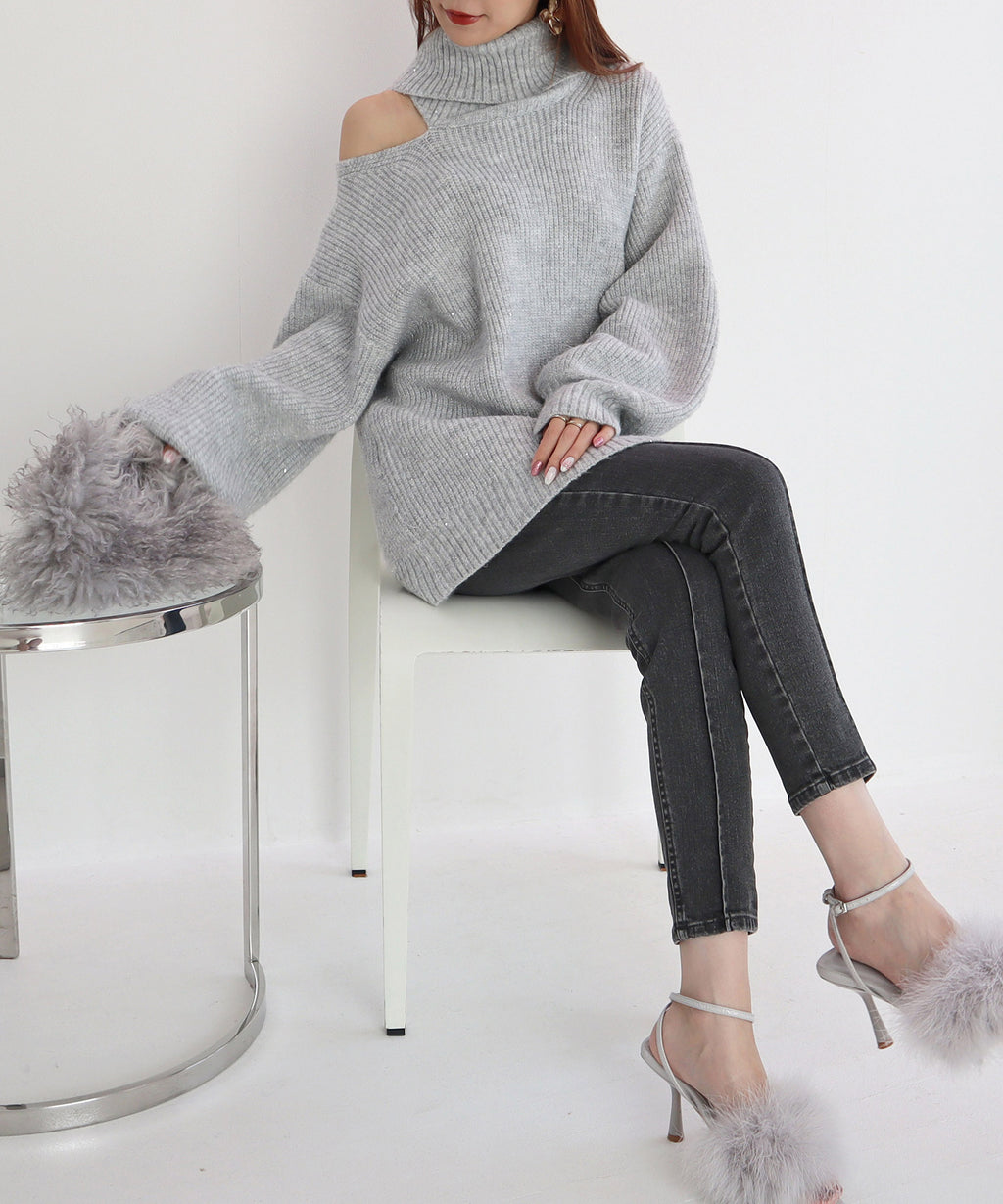 穿著高領上衣時,從脖子到手臂的剪裁展現出低調的肌膚露出。