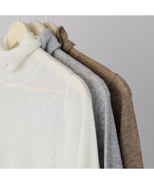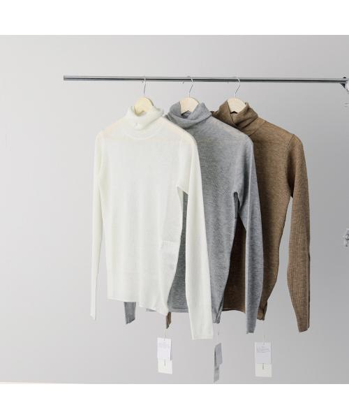 ・輕量且薄款的羊毛長袖高領針織毛衣