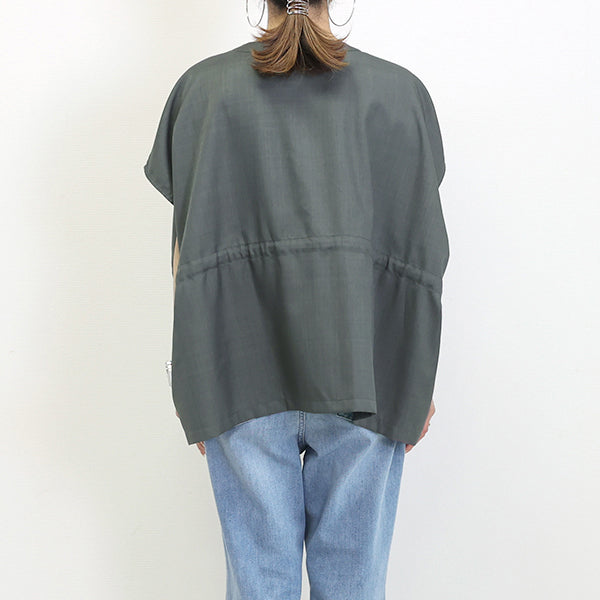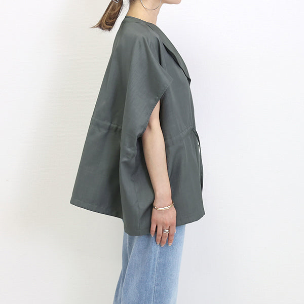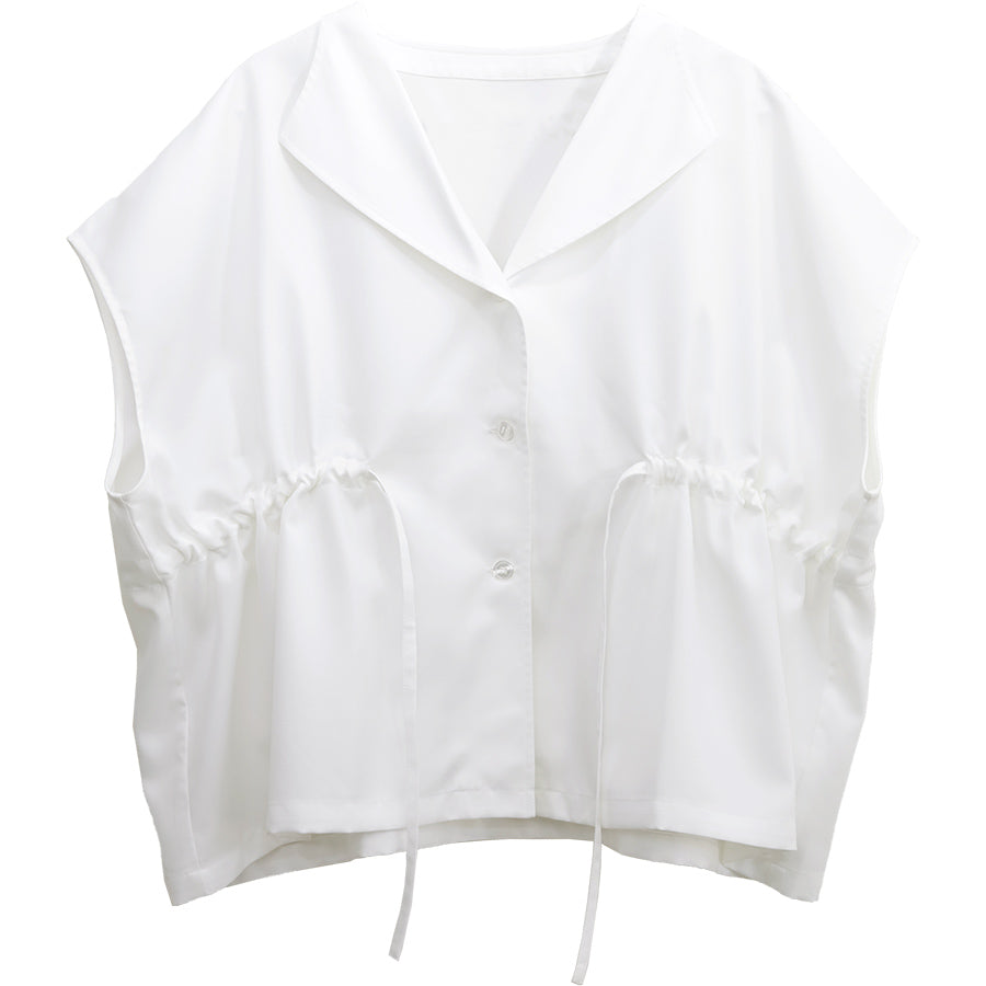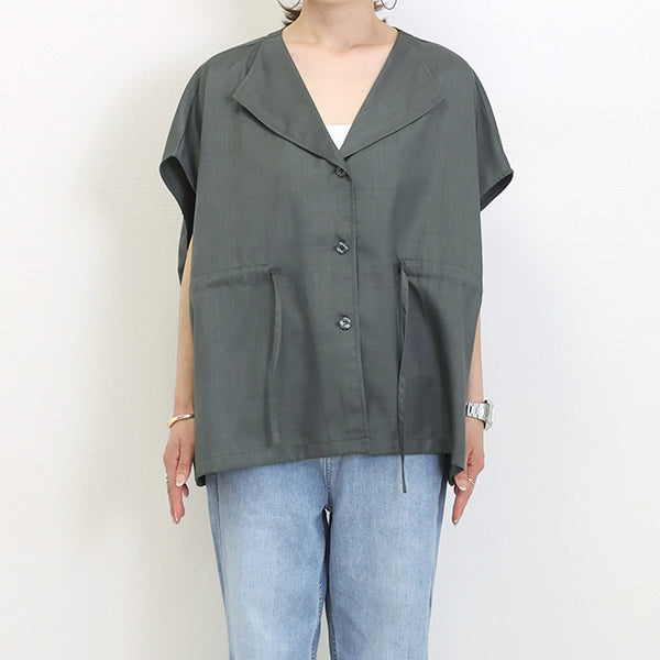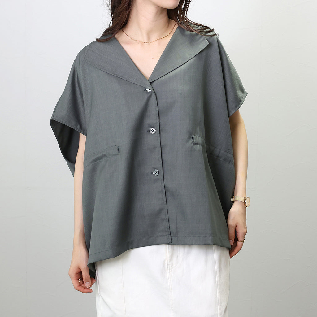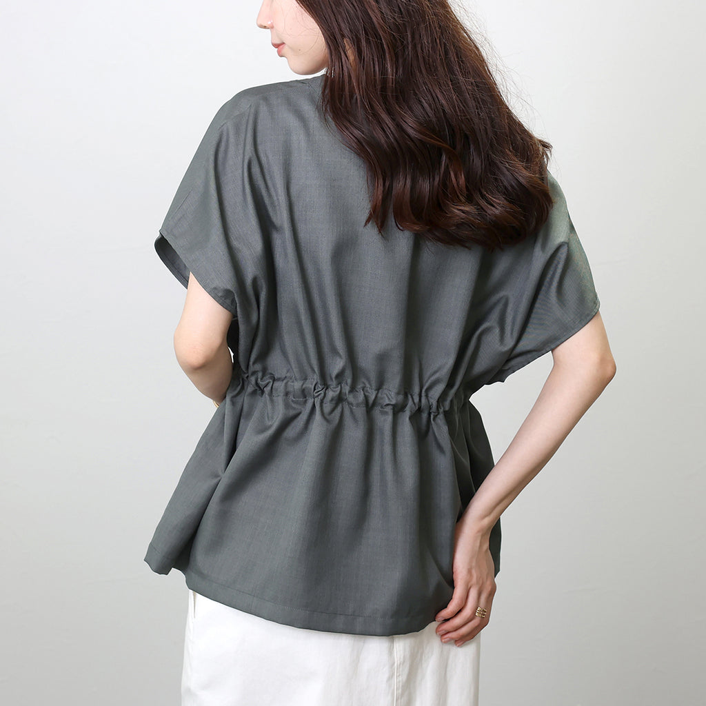 以襯衫為主角的可調整輪廓的抽繩襯衫。寬鬆的寬版襯衫不會勾勒出身體線條,穿著舒適。使用了大量面料的寬身設計,讓穿著感覺輕鬆自在,並且能夠巧妙地掩蓋令人擔心的腹部。腰部配有可調整的抽繩,拉緊後可變成勾勒出X型線條的聚攏襯衫。華麗感大幅提升,展現出女性的氛圍。您可以根據喜好和下身搭配享受不同的輪廓。領口設計為清爽的開領樣式。銳利的V型線條和適度的肌膚展露,平衡地展現出輕鬆感和整潔感。存在感十足的大領子也能期待有小臉效果。這是一款推薦給成年人的夏季風格,適合上班和休閒兩用的襯衫。