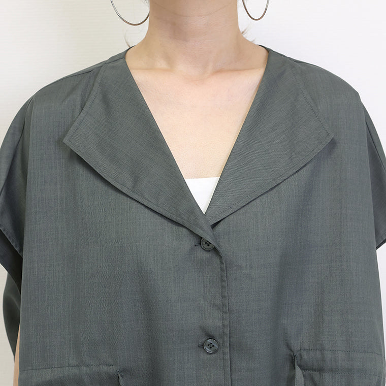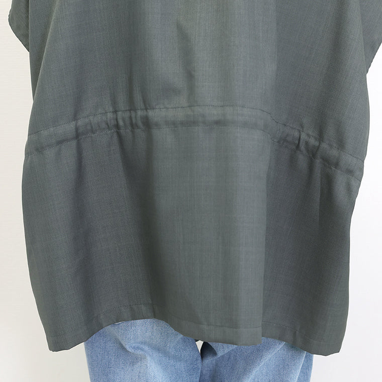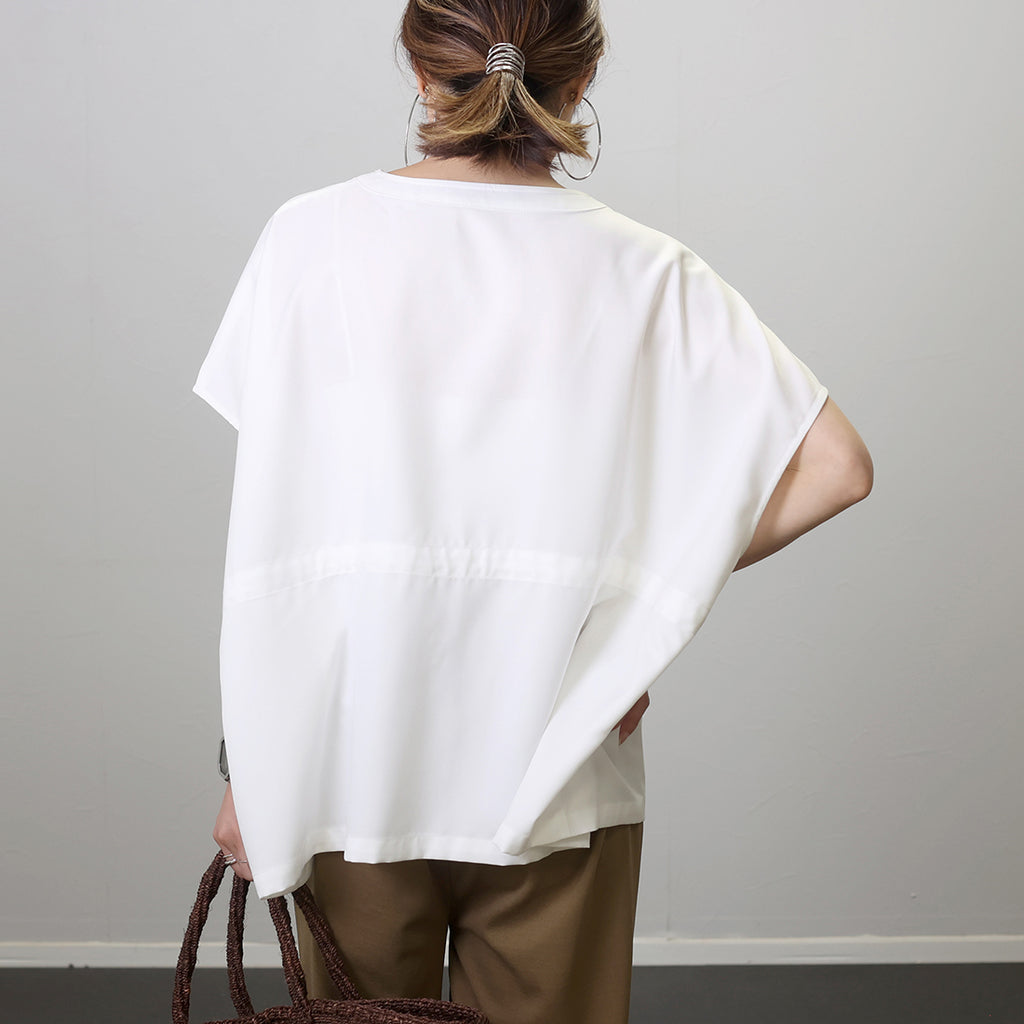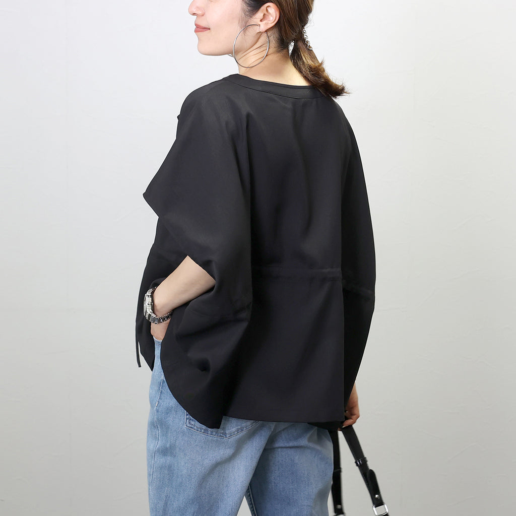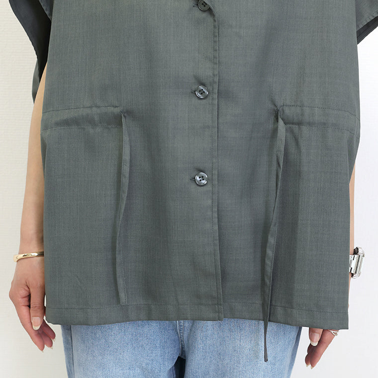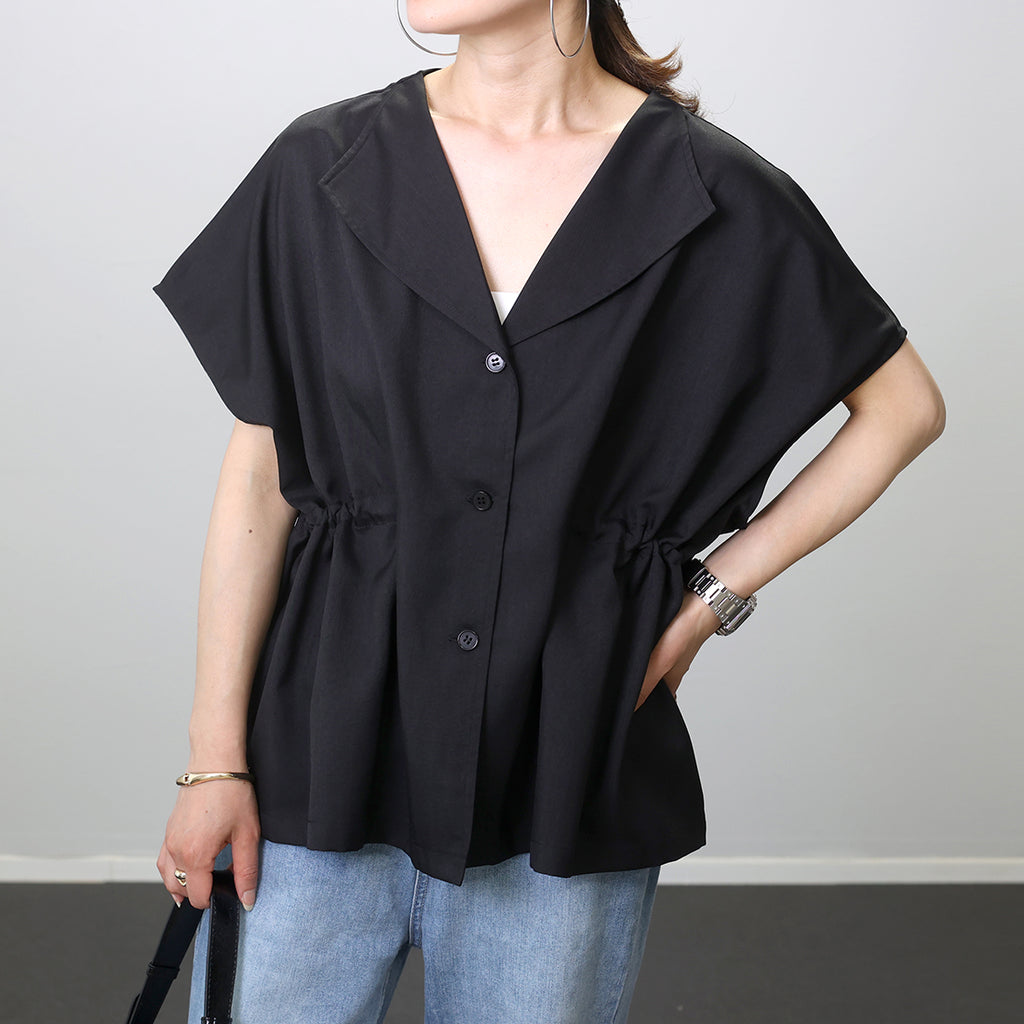 以襯衫為主角的可調整輪廓的抽繩襯衫。寬鬆的寬版襯衫不會勾勒出身體線條,穿著舒適。使用了大量面料的寬身設計,讓穿著感覺輕鬆自在,並且能夠巧妙地掩蓋令人擔心的腹部。腰部配有可調整的抽繩,拉緊後可變成勾勒出X型線條的聚攏襯衫。華麗感大幅提升,展現出女性的氛圍。您可以根據喜好和下身搭配享受不同的輪廓。領口設計為清爽的開領樣式。銳利的V型線條和適度的肌膚展露,平衡地展現出輕鬆感和整潔感。存在感十足的大領子也能期待有小臉效果。這是一款推薦給成年人的夏季風格,適合上班和休閒兩用的襯衫。