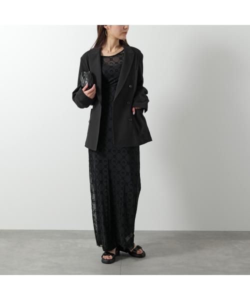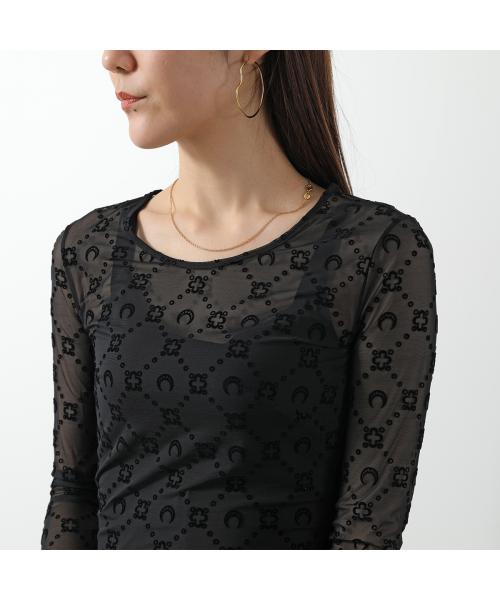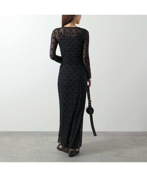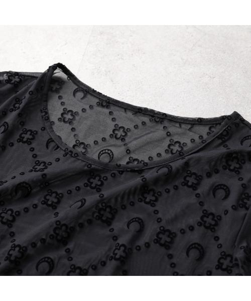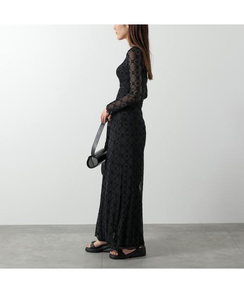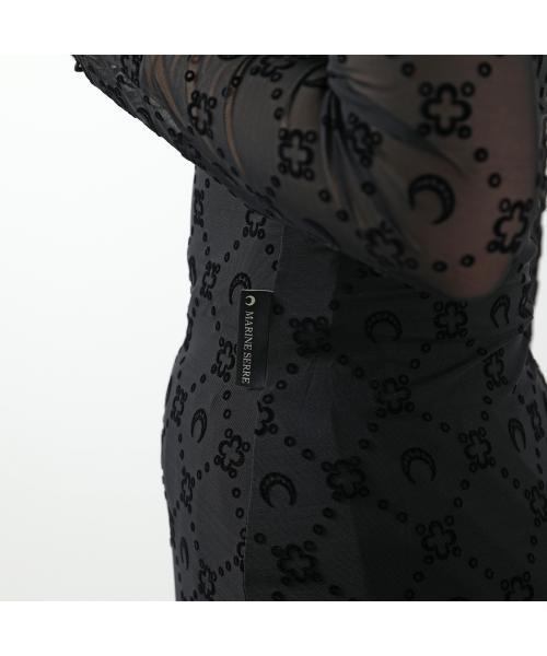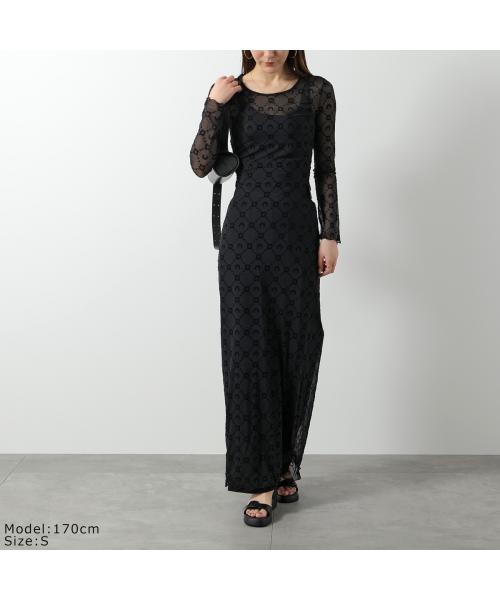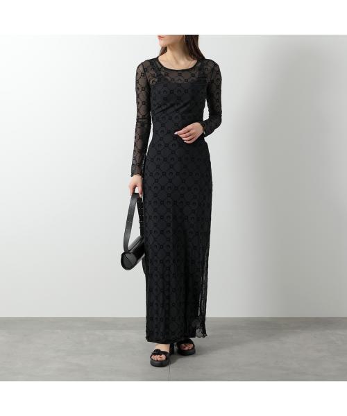 Marine Serre 馬琳·塞爾 連身裙 回收網眼絨毛長裙 WDR297B CJER0005 女士 長袖 長款 網眼 新月 圖案 單色 BK99/黑色