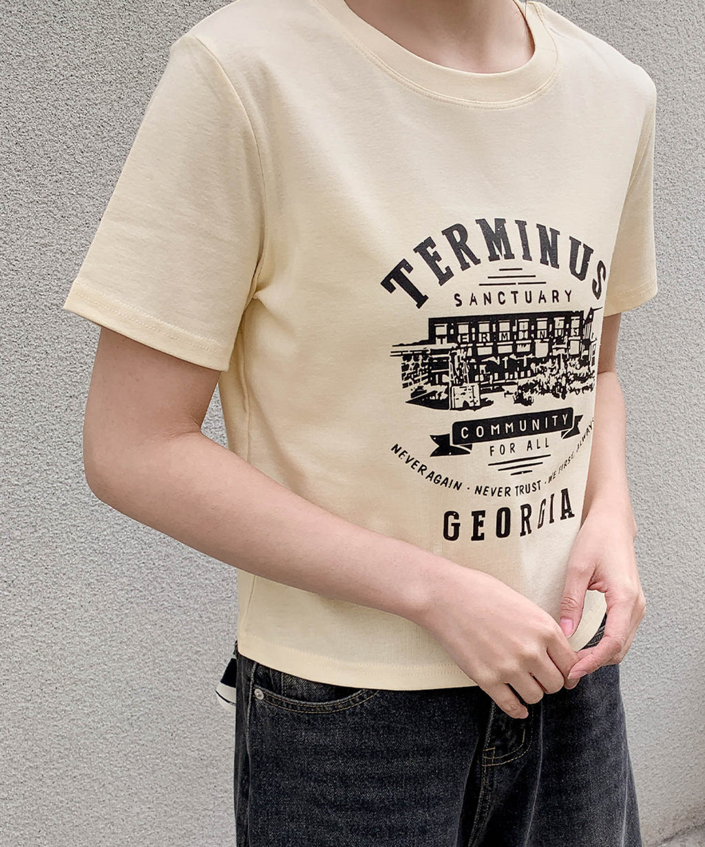 前面的印花成為亮點,展現出隨性時尚感的T恤。