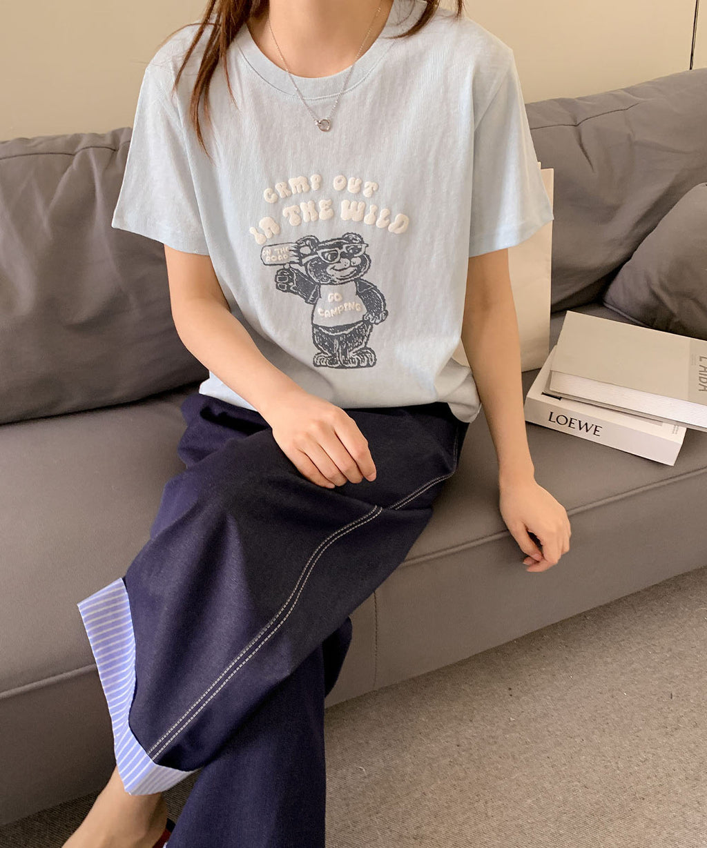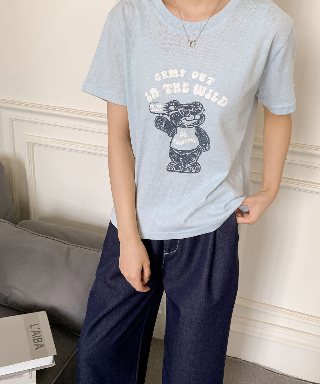 以單色調描繪的溫和氛圍熊熊印花T恤,令人印象深刻。