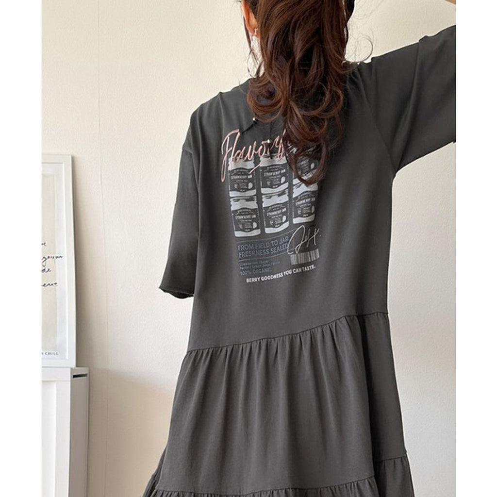 Classical Elf Classical Elf 舒適的穿著感◎100%棉質背面標誌印刷層次裙連衣裙