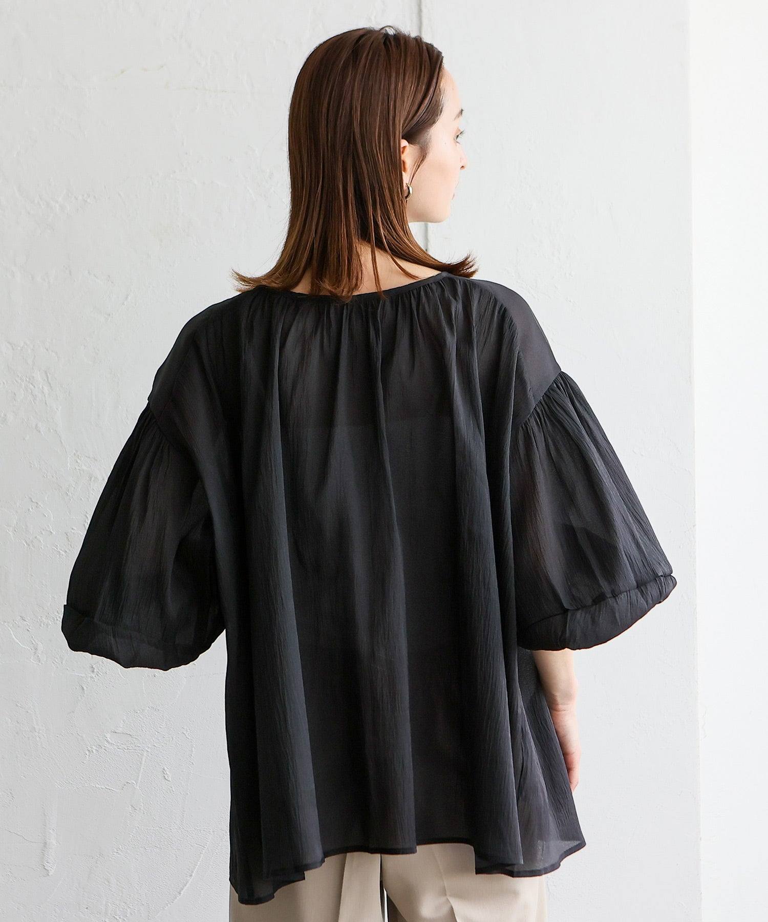 蓬鬆輪廓的氣球袖透膚襯衫,魅力十足。