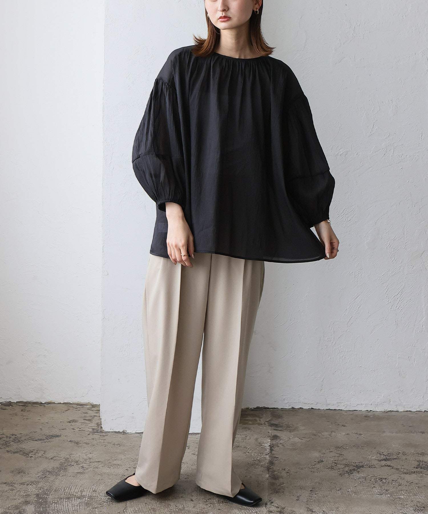 寬鬆的胸寬與袖子蓬鬆感,展現女性柔和的氣質,同時營造隨性風格。
