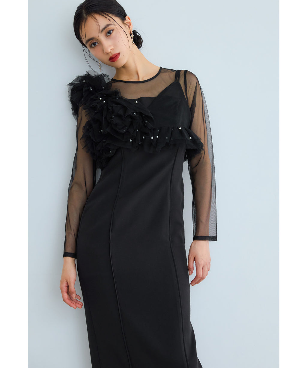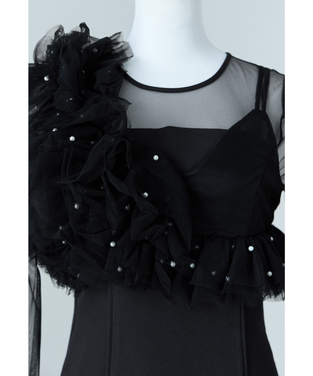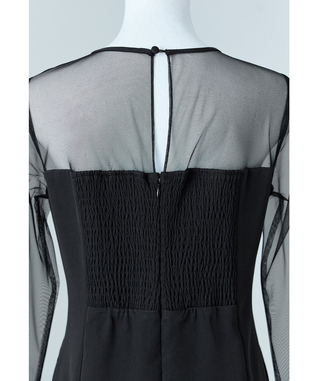 從肩膀到袖子部分切換為透視感美麗的薄紗,與胸衣也容易搭配。