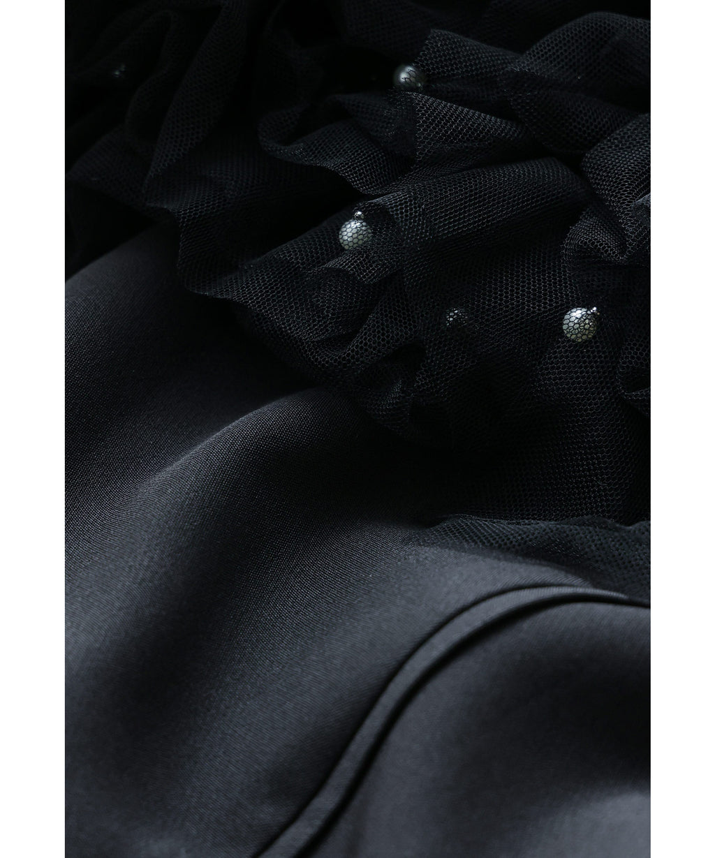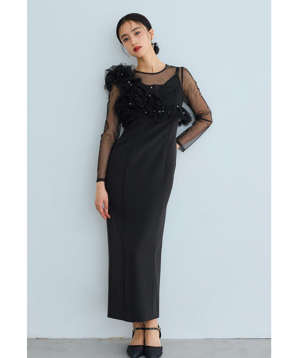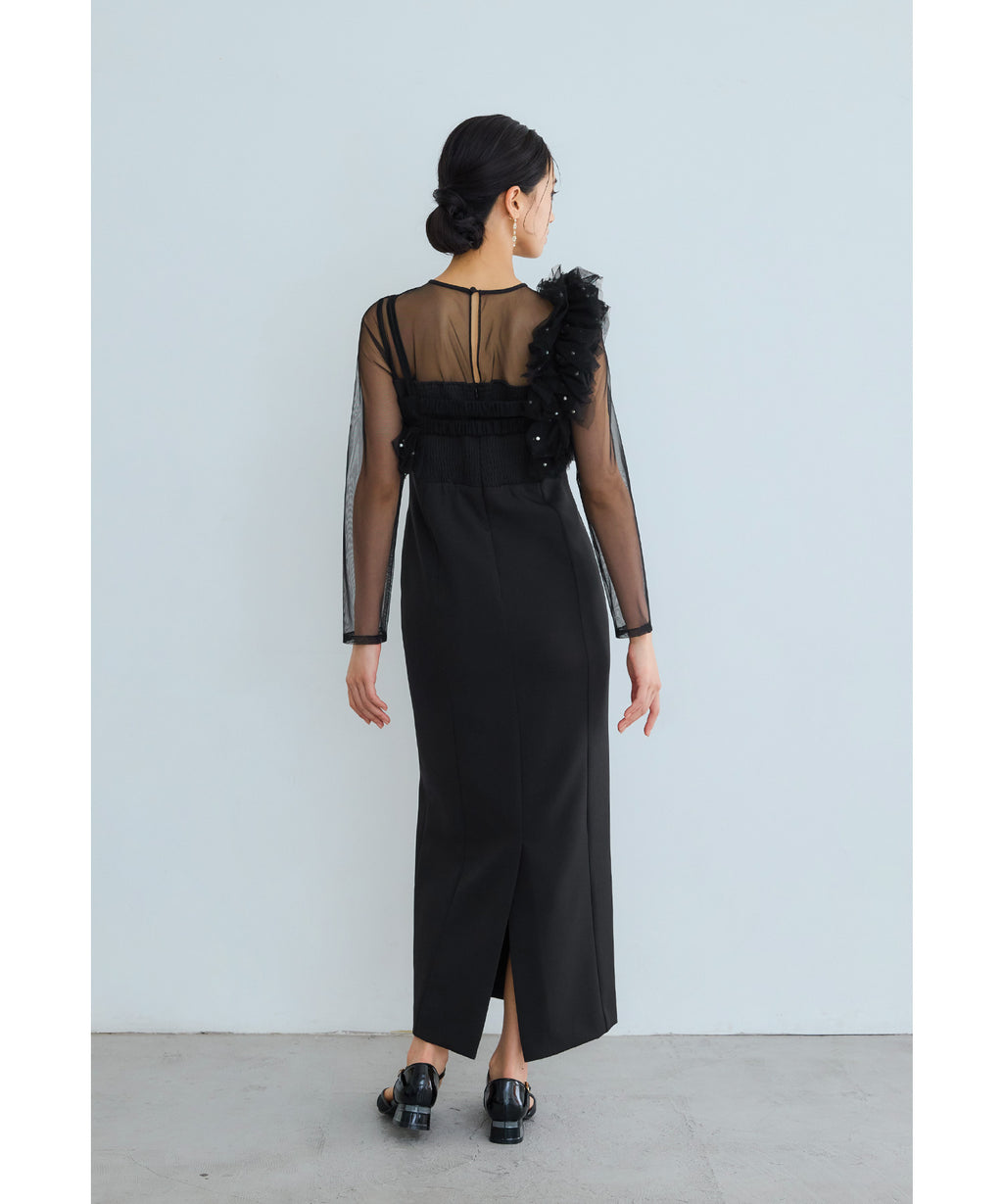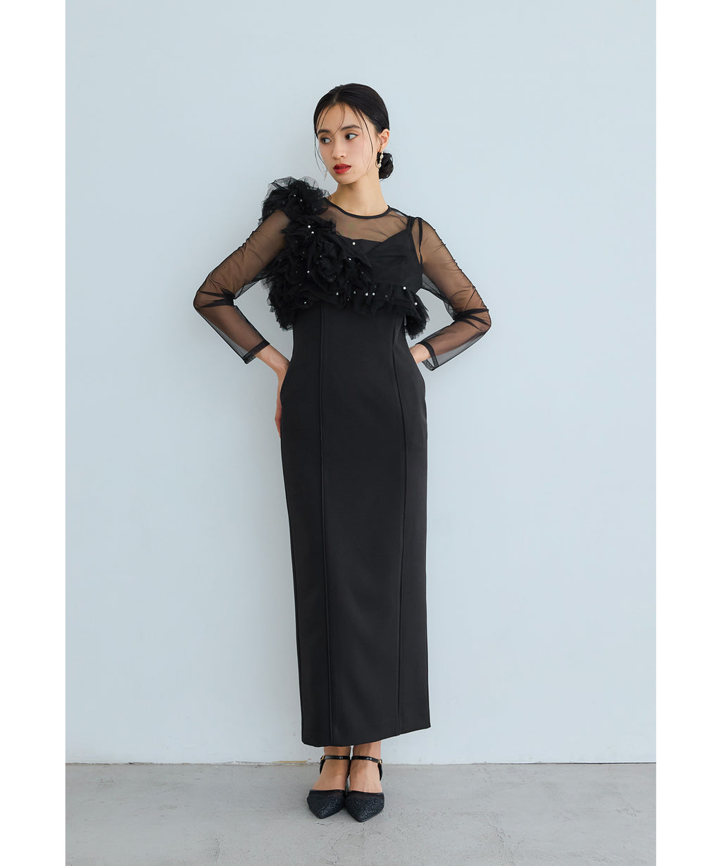 從肩膀到袖子部分切換為透視感美麗的薄紗,與胸衣也容易搭配。