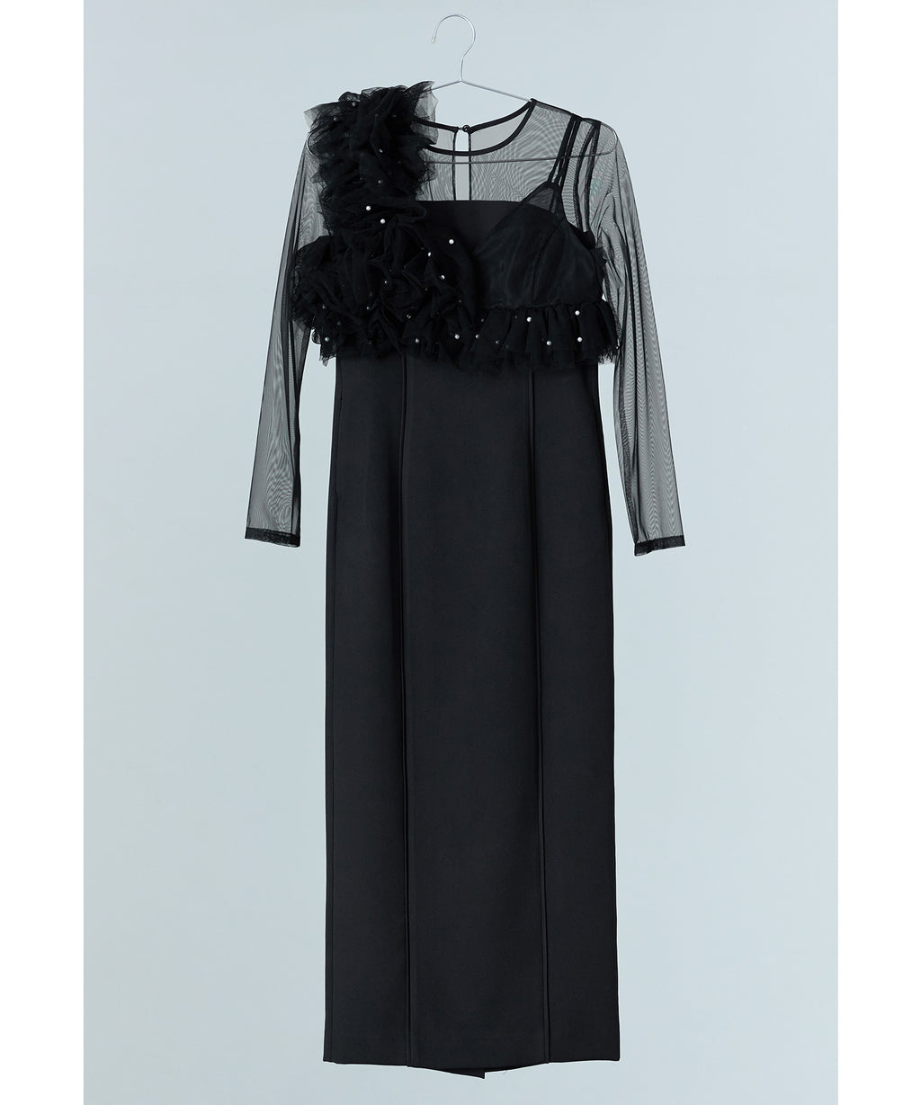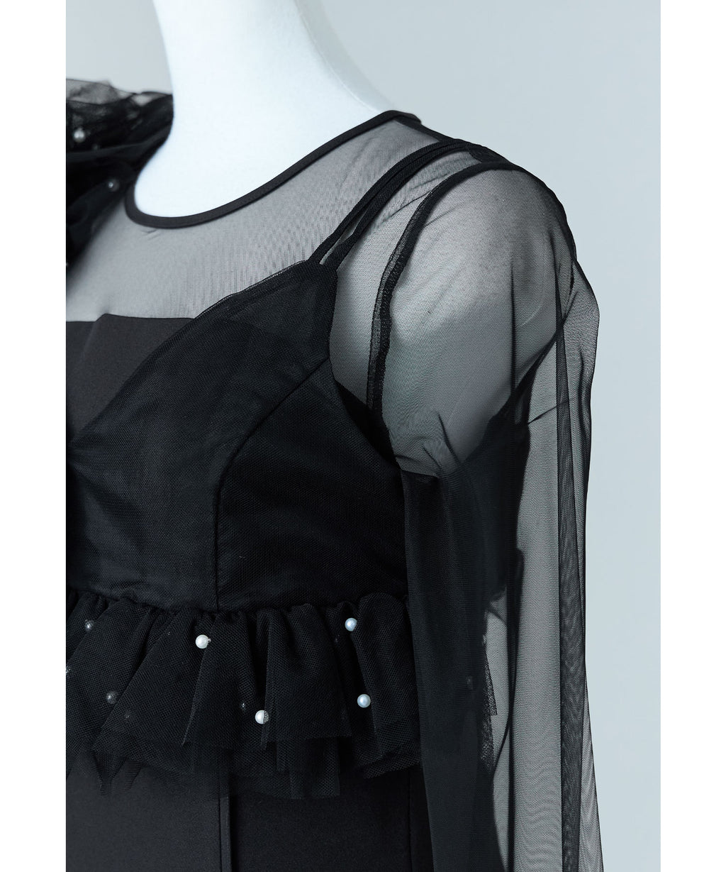 珍珠網紗背心和連衣裙的兩件套裝。