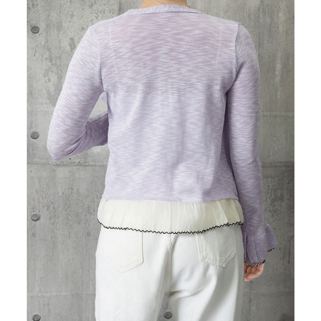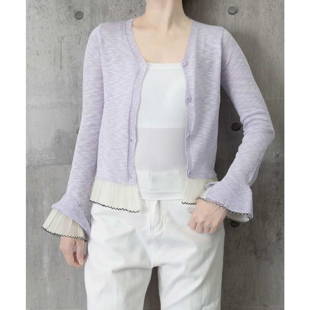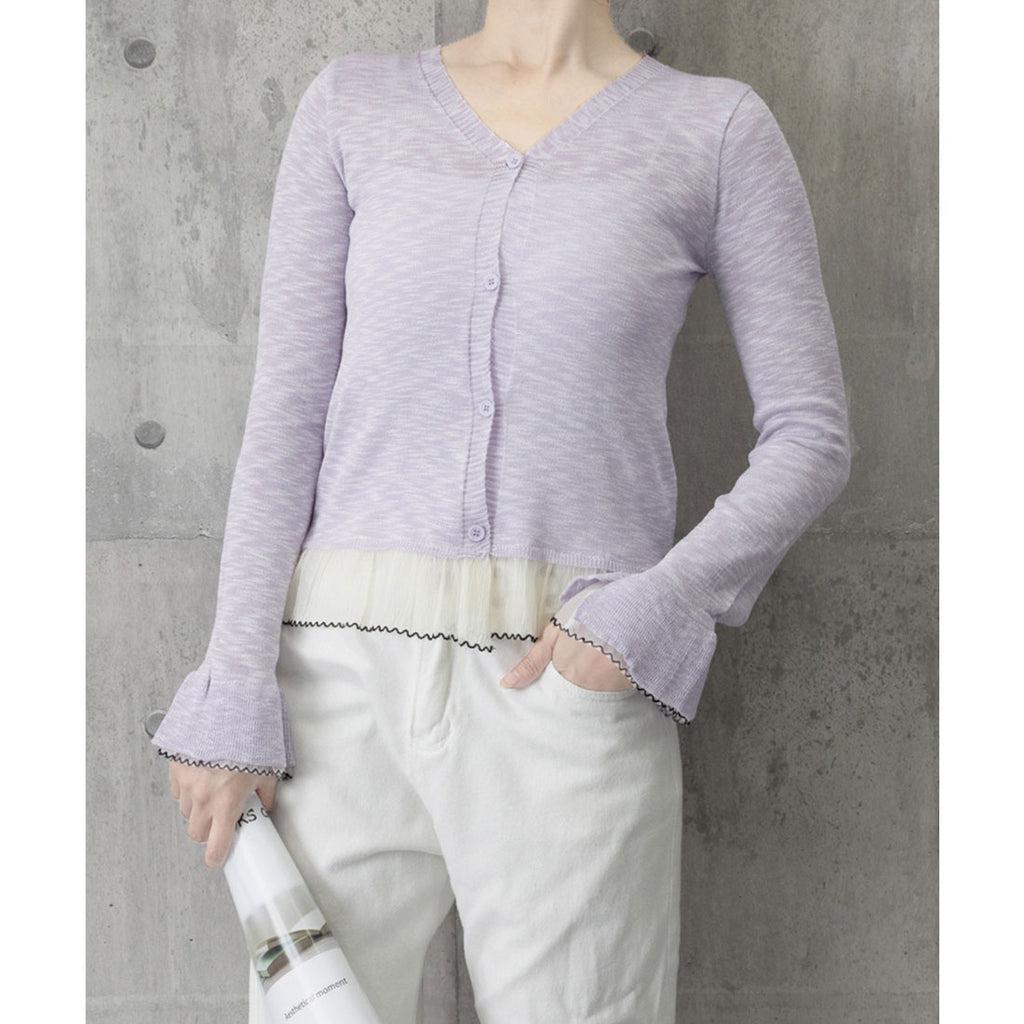 下擺點綴荷葉邊,展現女性柔美印象的針織開衫。