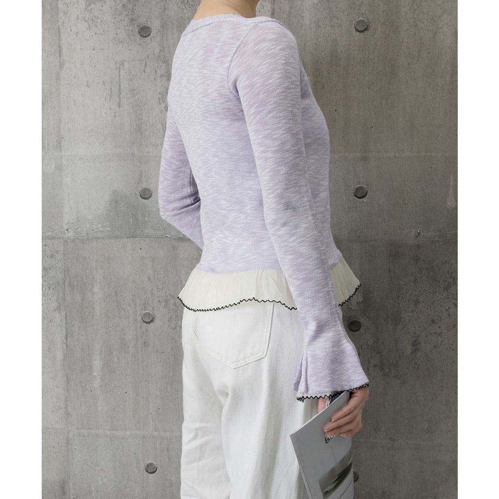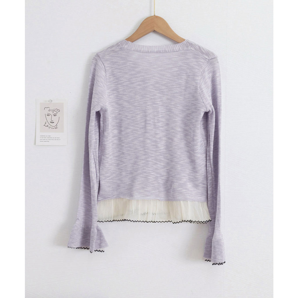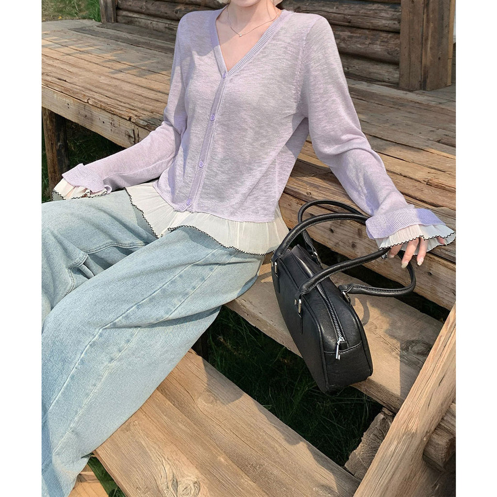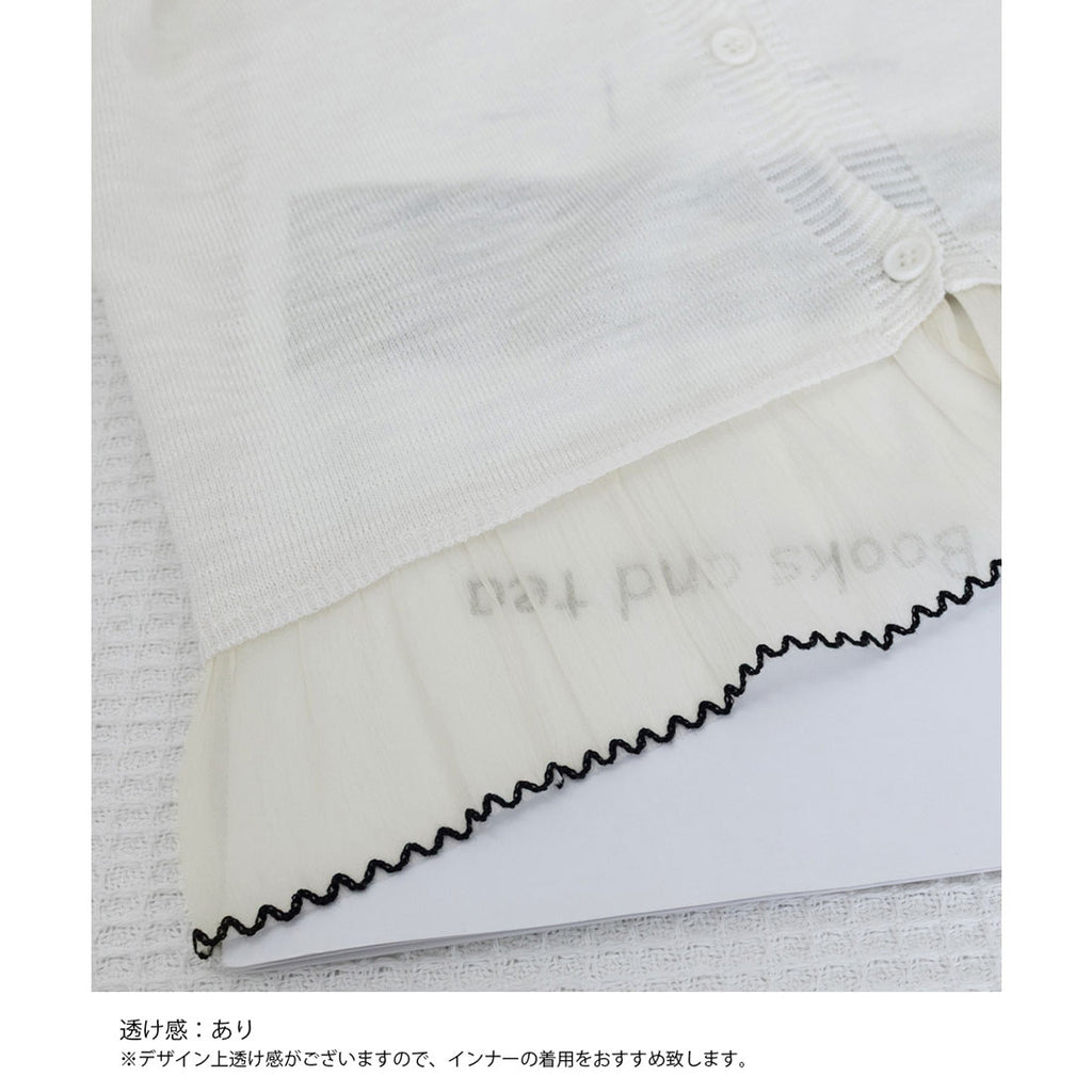 下擺點綴荷葉邊,展現女性柔美印象的針織開衫。