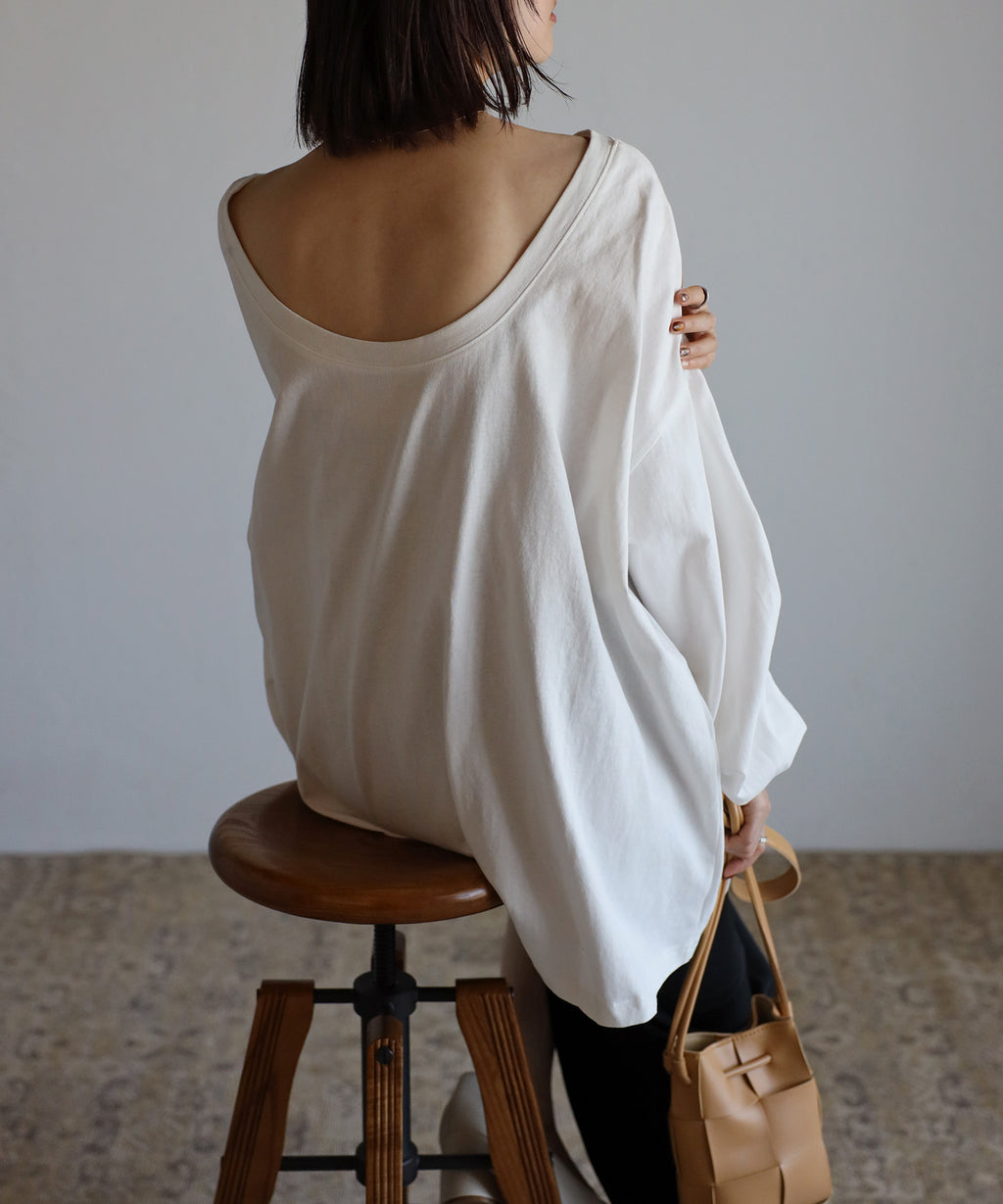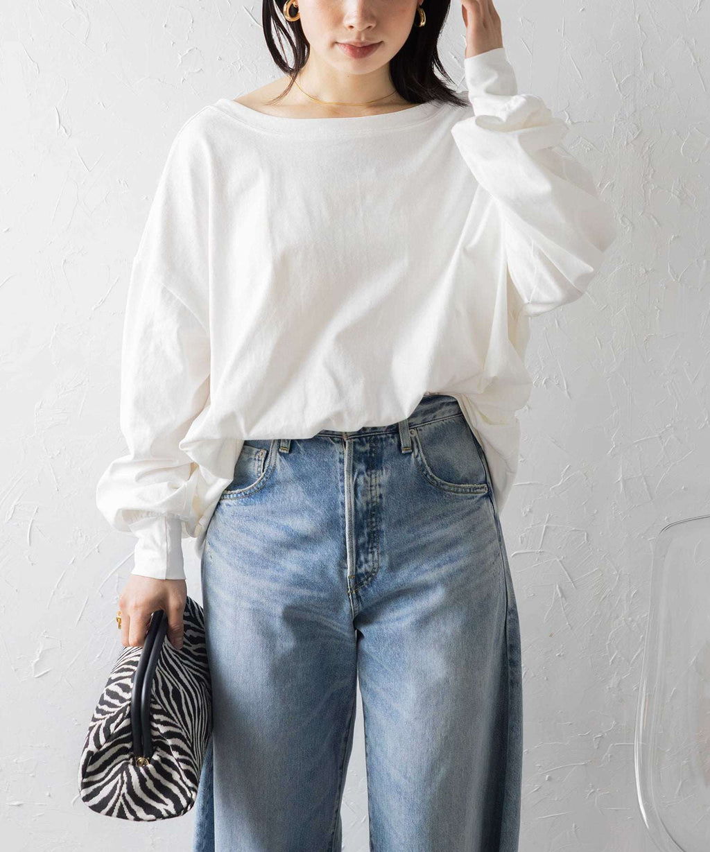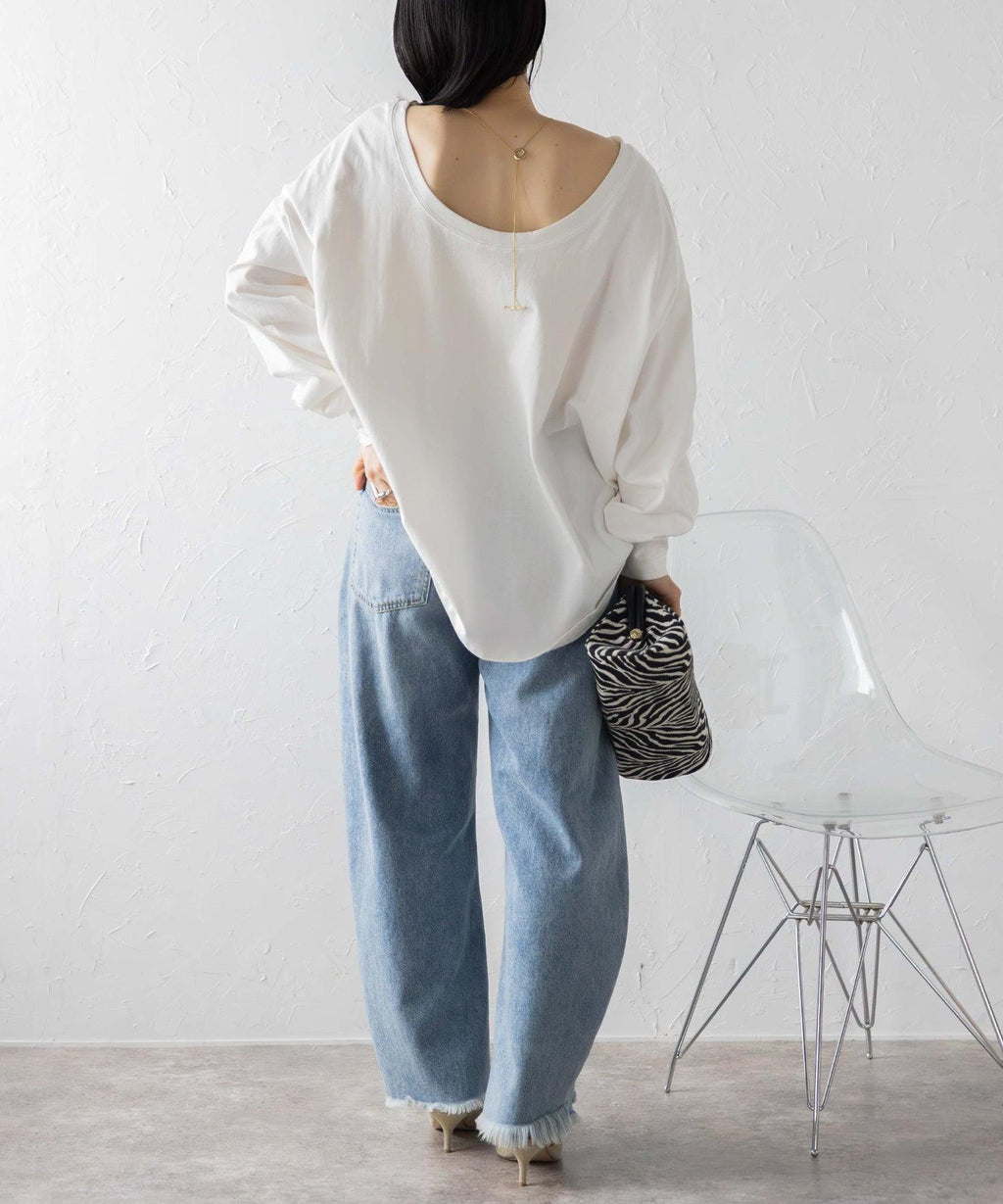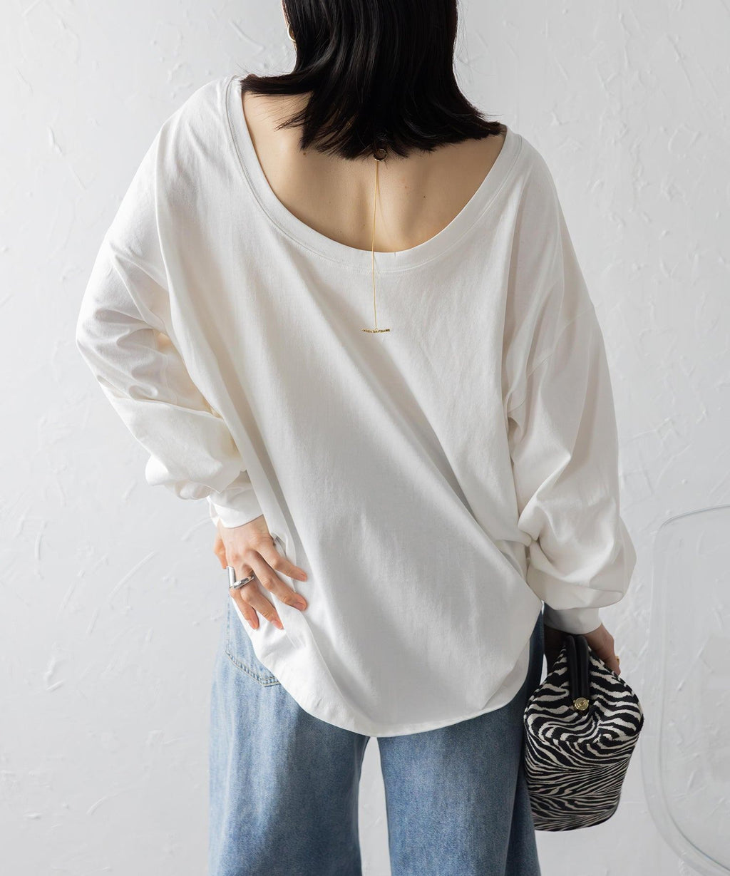 後領口大開的設計,展現出隨性又不失時尚感的休閒T恤。