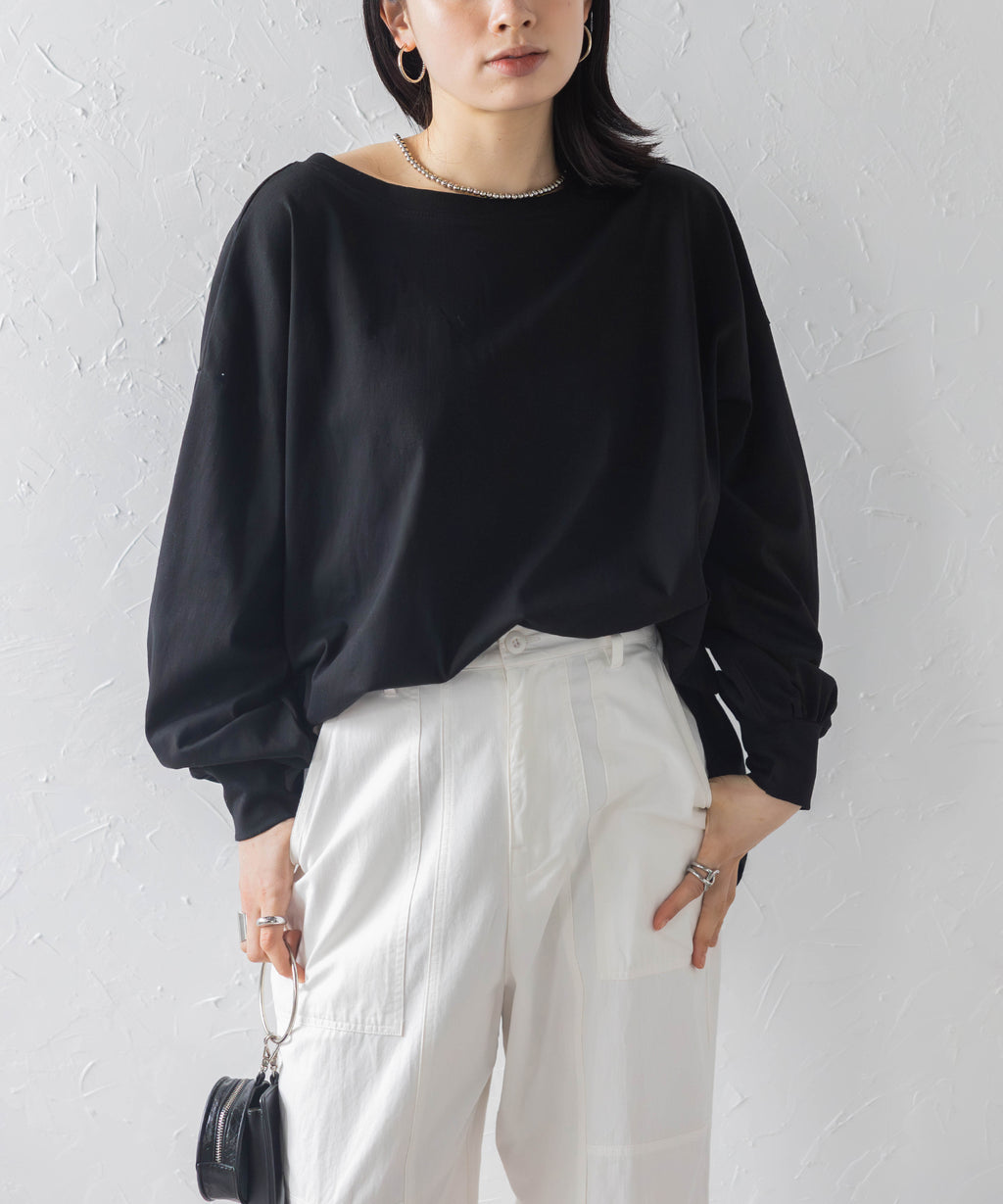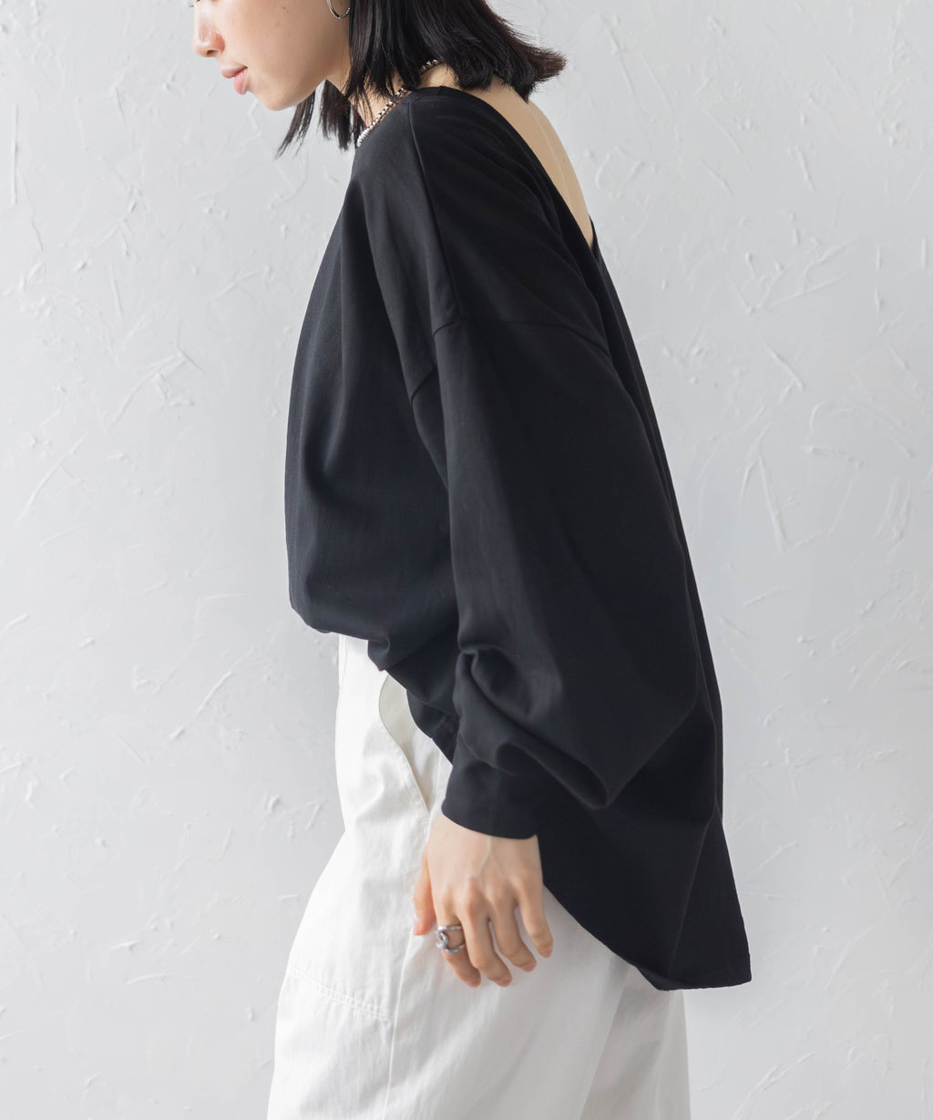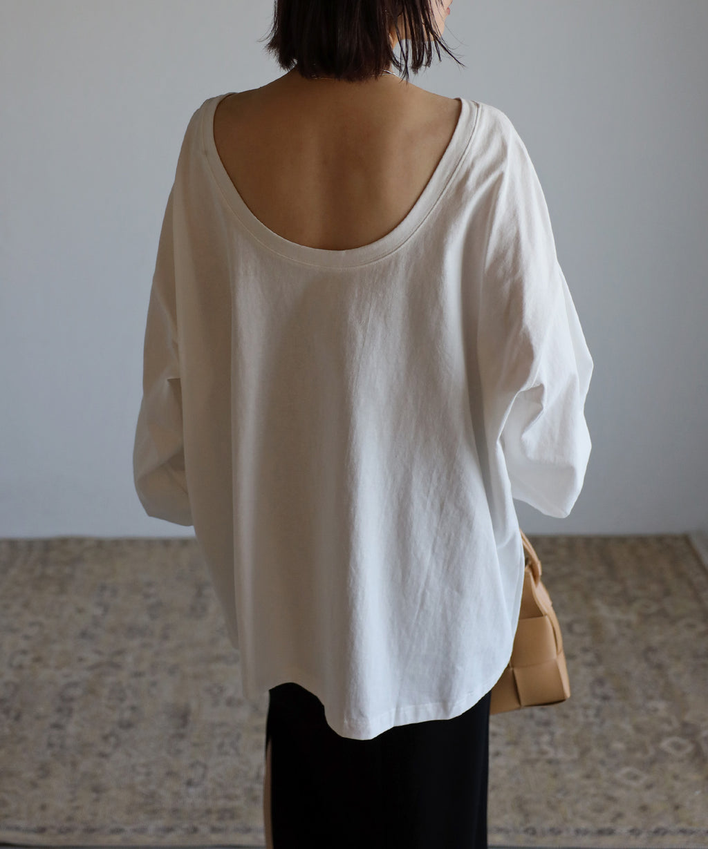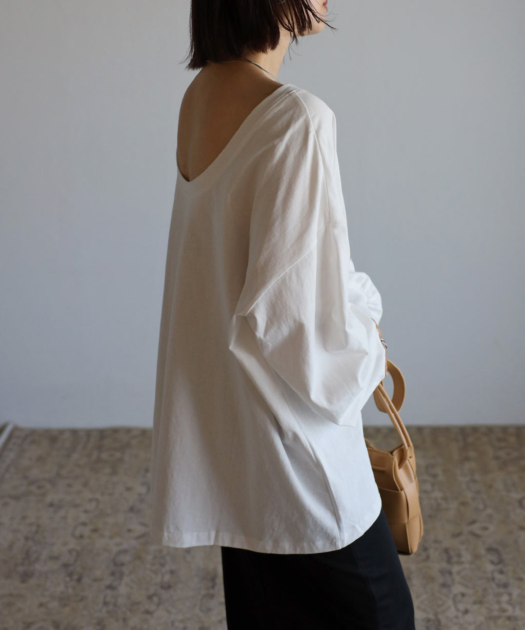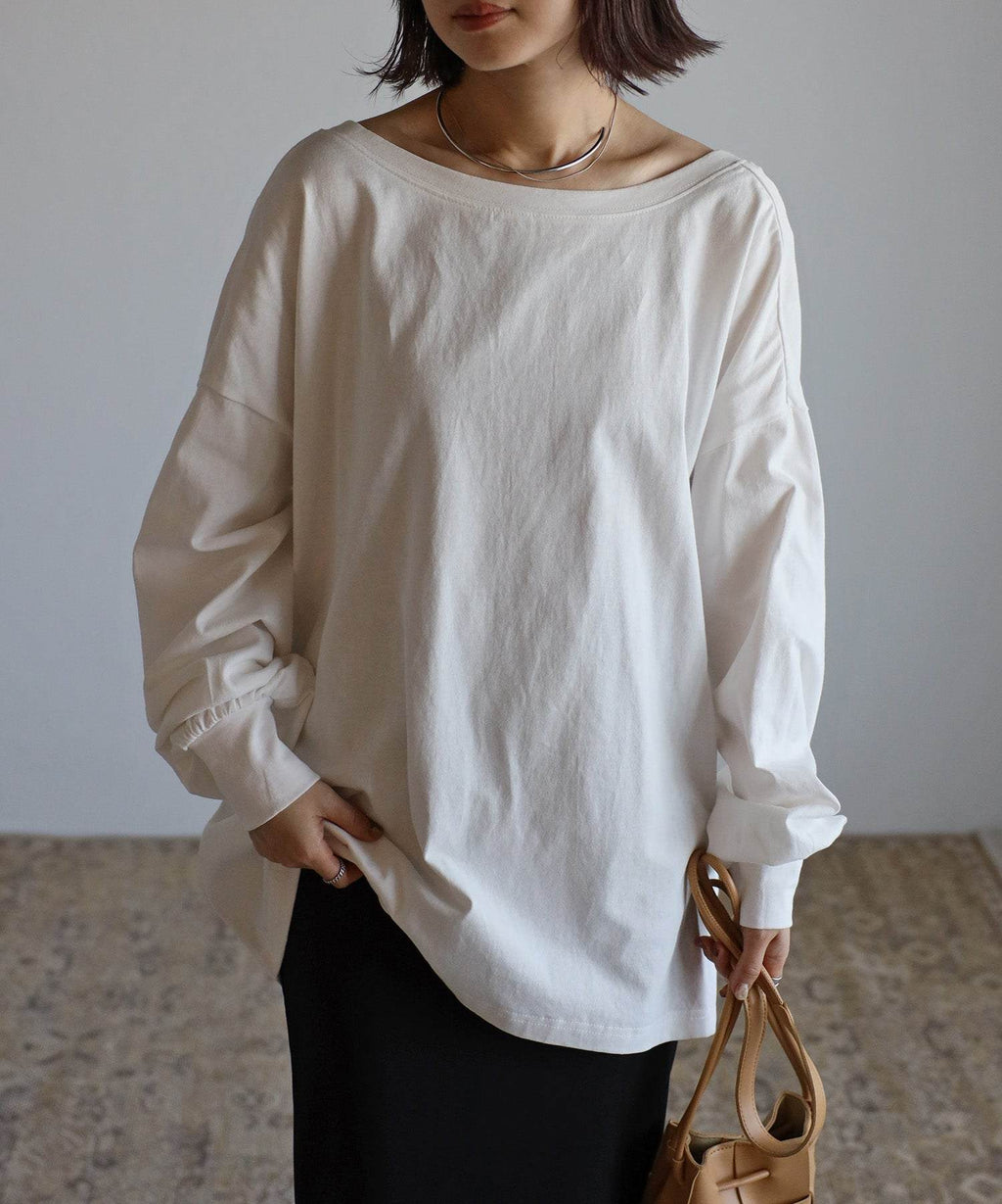 後領口大開的設計,展現出隨性又不失時尚感的休閒T恤。