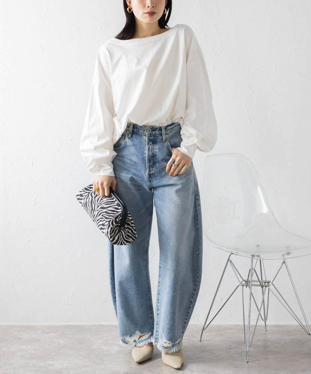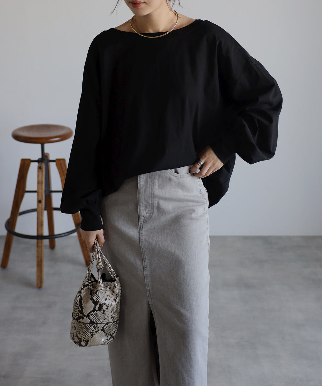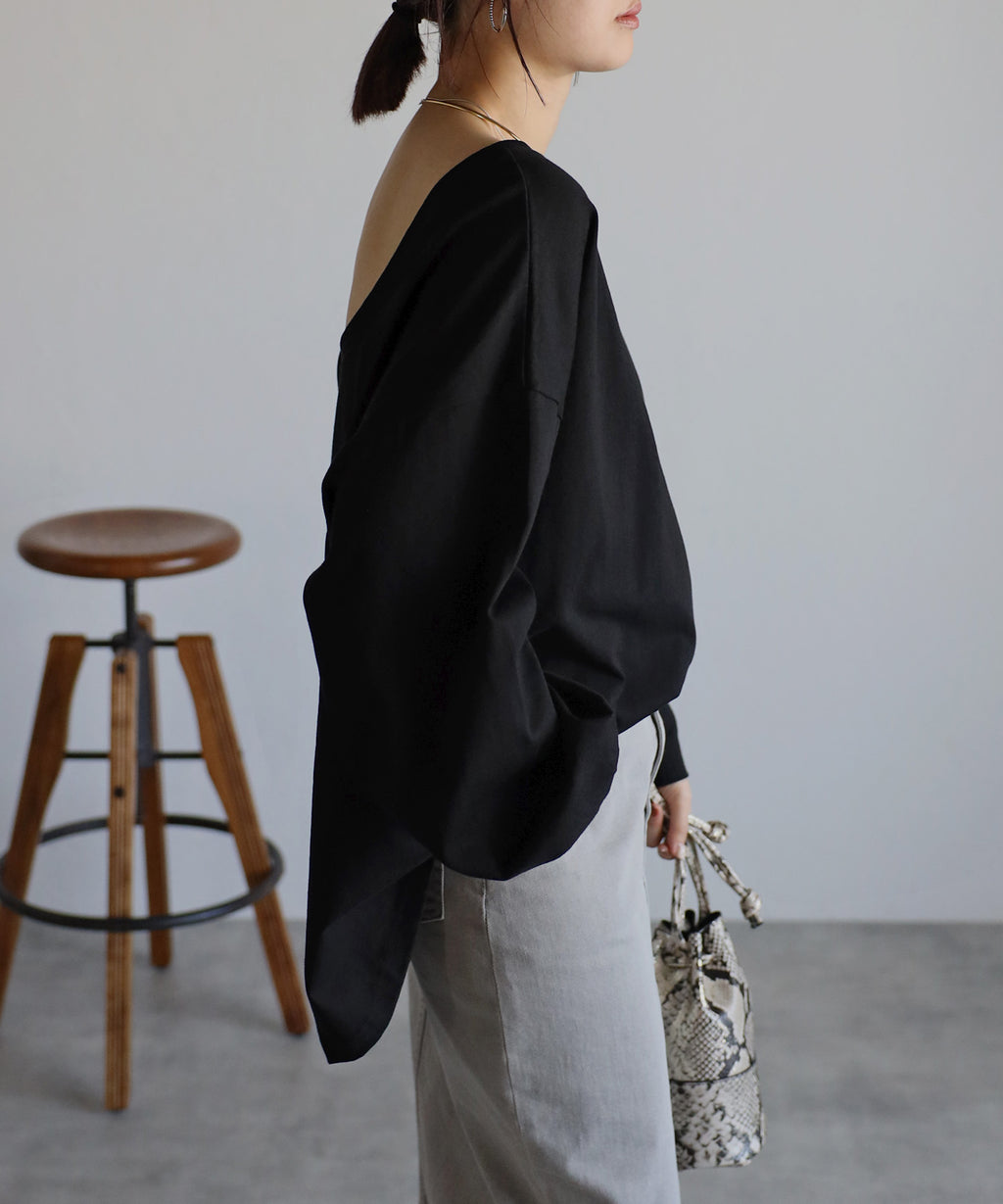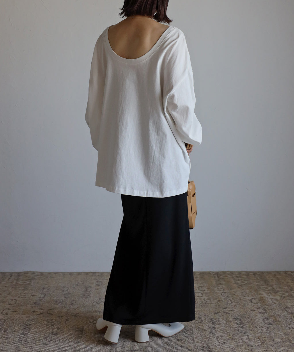 後領口大開的設計,展現出隨性又不失時尚感的休閒T恤。
