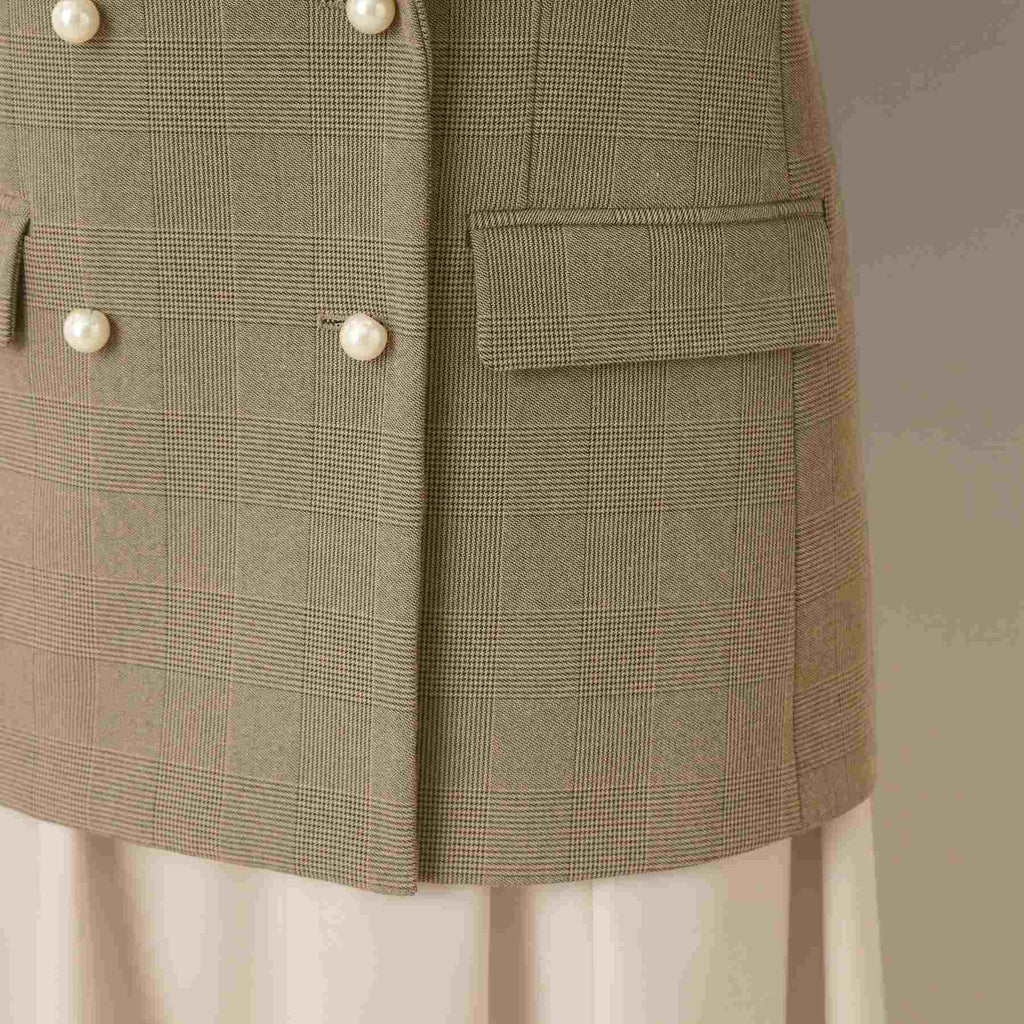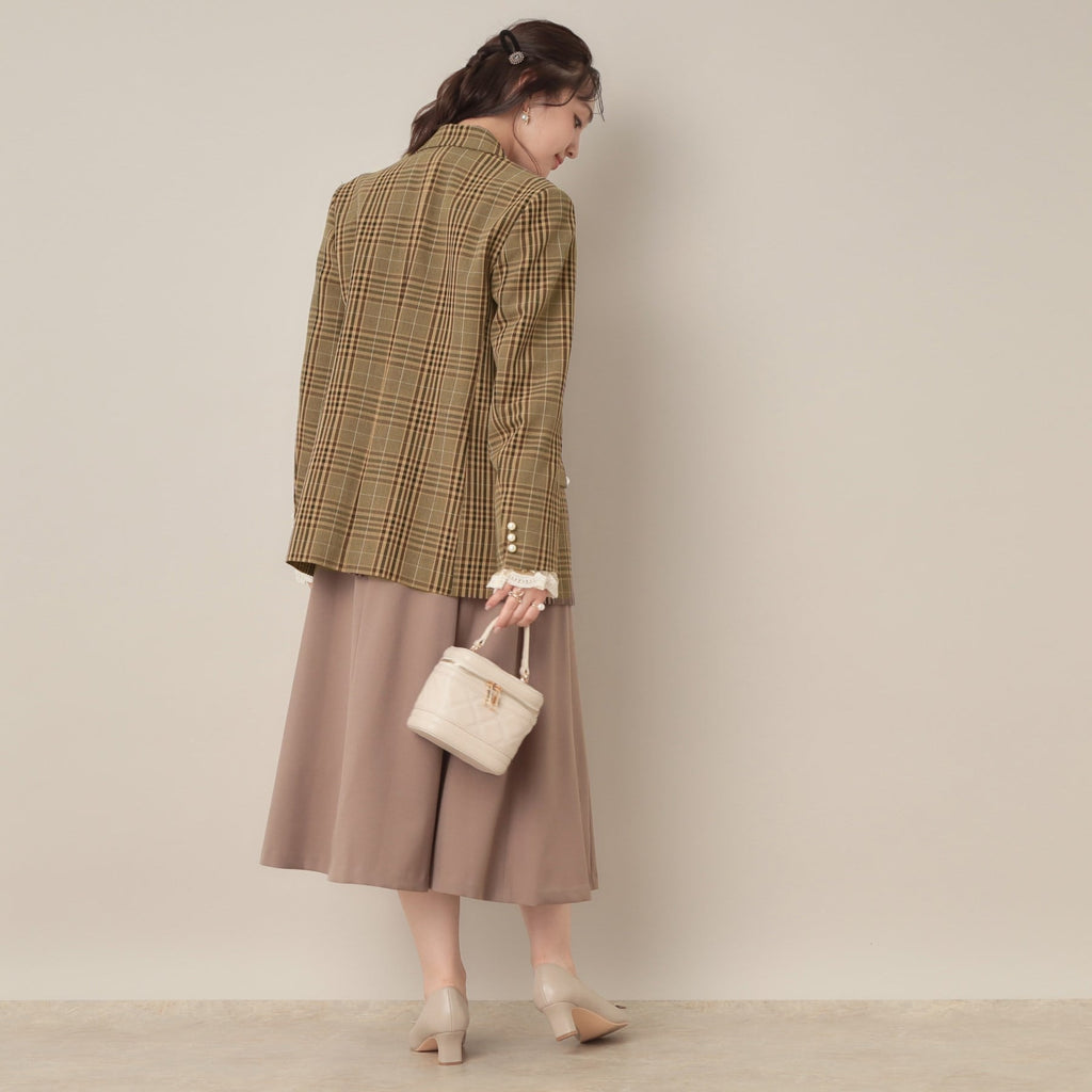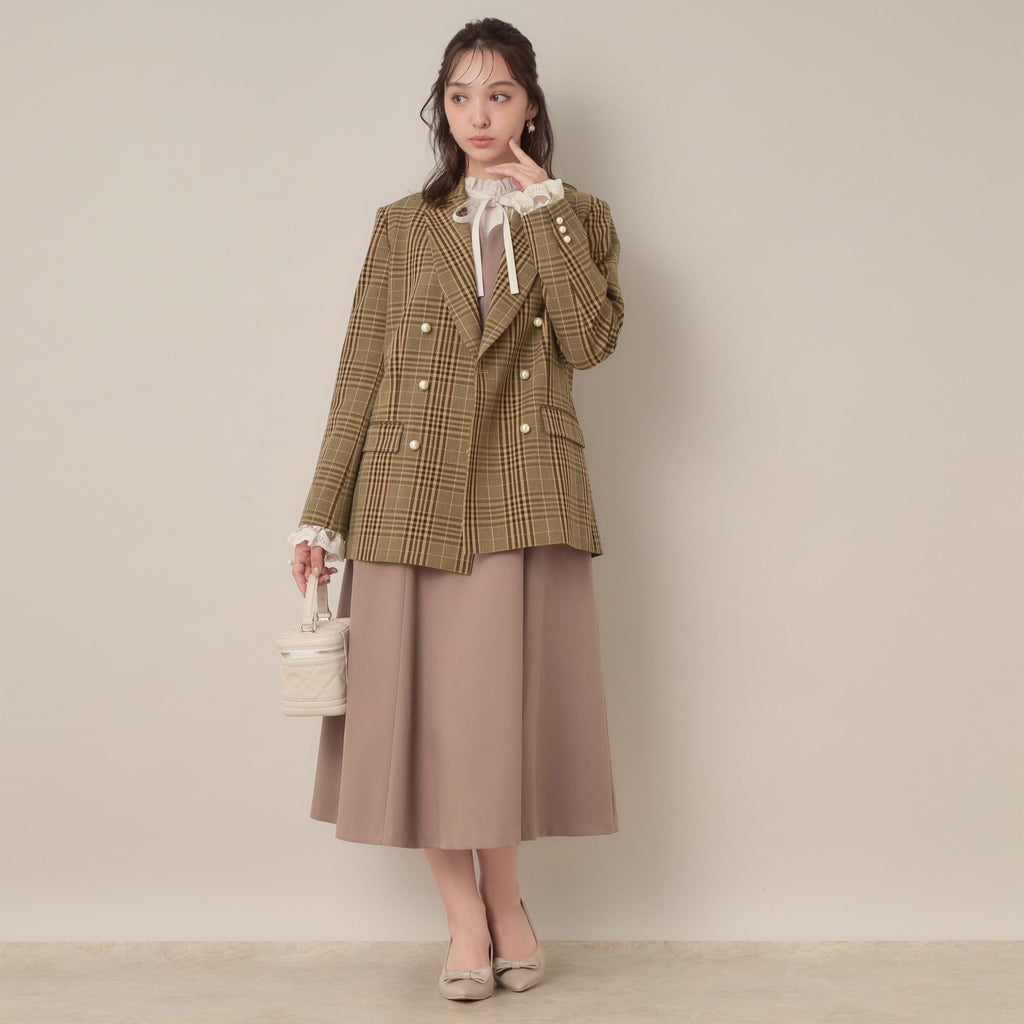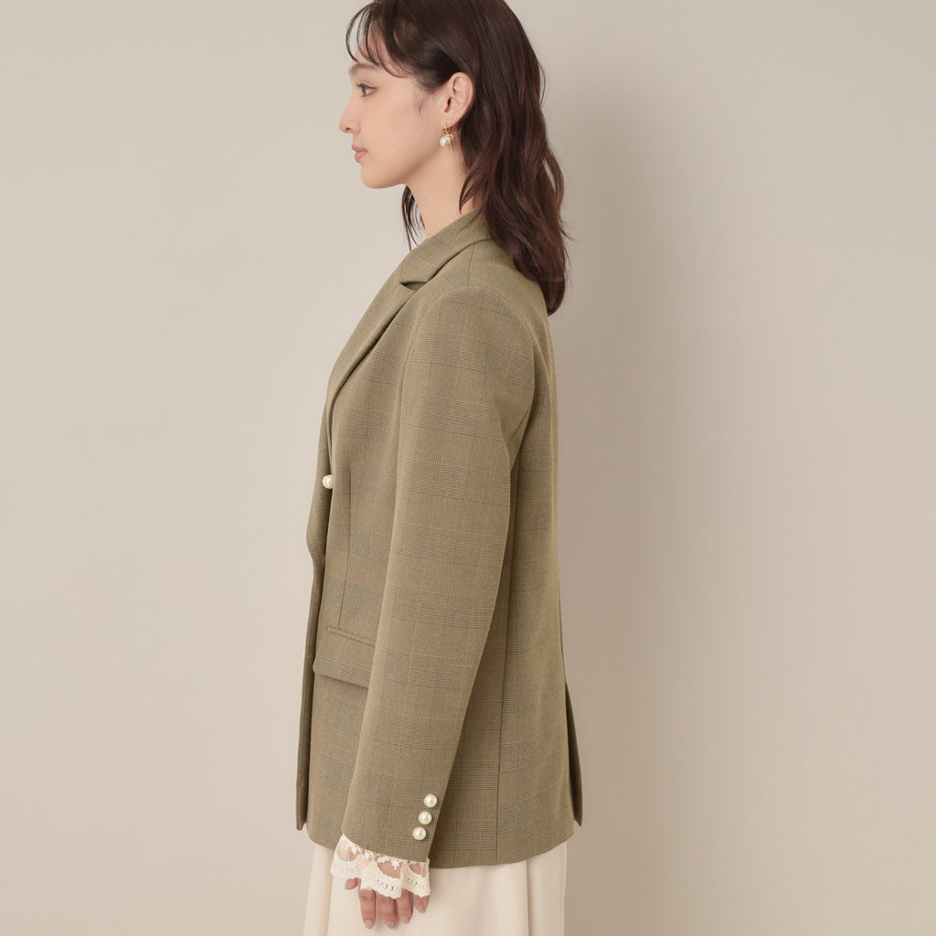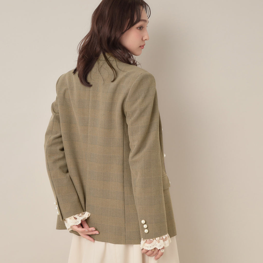 ・saori(153㎝)具有秋季氛圍的格子圖案與適合工作場合的經典藏青色可愛設計外套◎腰圍可遮蓋的安心長度,與下身搭配的衣長比例也很棒◎袖口的蕾絲也可輕鬆拆卸,適合多種場合穿著!