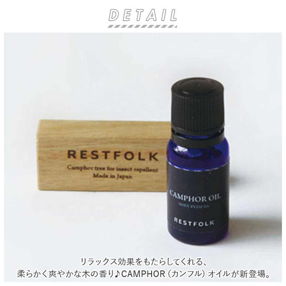 ■產品說明 - 介紹樟腦油,一種柔和清新的木質香,帶來放鬆的效果。