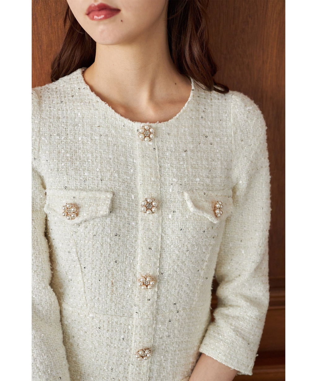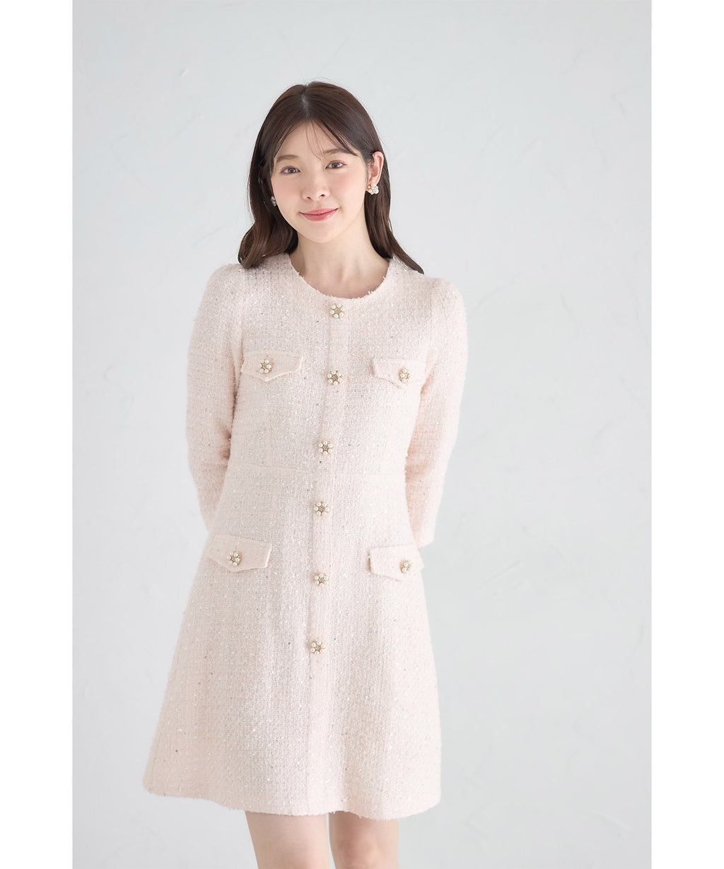 トッコクローゼット tocco closet 假口袋附珍珠珠飾鈕扣亮片呢子迷你連衣裙