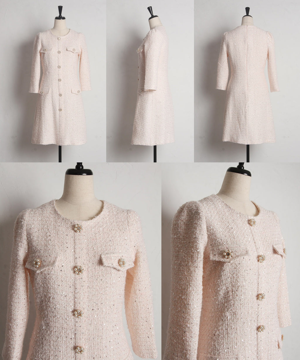 上品地閃耀著亮片的呢料,讓人感覺高貴的精緻華麗連衣裙。