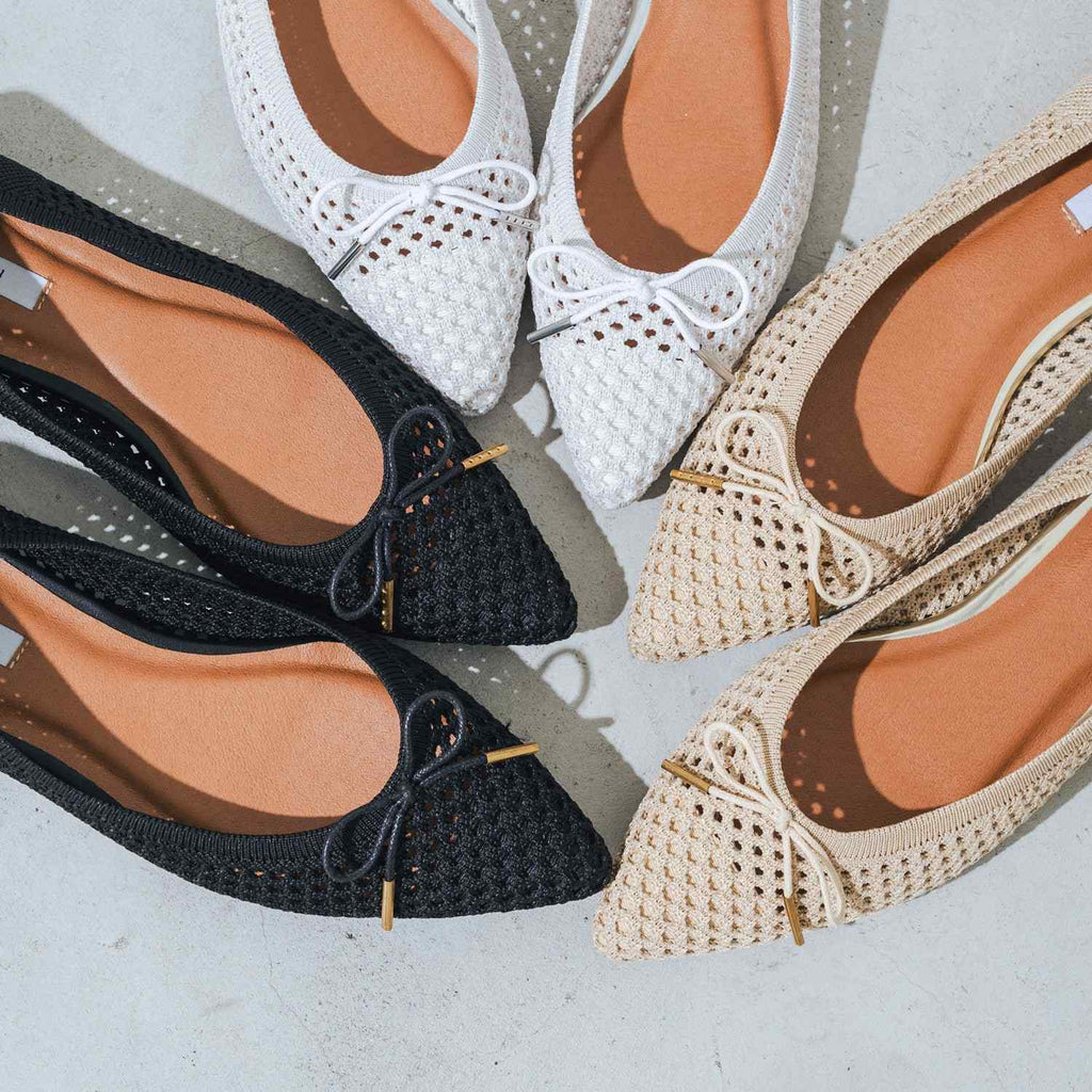 柔軟舒適的穿著感是這款針織高跟鞋的魅力所在。使用稍微大網眼的材料,為春夏的足元增添了適度的透氣感。無論是上班還是休閒都能使用的平底高跟鞋,搭配利落的鞋頭,讓雙腳看起來更加纖細。厚實柔軟的鞋墊如同包裹著足底,提供支撐,讓穿著感受無壓力。