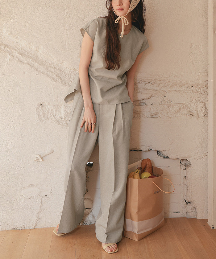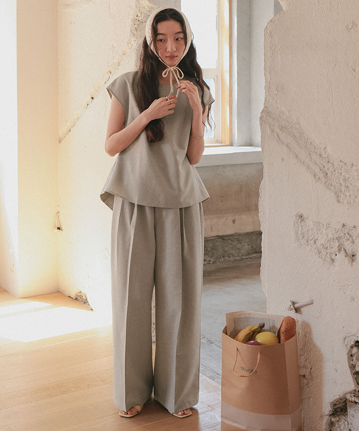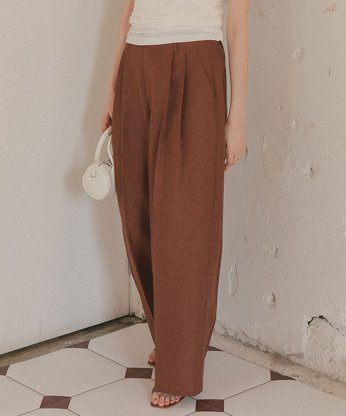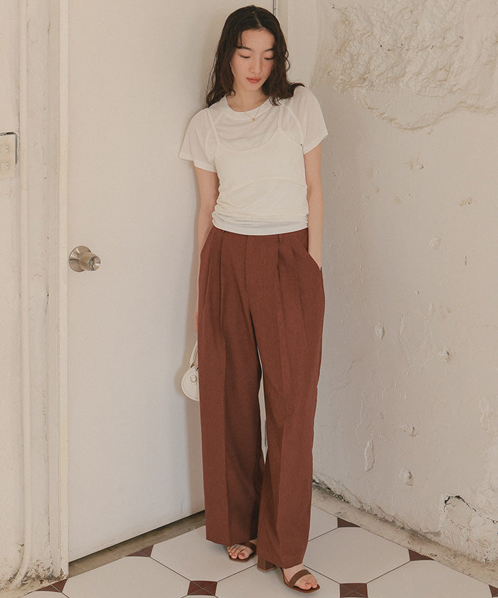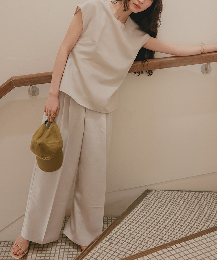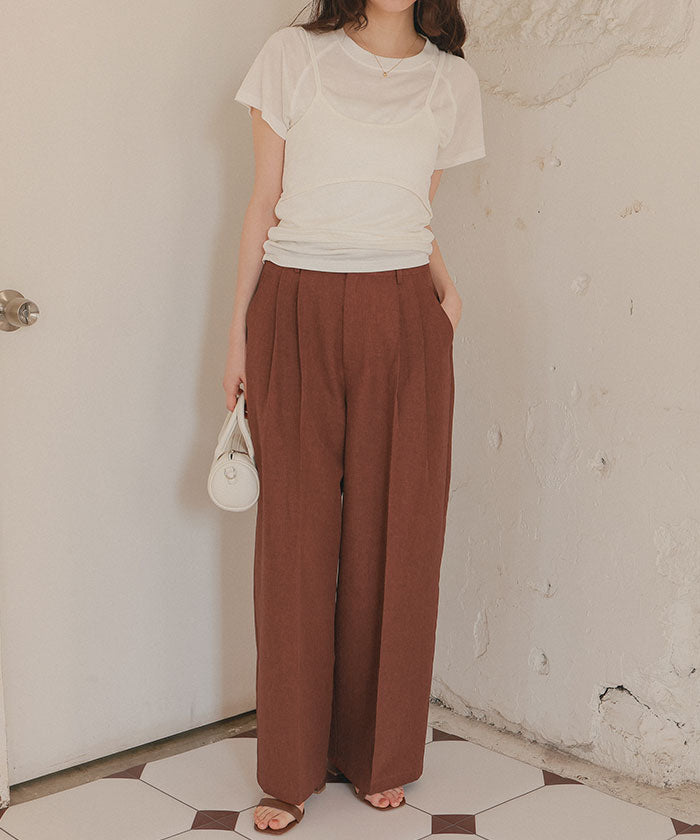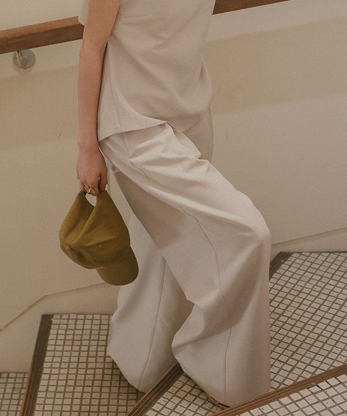 ・具有清爽麻料質感的素材,既顯得漂亮,又穿著輕鬆,是令人喜愛的寬褲。