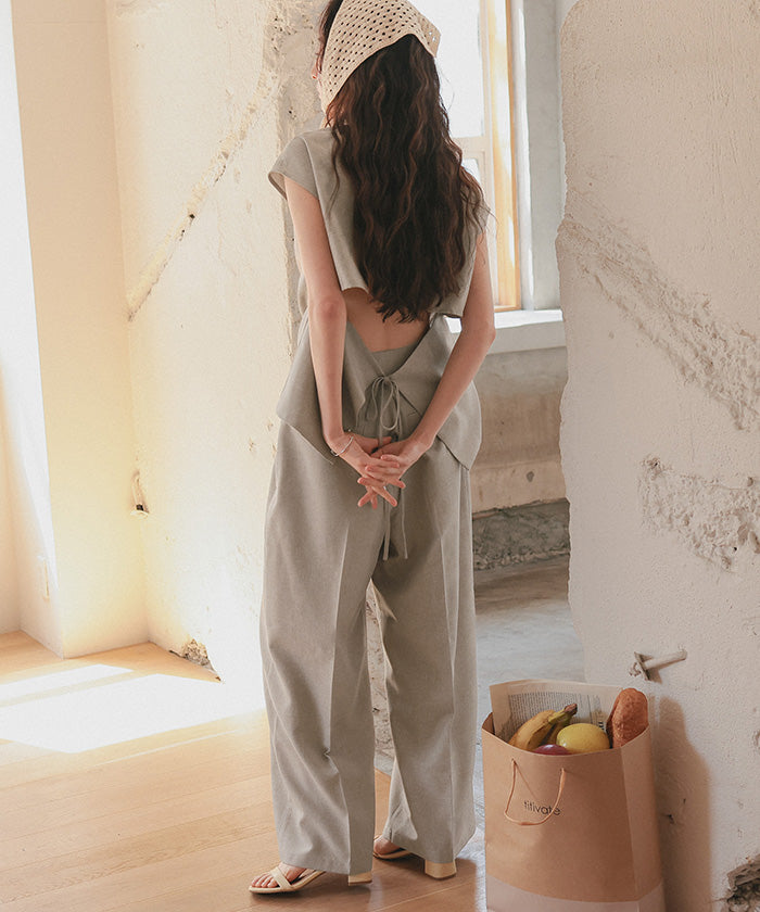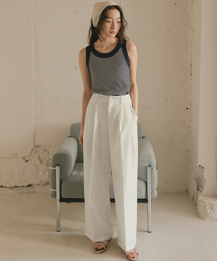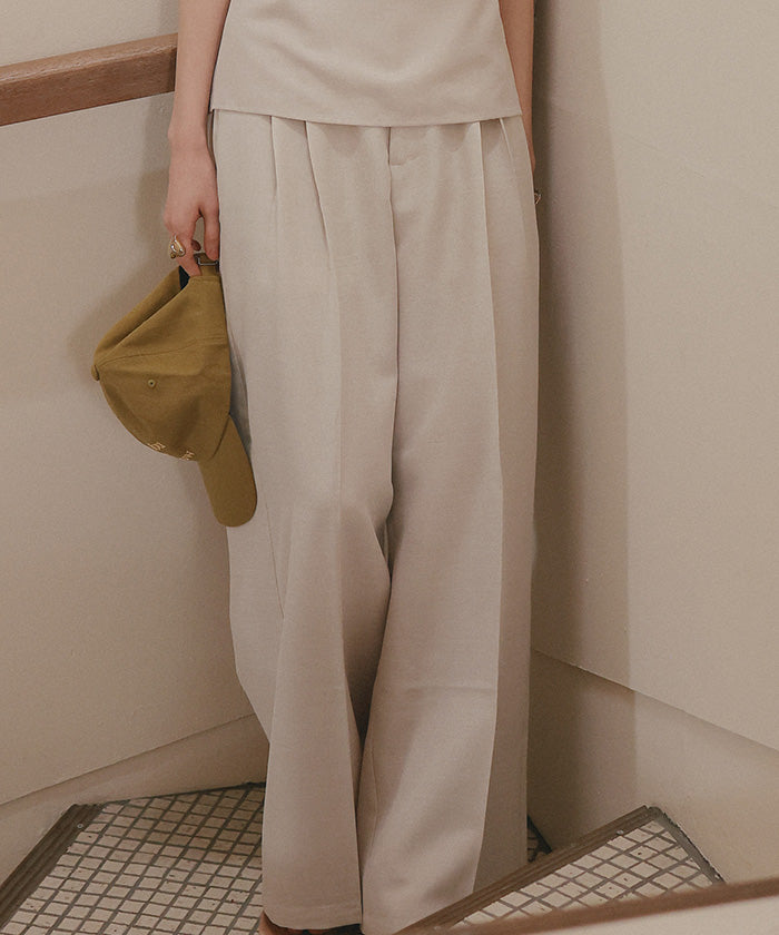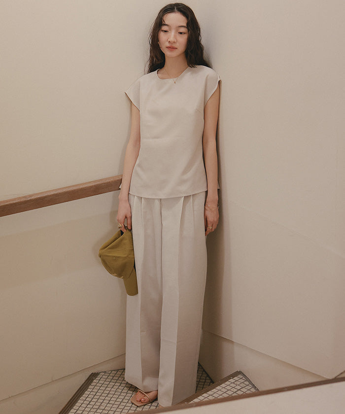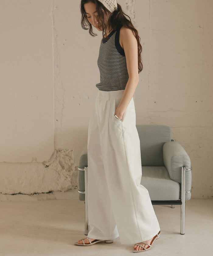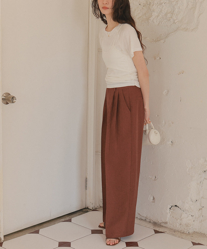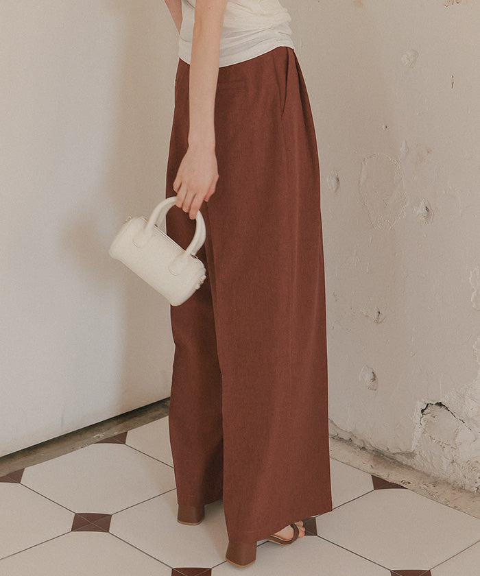 ・具有清爽麻料質感的素材,既顯得漂亮,又穿著輕鬆,是令人喜愛的寬褲。