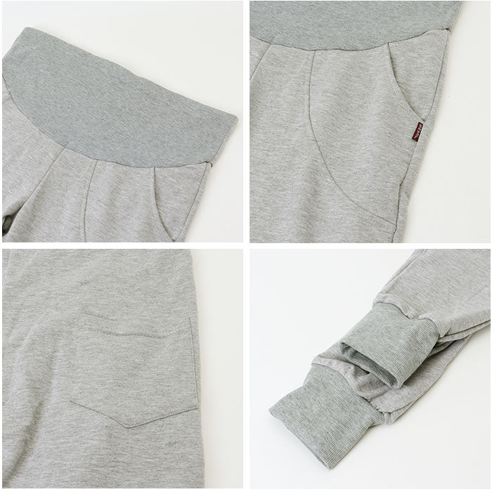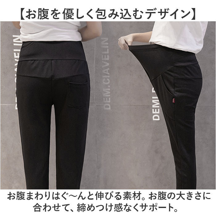 【輕盈且無壓力的穿著感】彈性材料,動作不受阻礙的剪裁!「孕婦運動褲」。【溫柔包覆腹部的設計】腹部周圍的材料可以大幅延展。根據腹部的大小,無束縛感地提供支撐。【尺寸調整OK 自我尺寸合身】配有扣眼的彈性腰帶,可以廣泛調整尺寸。從產前到產後都能長期使用的單品。【對肌膚友好,長季節舒適】不易悶熱,且具有保暖性的棉混紡材料。不會刺癢,布料厚度剛好。【可放入手機等物品的口袋】左右和後面設有口袋。方便放置手機或薄手帕。【適合各種場合的簡約褲子】褲腳設計舒適合身的羅紋。適合在家時間、外出或輕度運動時穿著。【與搭配相融的基本色】與任何上衣都容易搭配,具有良好的穿搭能力的純色。也可以準備不同顏色作為替換!