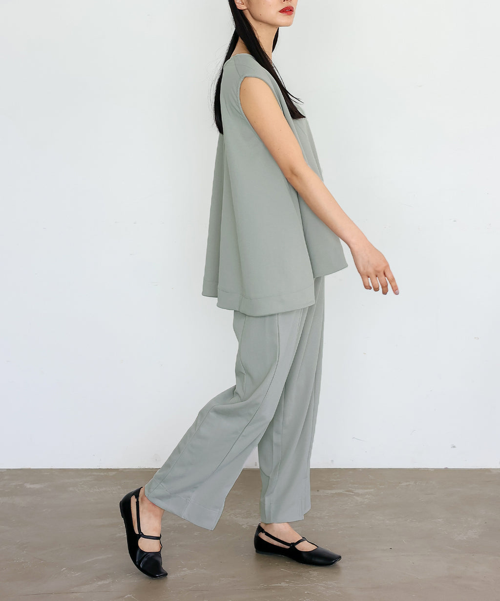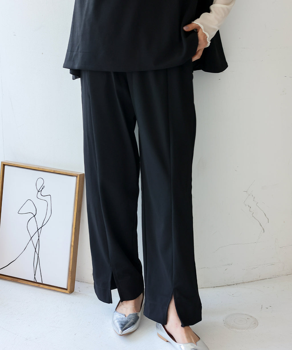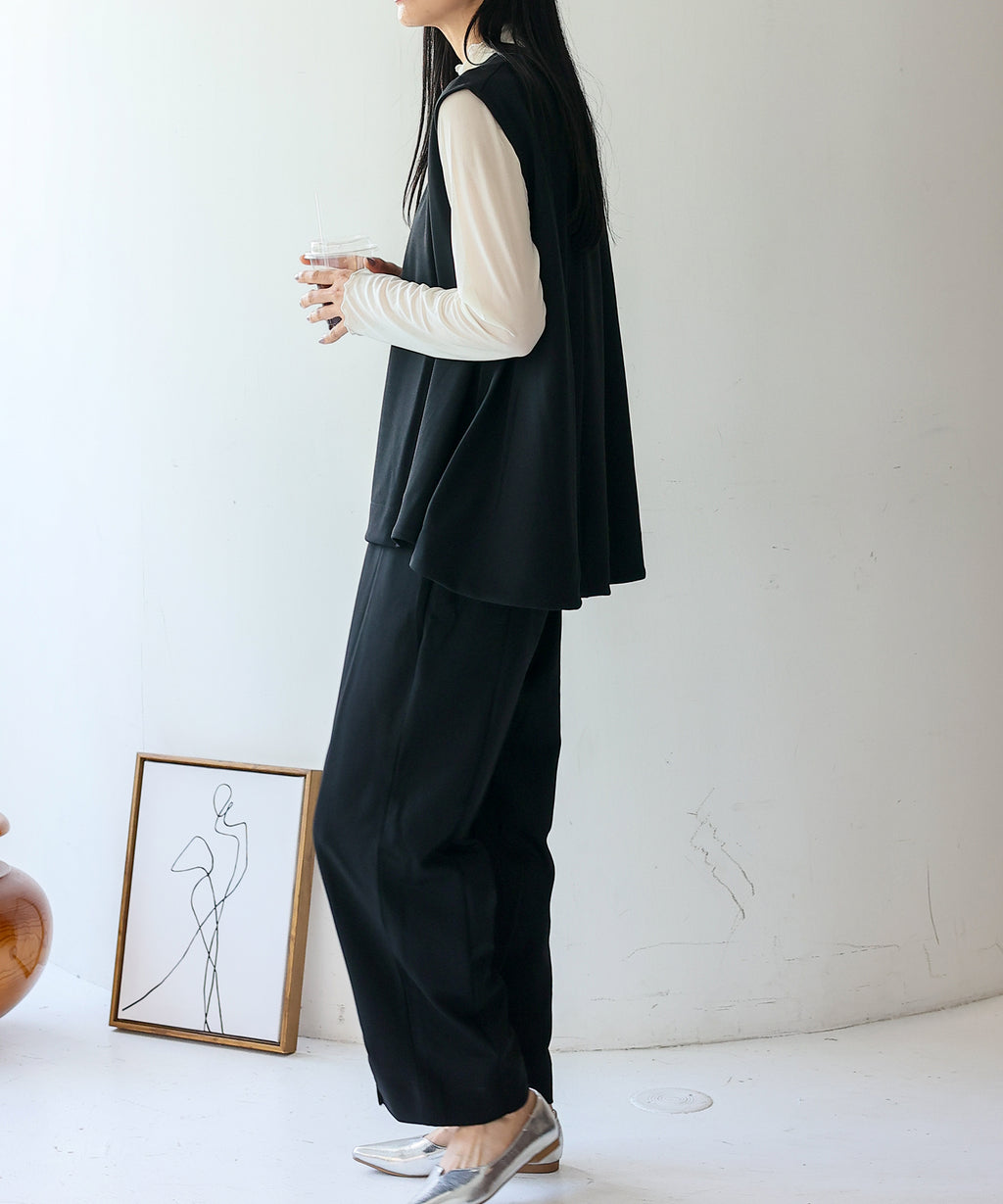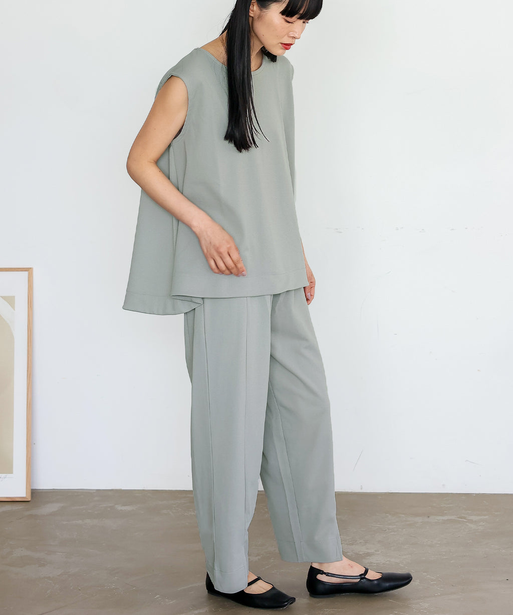 時短時尚的實現!無袖上衣×開衩褲的套裝。