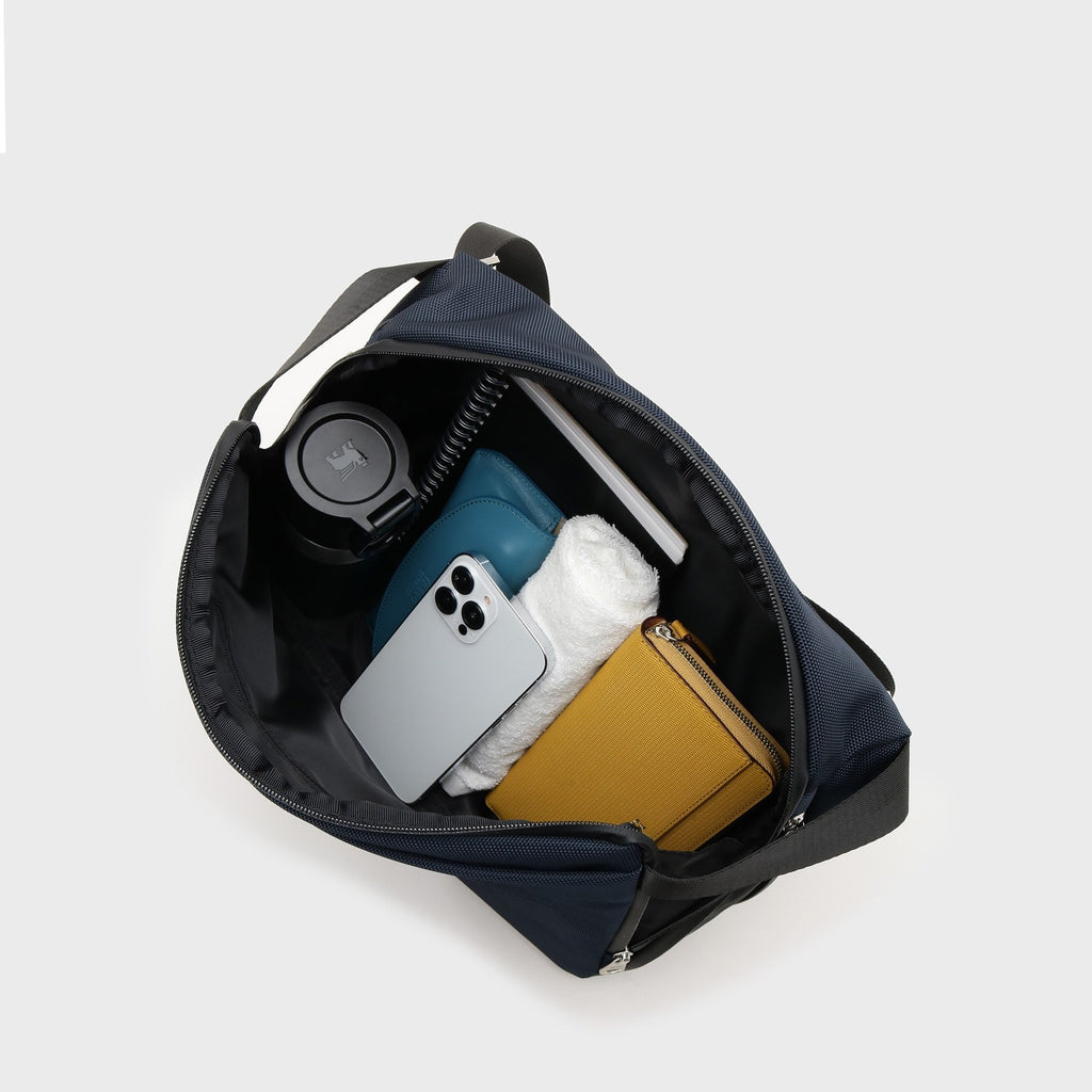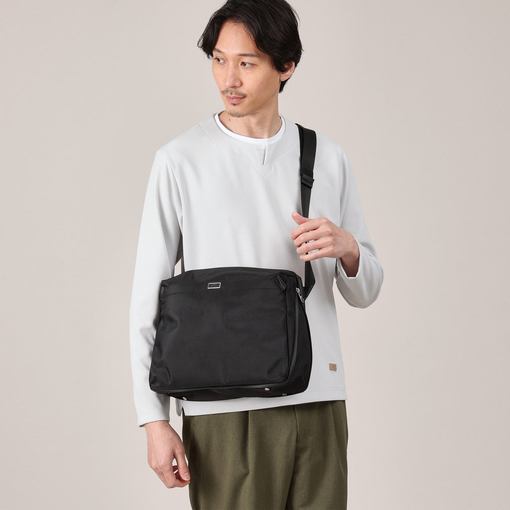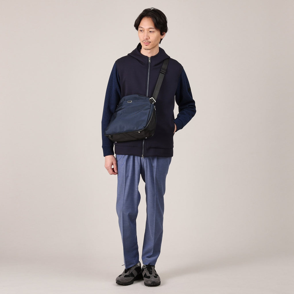 肩帶的長度可以根據沒有側邊的狀態從斜背包的長度調整到適合腰部位置的肩背包使用方式。