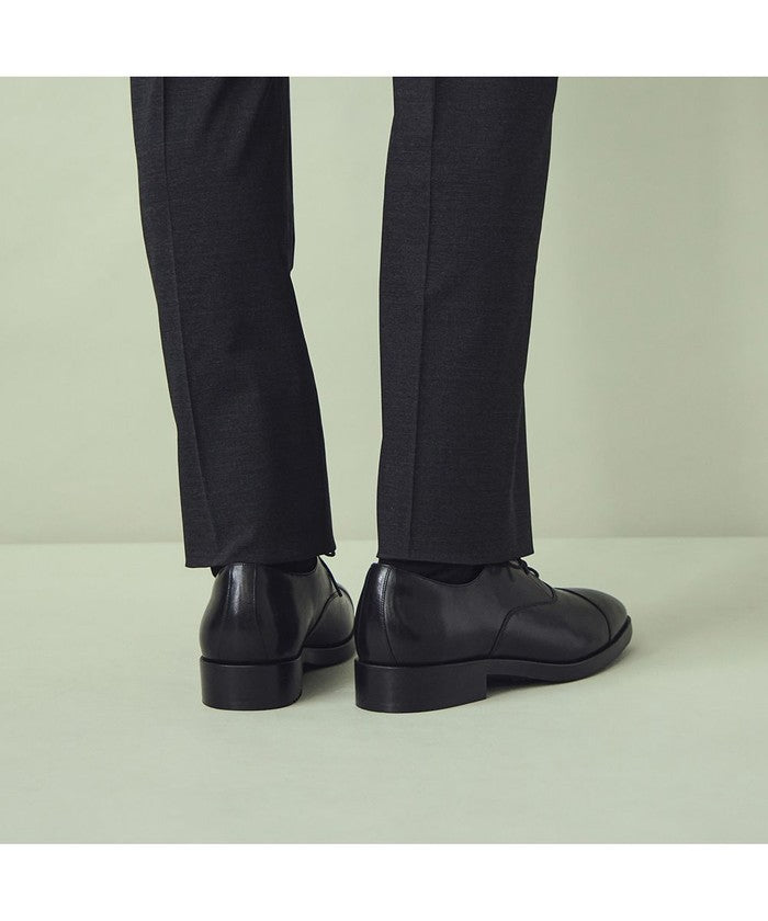 洗練的設計融入運動科技,適應活躍的商務場景的高性能系列「GEL-BIZ」。這是一款具有正宗印象的內羽根直尖鞋。外底採用對角線的設計。內側和外側的條紋(溝)的粗細和寬度有所變化,考慮到行走軌跡(大腳趾側因易磨損而增加接地面積,小腳趾側則在較小的力量下更易彎曲),同時表現出不斷向上挑戰的姿態。通過將外底的部件細分,提高了輕量性和彎曲性,同時考慮到設計性。中足部的硬E.V.A.減少了腳的扭曲,支持穩定的行走。鞋跟部搭載fuzeGEL,提高了衝擊緩衝性。鞋面採用質感上乘的天然皮革(牛皮)。黑色充分展現了皮革的光澤感,而咖啡色則呈現出富有氛圍的古董仕上。通過用橡膠覆蓋鞋底外側並進行染料處理,展現出優雅的光澤感,表現出品格。鞋頭延展且清爽的圓形輪廓。造型的通用性高,能在日常的各種場景中發揮作用。3E圓形鞋楦。