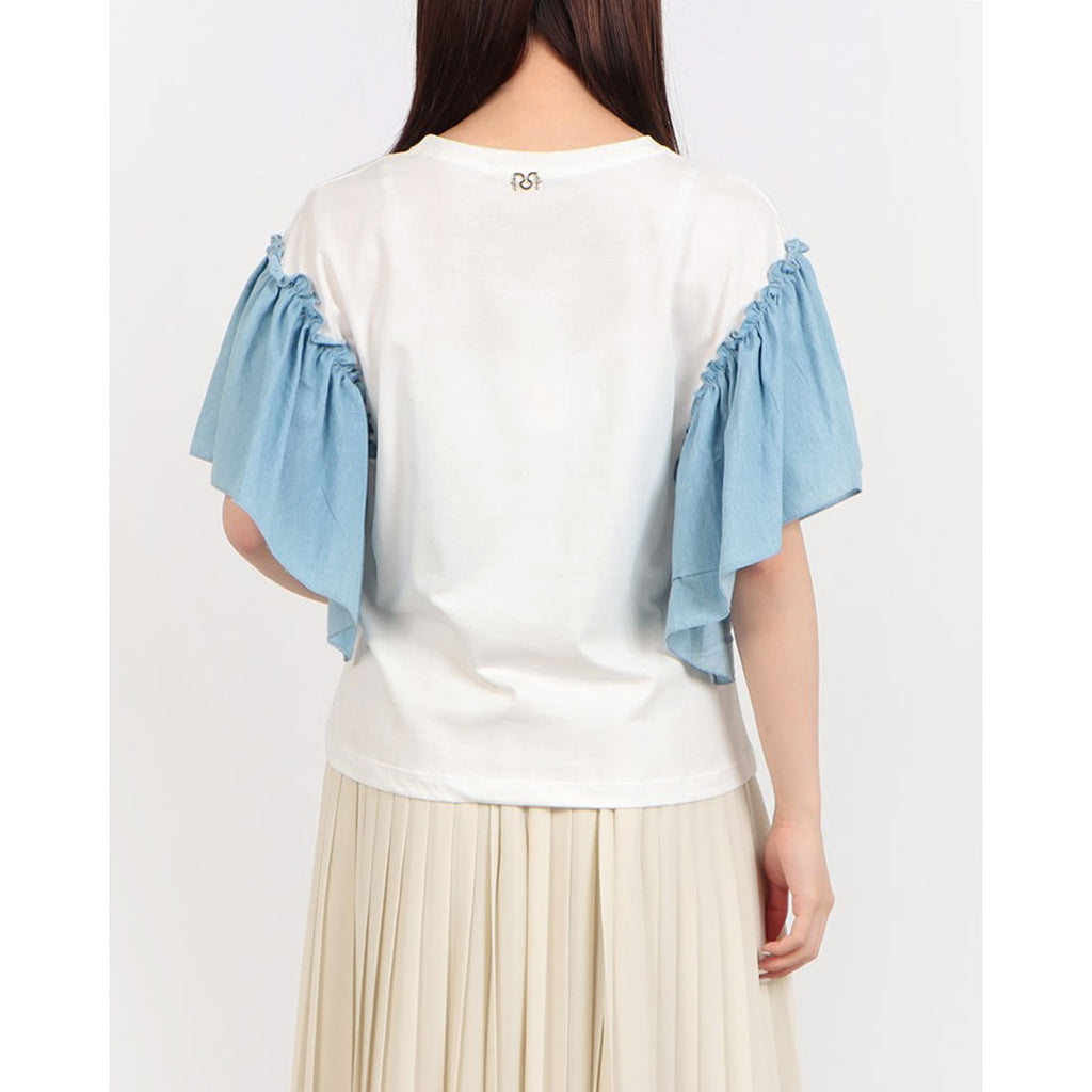 以棉質為基底的本體,袖子上有著皺褶的異材質切換作為點綴。