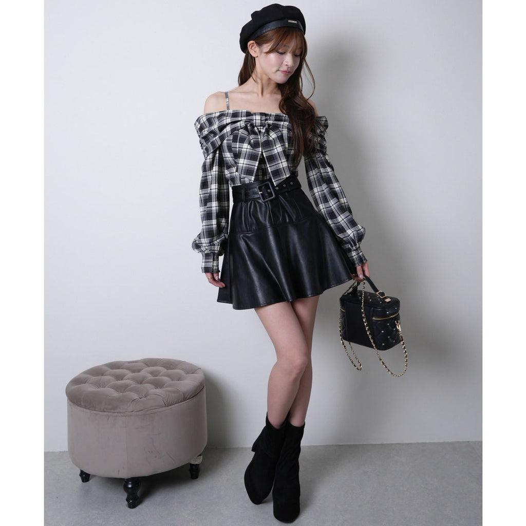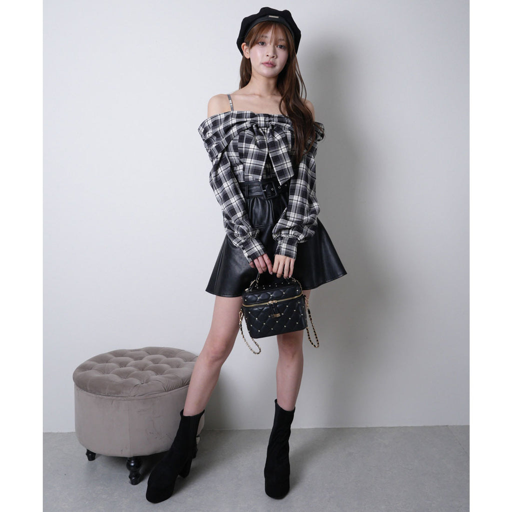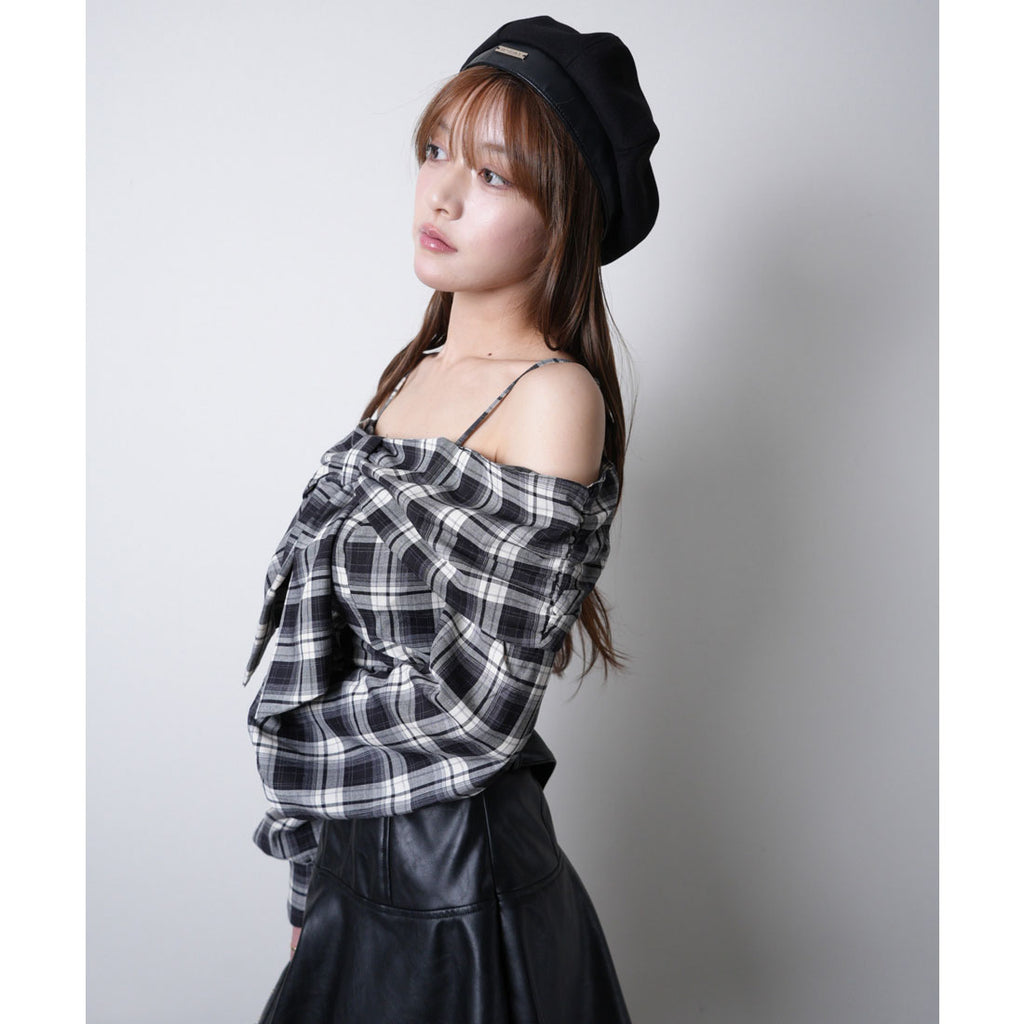 ・黑色具有顯色和收緊效果的萬用格紋,易於搭配。