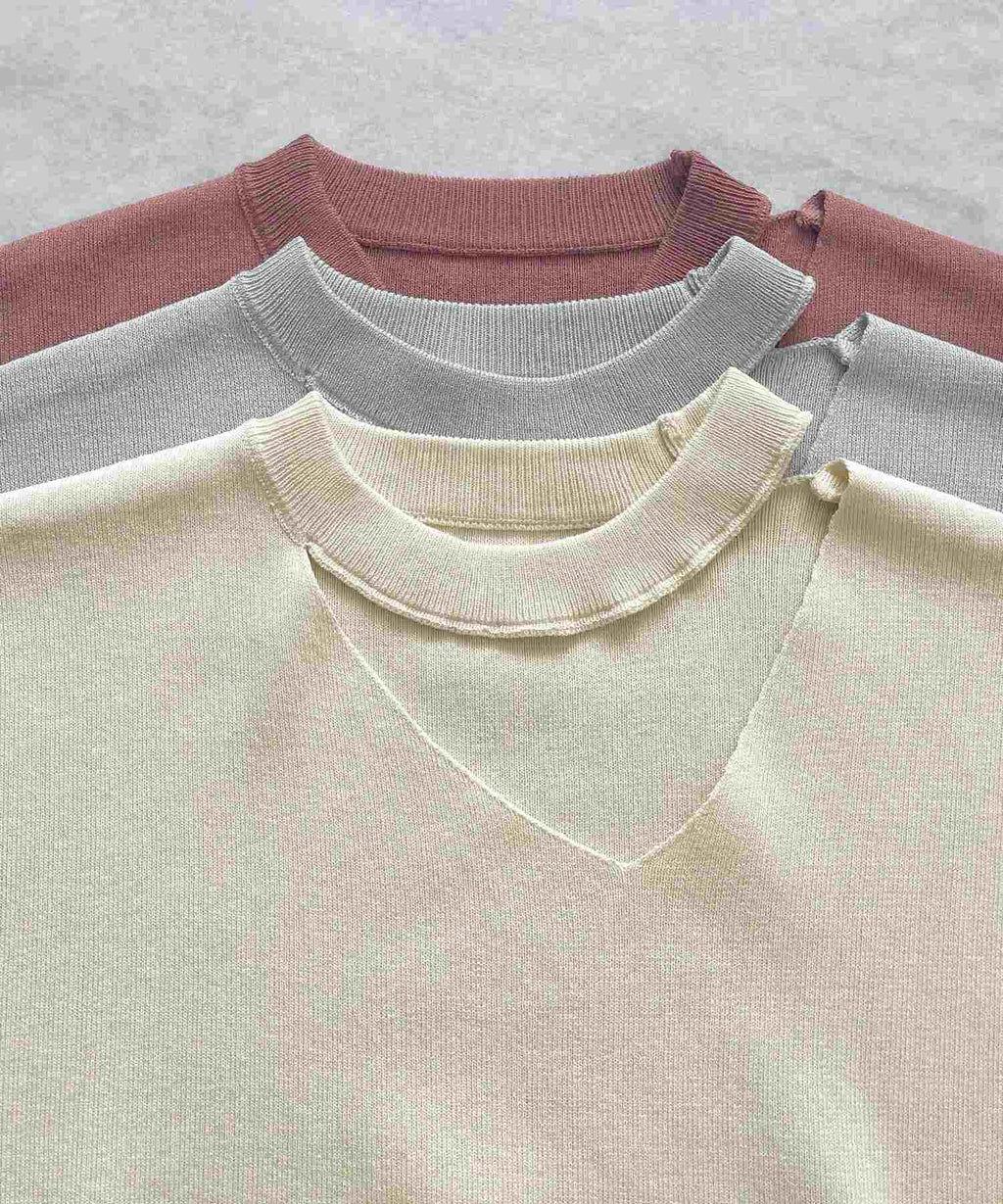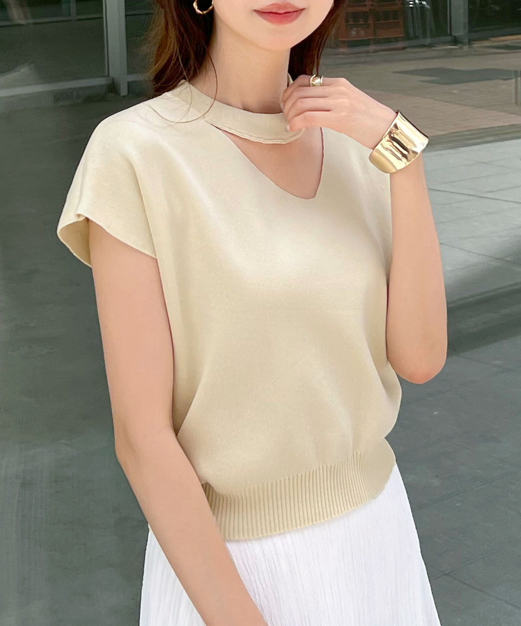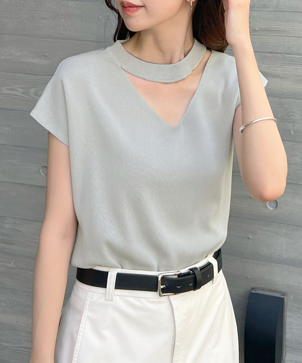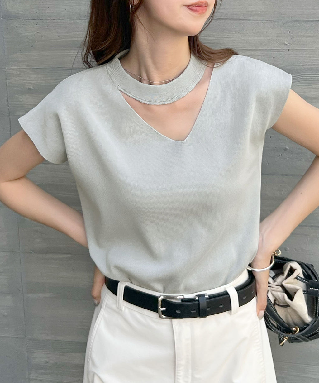 【アシメな袖とチョーカー風のネックデザインが今っぽいサマーニットトップスが新登場!】
