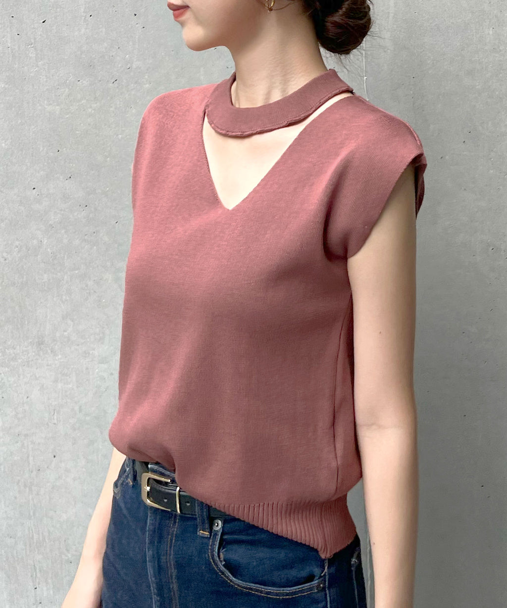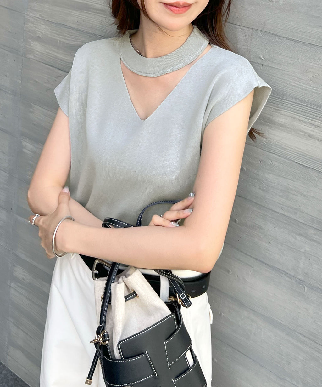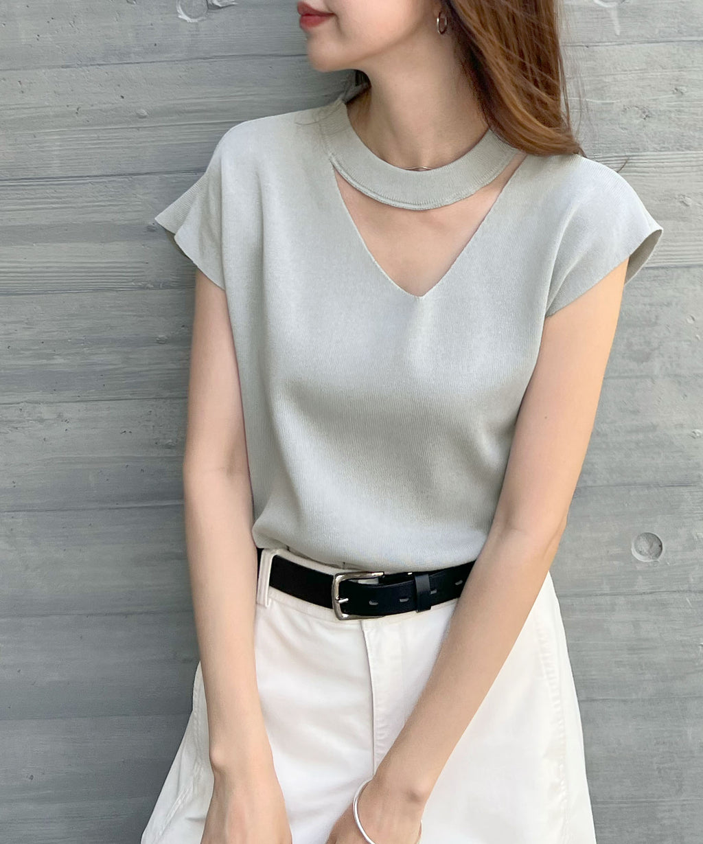 【アシメな袖とチョーカー風のネックデザインが今っぽいサマーニットトップスが新登場!】