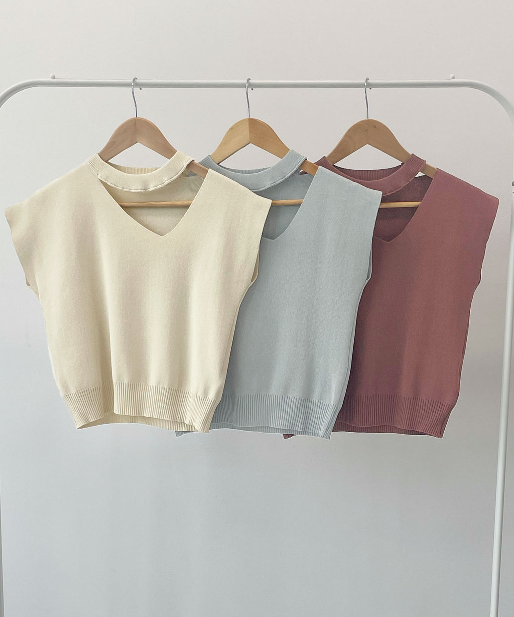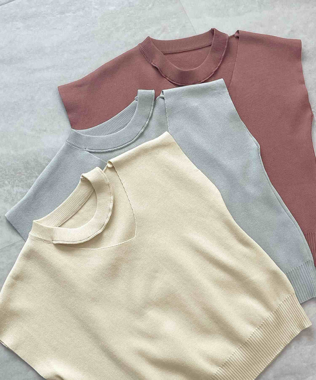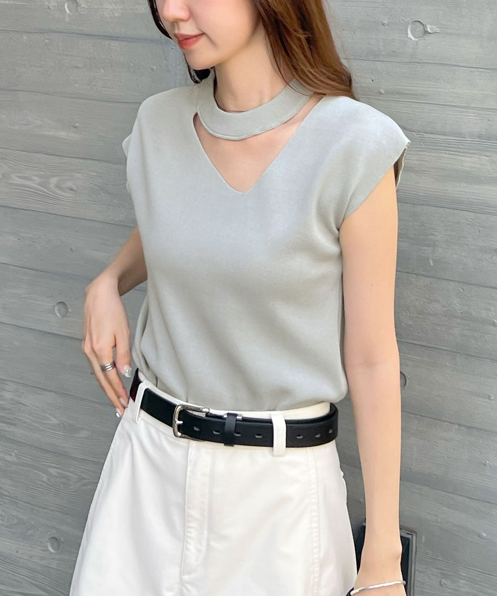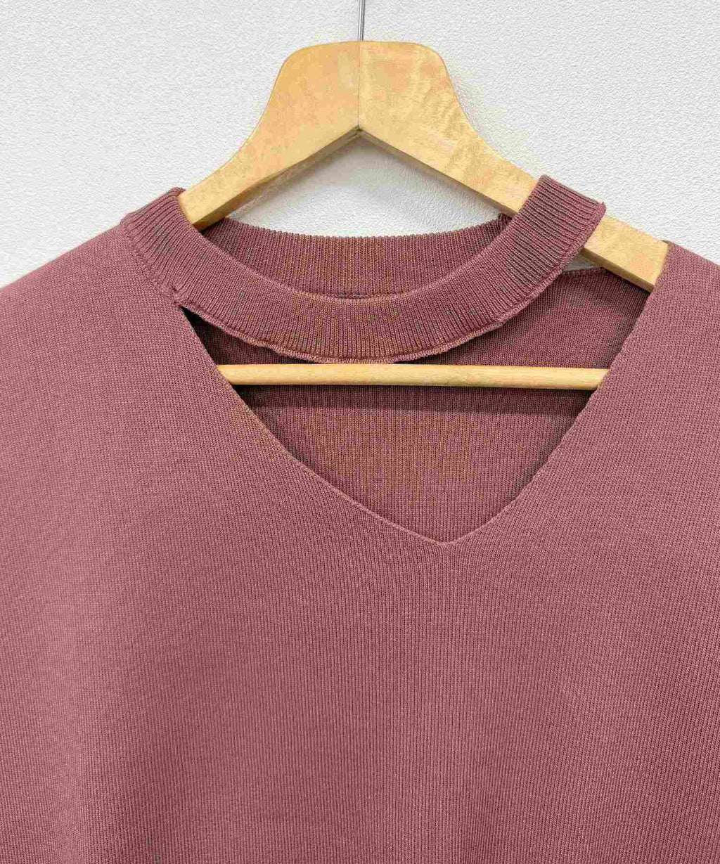 【アシメな袖とチョーカー風のネックデザインが今っぽいサマーニットトップスが新登場!】