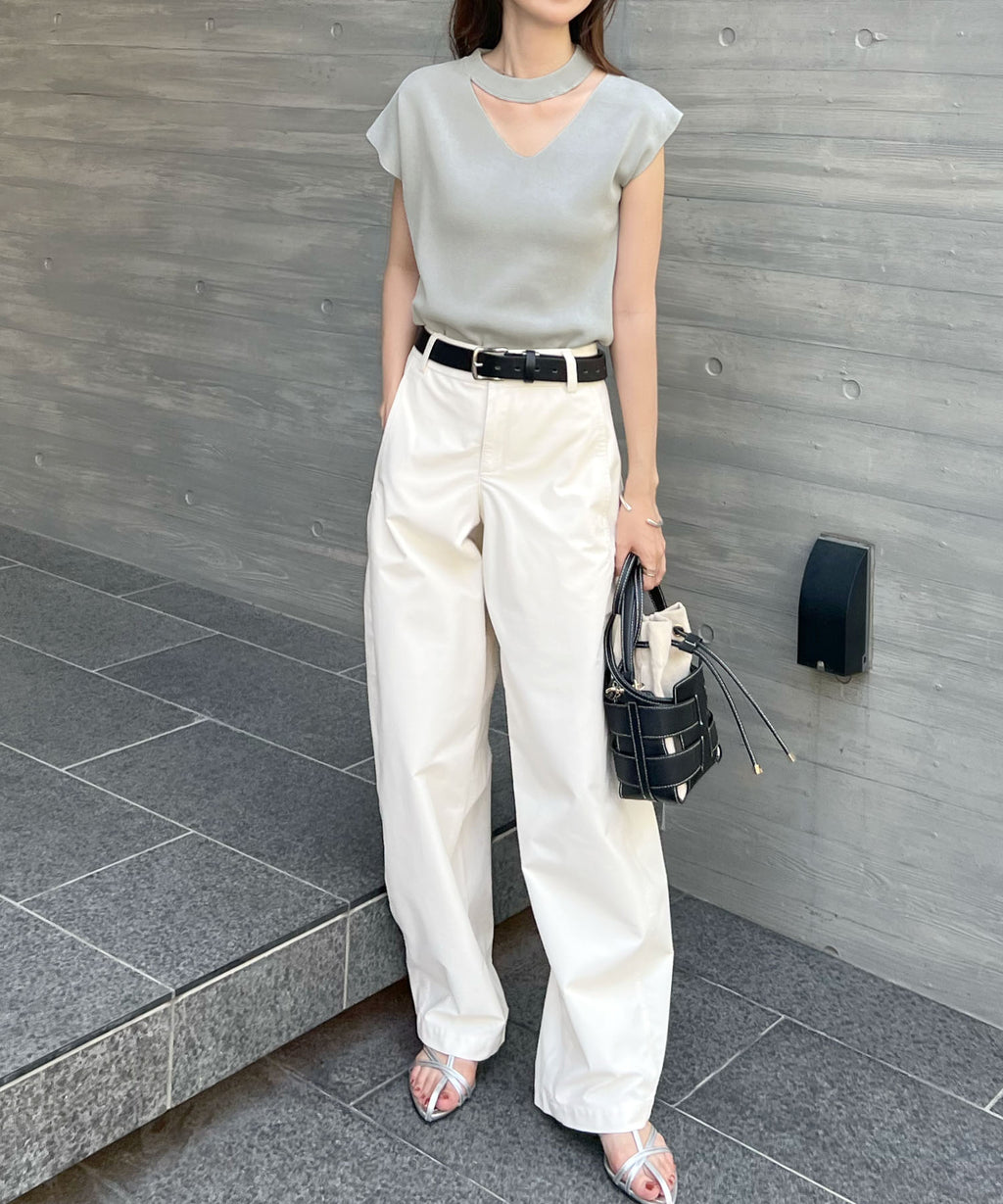 スラックスパンツやワイドパンツ、デニムと合わせるのがおすすめ