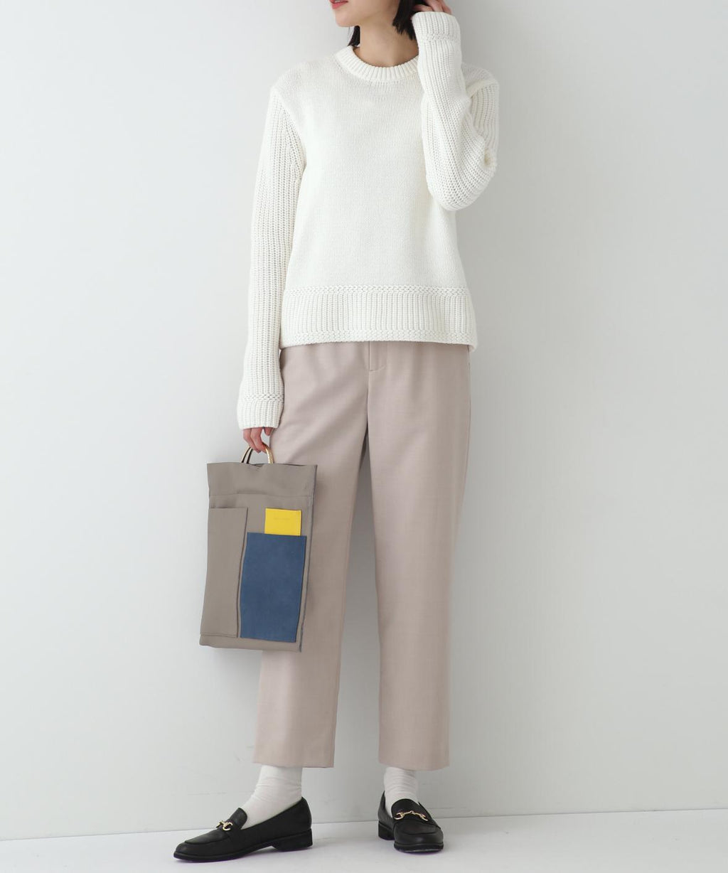 具有長版外套或針織衫都適合搭配的輪廓,任何上衣都容易搭配的高通用性褲子。綠色也可以作為造型的點綴。