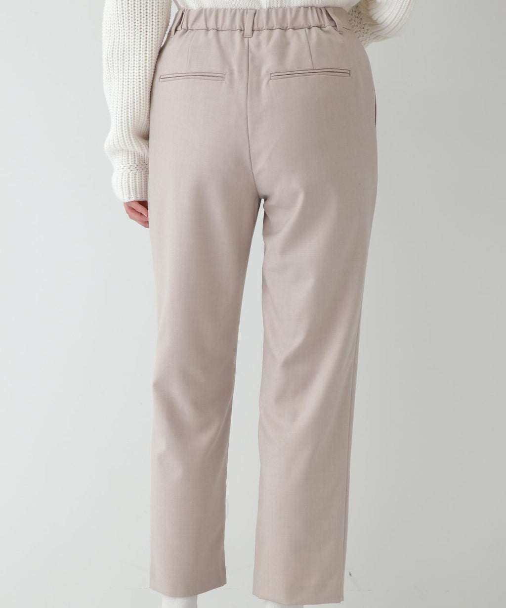 口袋口處的翻蓋式縫線是亮點。後腰橡膠設計,方便穿脫,並且具有縱橫彈性回彈的2way彈性,穿著舒適,是多用途的百搭褲子。
