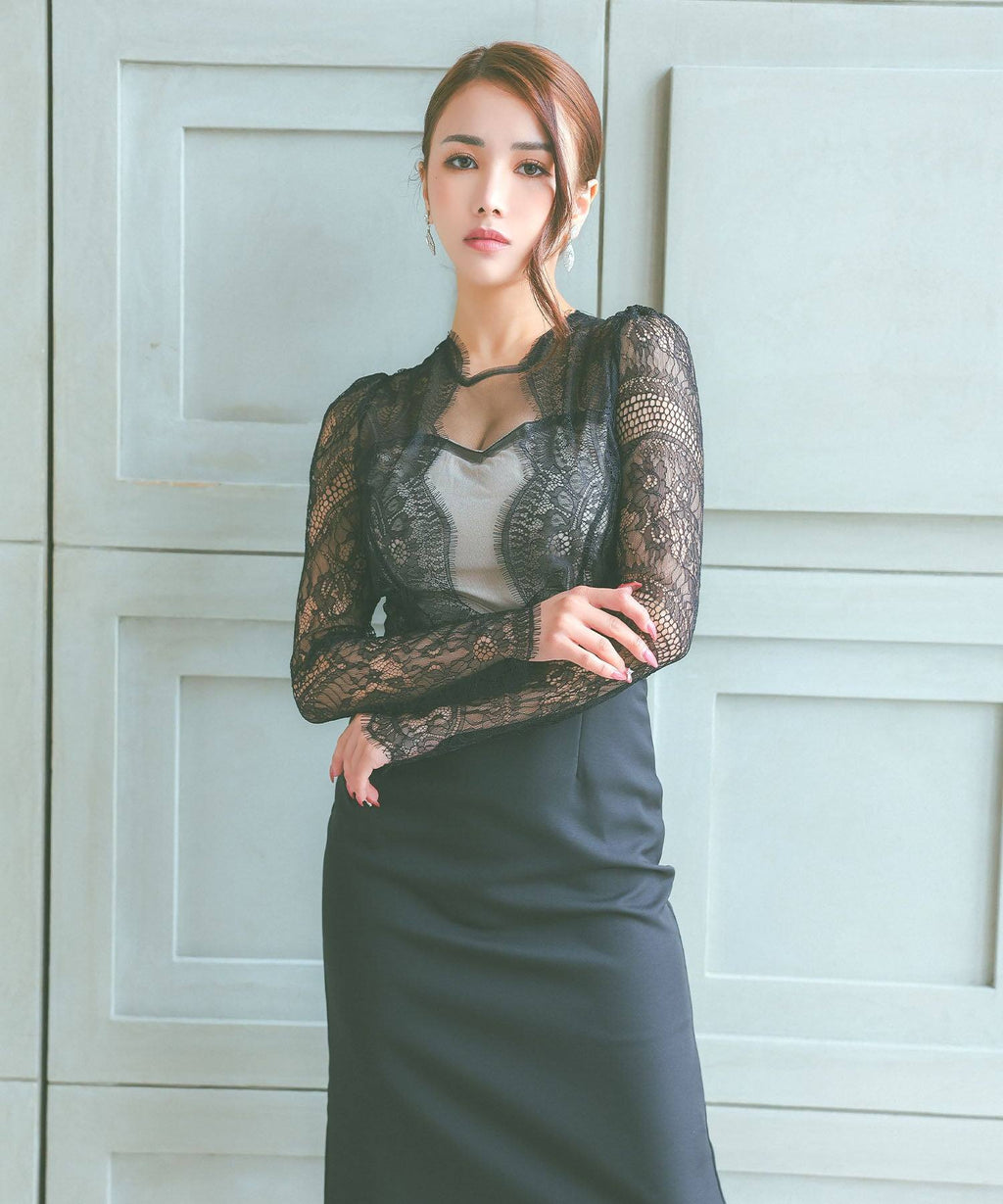 高級感的扇貝蕾絲,展現女性魅力,讓整體看起來華麗的緊身裙☆
