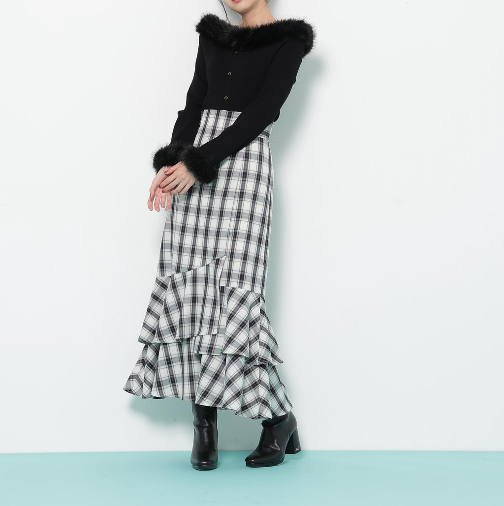 細身的美人魚剪影裙。高腰設計的美人魚剪影。後面採用貼合感的蕾絲綁帶,腰圍內收效果佳。也推薦搭配寬鬆的針織衫。秋冬流行的大格紋與易於搭配的純色款式,共有3色選擇。※由於拍攝時的照明原因,顏色可能會有所不同。