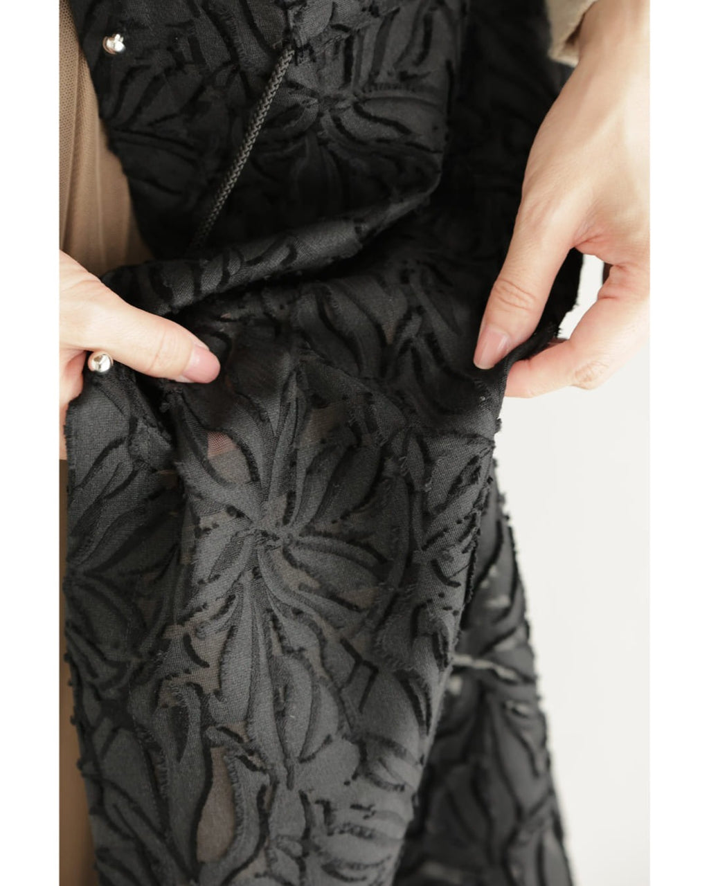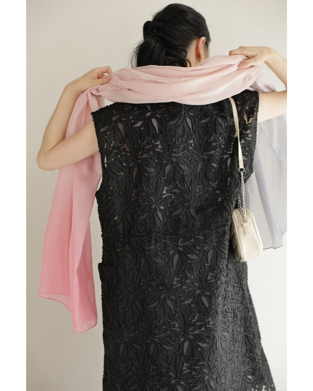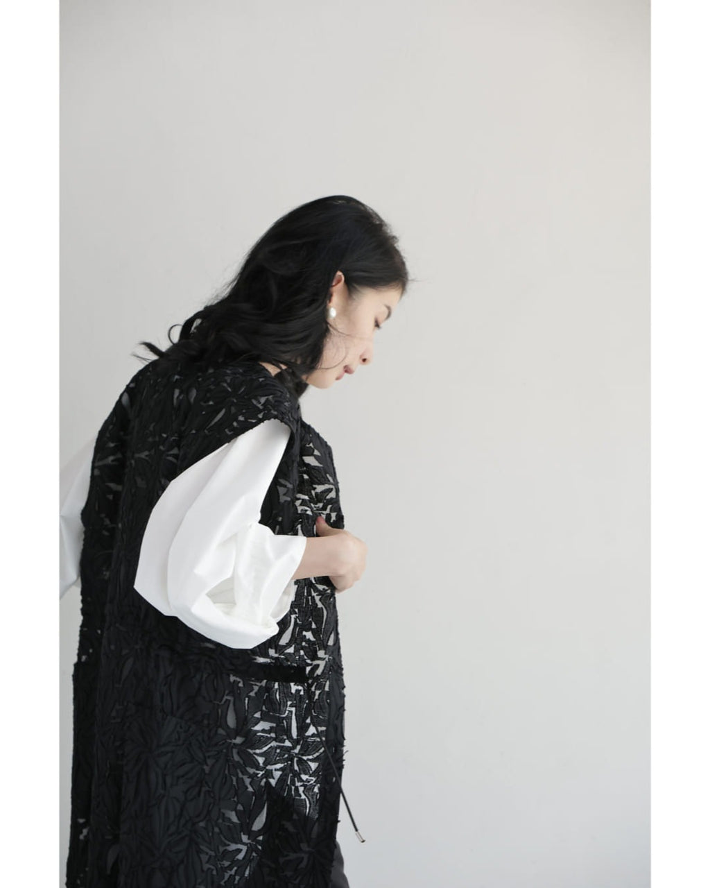 透け感のあるシアー素材を使用しており、重ねるインナー次第で印象が変わるのが魅力。