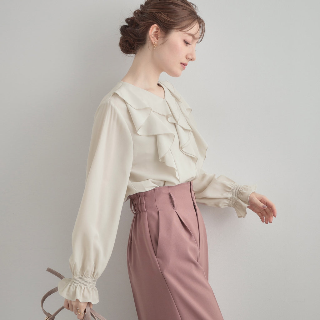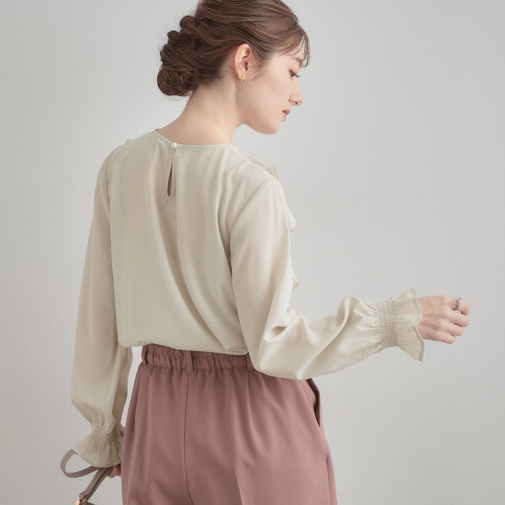 ・saori(153㎝)雖然簡單,但臉周圍卻能營造華麗的印象的上衣◎無論是上班還是休閒都可以穿著,通勤當然也非常推薦!