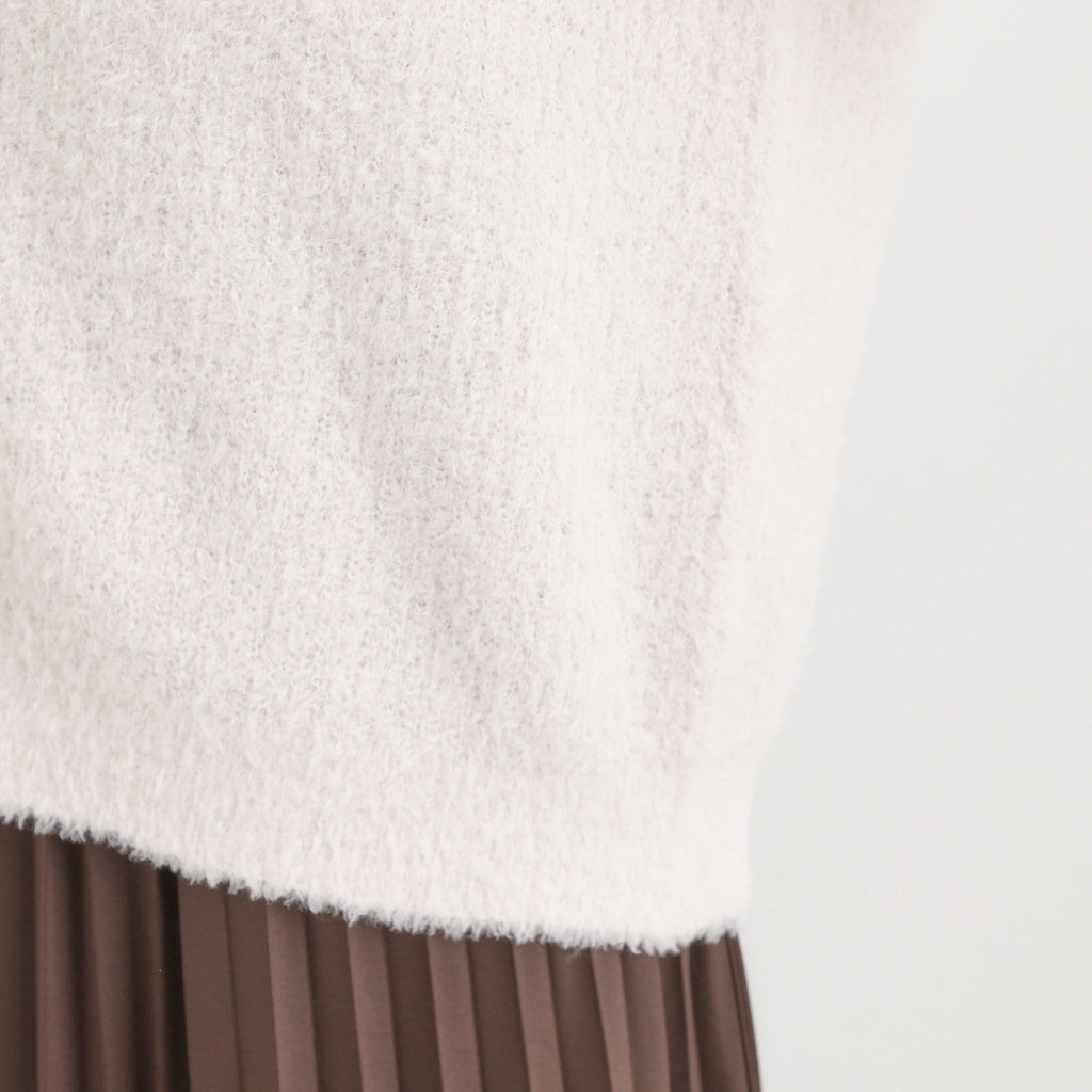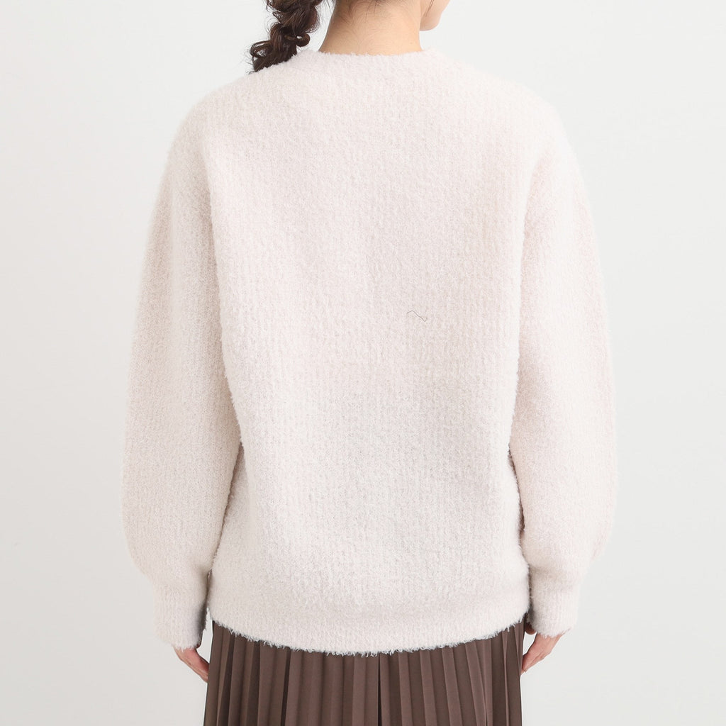 充分利用柔軟的貂毛羽絨材質的V領開襟外套。