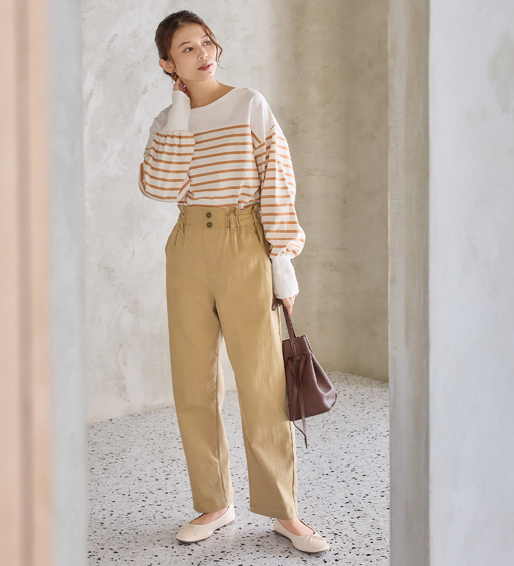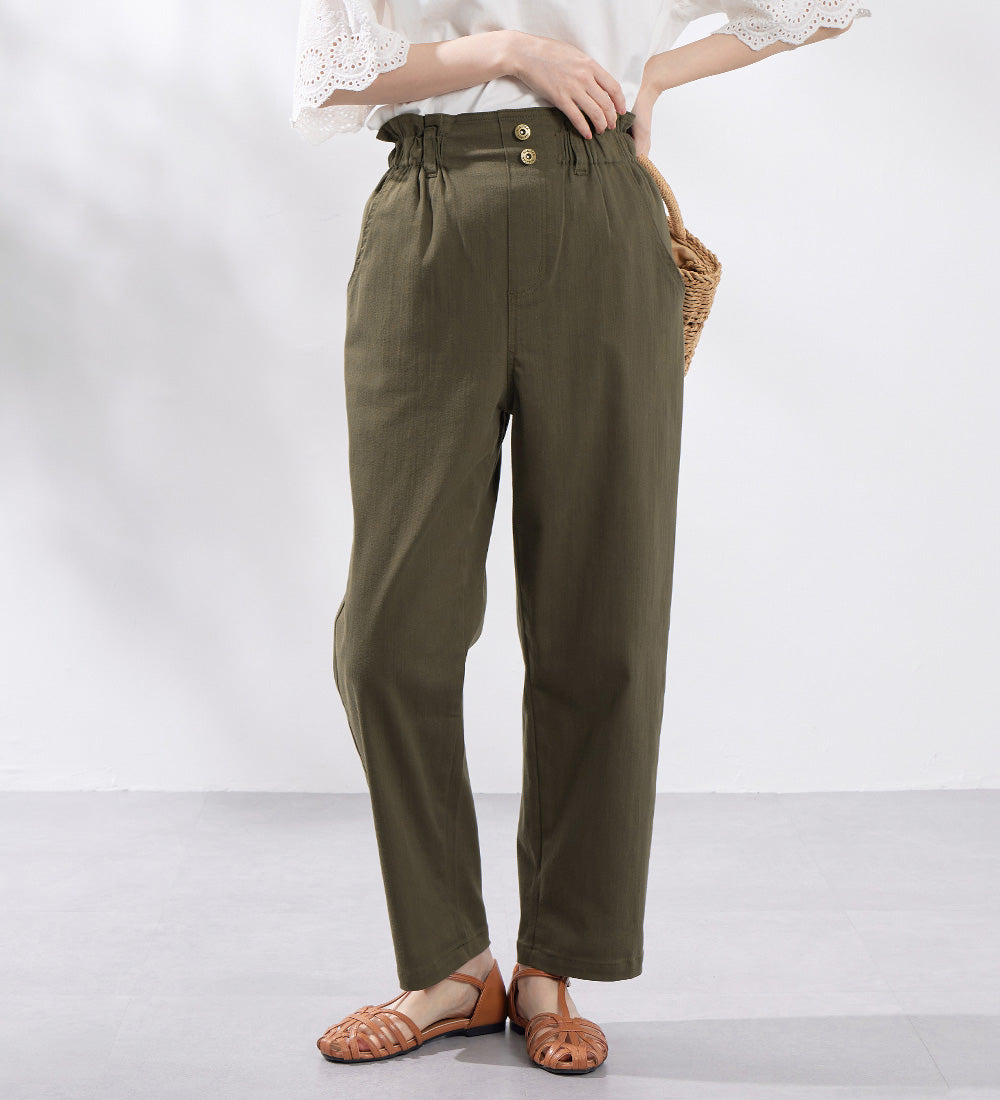 腰部是一種褶皺的設計,因此您可以穿可愛。♪易於磨損,總橡膠規格。