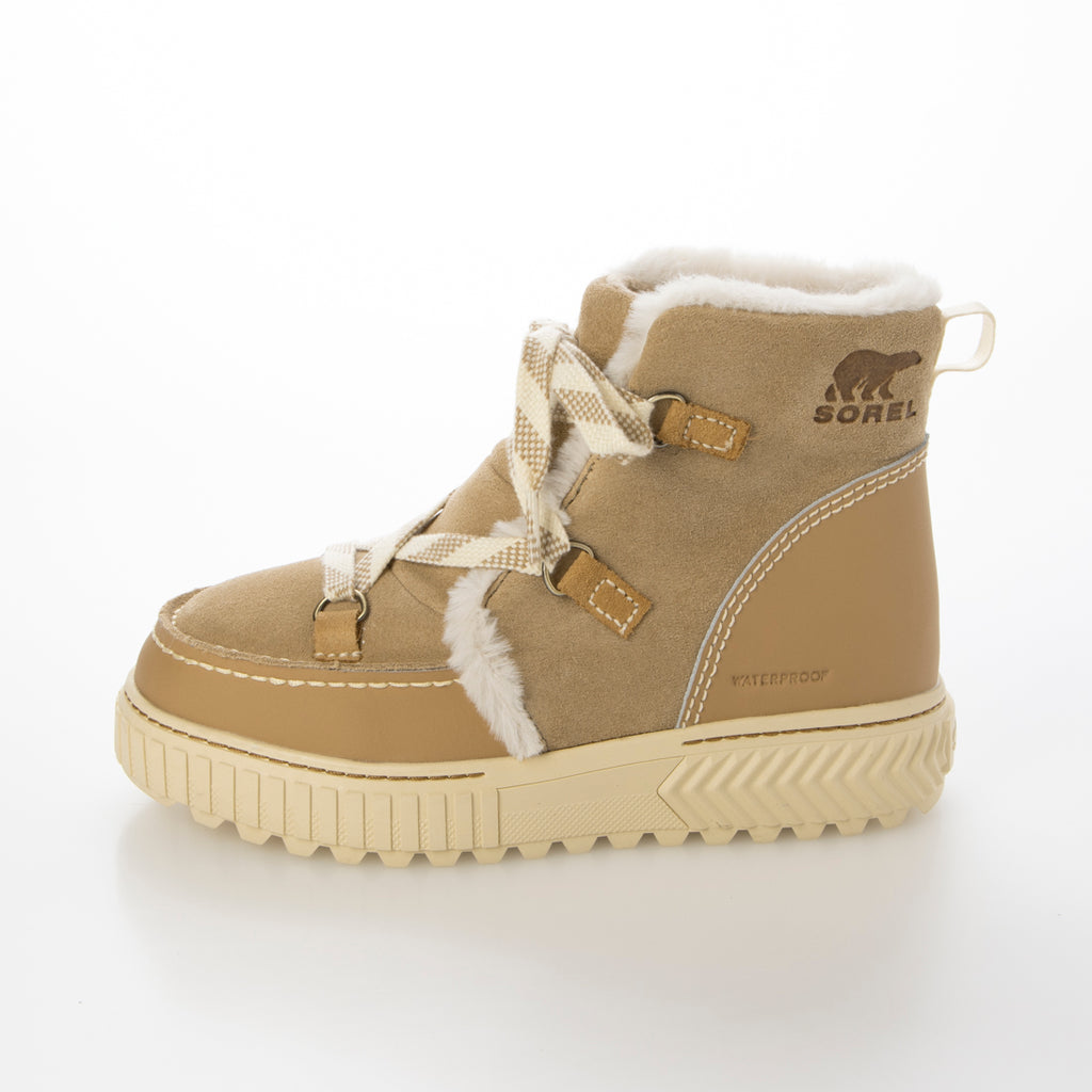 鞋面:防水絨面革/PU 處理皮革鞋頭和鞋跟鞋底:SOREL 原創「EVERTREAD」模壓橡膠,經過精確計算,可產生高牽引力性能