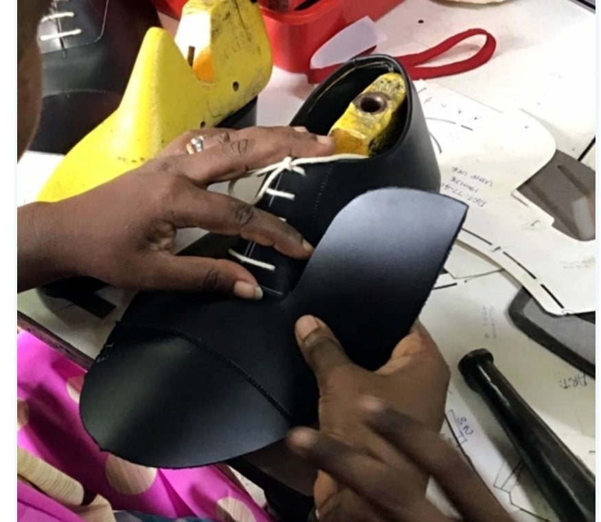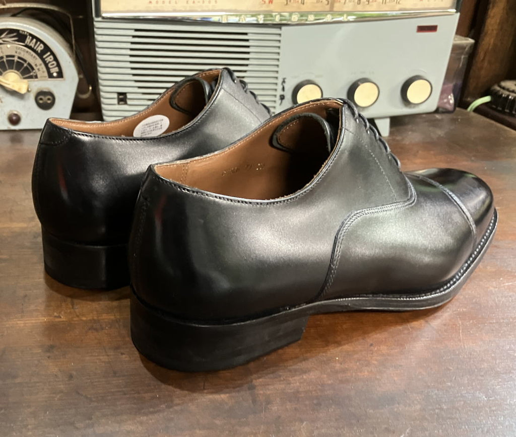 鞋跟與古德伊爾製法相同,先在鞋底全周進行麥基縫製,然後將鞋跟後加到鞋底上。此外,鞋邊(邊緣)經過手工的【釘出加工】,鞋跟周圍也經過手工修整,採用精緻的底部製作技術。